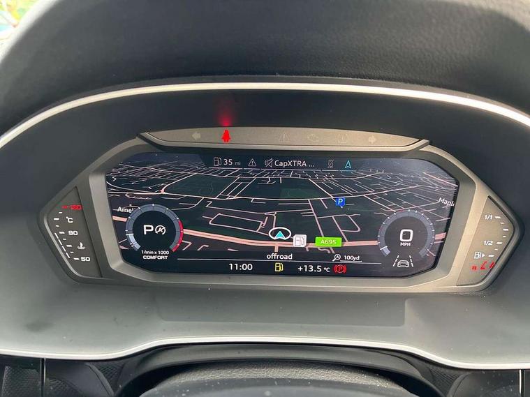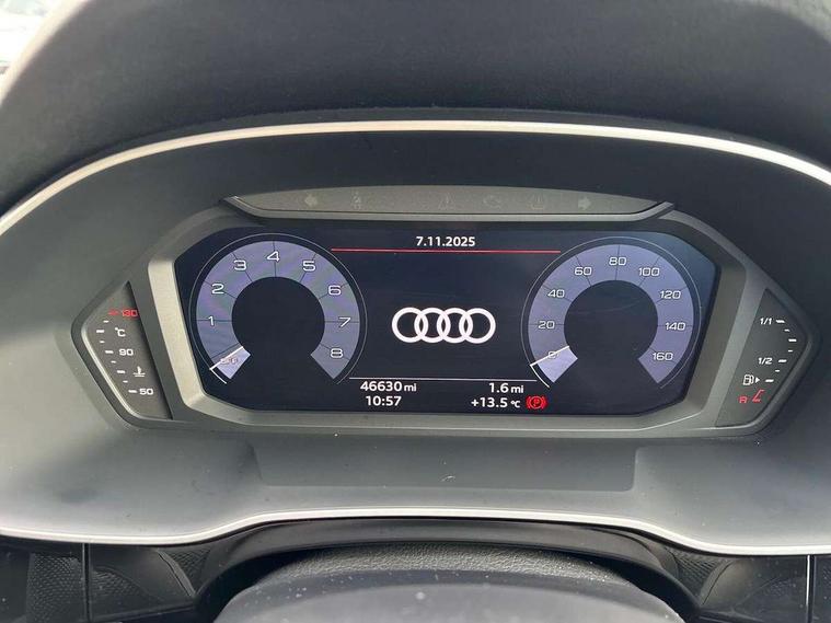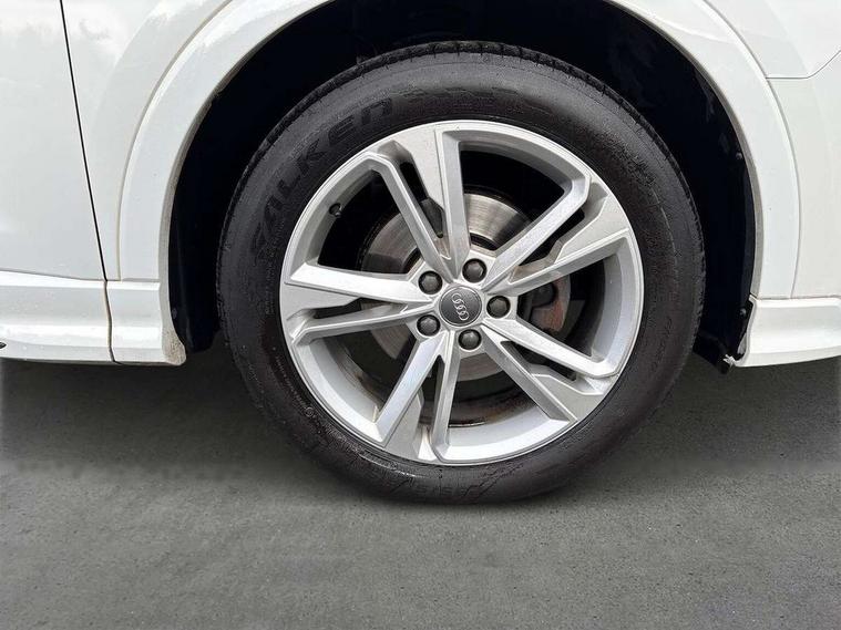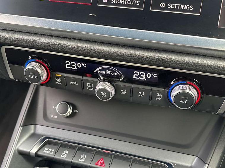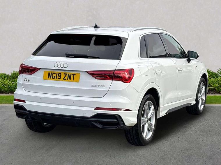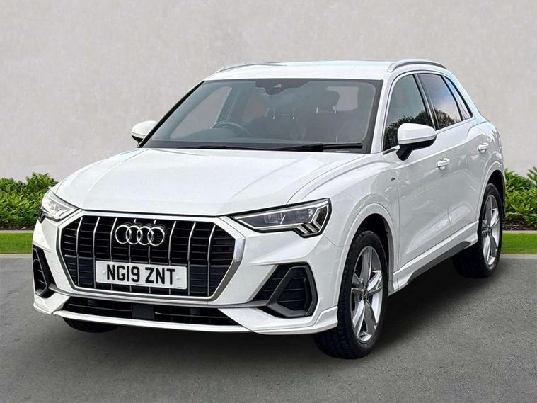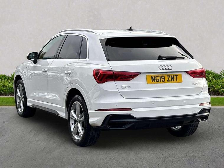 Dark matt brushed aluminium inlay, MMI touch colour display in gloss black with aluminium surround, Non smoking pack - Q3, Tyre repair kit, Anti theft alarm, Anti theft wheel bolts, Audi pre-sense front with pedestrain and cyclist recognition, Remote central locking, 1 x USB type C and 1 USB type A charging points, 6 speakers, DAB digital radio module, 3x3 point rear seatbelts, 6 airbags - Driver, front passenger, curtain and side windows, Electrically operated child locks on rear doors, Electromechanical parking brake, Electronic stabilisation control including ABS, ASR and EDL, Hill hold assist, Pre sense basic, Seatbelt monitoring, Tyre pressure warning, Warning triangle and first aid kit, Acoustic windscreen, Aluminium roof rails, Aluminium window trim, Auto dimming rear view mirror, Body coloured bumpers, Diffuser in matt Platinum grey, Electrically adjustable and heated door mirrors with integrated LED side indicators, Front and rear electric windows, Front fog lights, Front side air inlets in matt platinum grey, Front spoiler blade in matt platinum grey, Grille vertical bars in aluminium silver/Matt, High gloss black finish B and C pillars, LED headlights with LED daytime running lights and dynamic rear indicator, LED rear lights, Privacy glass, Rain and light sensors, Rear diffuser strip in matt titanium black, S Line badge on wings, S Line front and rear bumpers, Side skirt insert in matt Platinium grey, Titanium black radiator grille, 12V socket in rear centre console, 40:20:40 split folding rear seat, Adjustable rear seat bench/backrest with centre armrest and cupholder, Aluminium door sill trims, Black cloth headlining, Dual zone climate control, Front and rear black floor mats with contrast stitching in rock grey, Front and rear headrests, Front centre armrest with storage compartment and angle adjustment, Illuminated door sill trims with S logo, ISOFIX child seat mounting and Top Tether with front passenger airbag deactivation, Manual front seats with height adjustment, Perforated leather gearknob, Stainless steel luggage compartment sill finisher, Stainless steel pedals, Tool kit, Audi connect safety and service (e-call), Audi drive select, Audi lane departure warning, Audi side assist, Audi smartphone interface, Bluetooth interface, Camera based traffic sign recognition, MMI navigation plus with MMI touch, Power opening/closing tailgate, Progressive steering, Rear parking sensors, Service interval indicator, Stop/start system, Voice control system, Sports suspension,