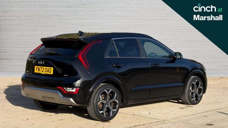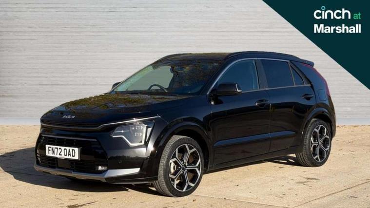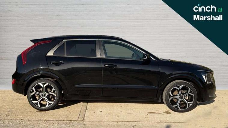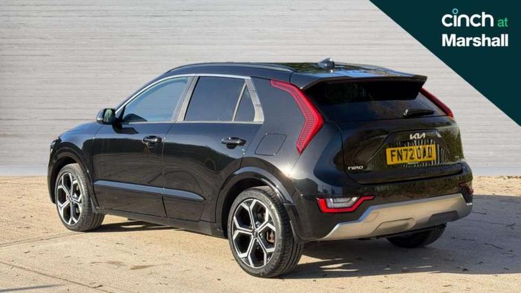 10.25" touchscreen satellite navigation, 4.2" supervision colour cluster display, Adaptive smart cruise control function (SCC) with stop and go, Apple car play/Android Auto with voice control, Blind spot collision avoidance assist, Drive mode select (Eco, sport), E-call, Emergency stop signalling system, Forward Collision-Avoidance Assist (FCA) 1.5 - City/Pedestrian/Cyclist/Junction turning, Front parking sensors, Highway Driving Assist (HDA), Kia Connect (UVO), Lane Following Assist (LFA), Lane keep assist, Motor driven power steering, Rear cross traffic alert, Rear parking sensors, Reversing camera with dynamic guide lines, Safe exit warning (SEW), Speed limit assist, Tailgate, Trip computer with distance/fuel consumption/average speed, Wireless Smartphone charger, 220v AC Inverter, 'Shark fin' mobile antenna, 2 type C USB ports on front seats, 2 USB ports in centre console including 1 type C, 6 speakers, Bluetooth with music streaming, DAB Digital radio, Steering wheel mounted controls, Acoustic windshield, All round electric windows with drivers and front passenger auto up/down and safety function, Auto dimming rear view mirror, Automatic defog system, Automatic headlight control system, Black beltline mouldings, Black grille with chrome surround, Body colour bumpers, Body colour exterior door handles, Dual LED headlights (low and high projection), Electric heated door mirrors, Electrically folding door mirrors, Front and rear chrome skid plates, Front fog lights, Heated rear window with timer, High gloss black cladding, High gloss black door mirrors, LED daytime running lights, LED rear combination lights, LED third brake light, Privacy glass - Rear windows and tailgate, Rain sensing front wipers, Rear fog lights, Rear side wing doors, Rear spoiler, Rear wiper, Roof rails, Solar glass windscreen, Welcome and follow-me home light functionality, Windscreen Washer Level Warning, 12V socket in front, 12V socket in luggage compartment, 3 seat bench in 2nd row, 60/40 split/folding 2nd row of seats, All-round height adjustable headrests, Artificial leather centre console storage box, Artificial leather steering wheel, Bulb type overhead console lamp with sunglasses case, Centre console cupholder, Chrome coating interior door handles, Cloth / Artificial leather upholstery, Driver's power adjustable seat, Driver/passenger sunvisors with illuminated vanity mirrors, Drivers seat power lumbar support, Dual zone automatic air conditioning, Front and rear door storage, Heated front seats, Heated steering wheel, Illuminated glovebox, Interior door lock/unlock function, ISOFIX Child seat top tethers and anchor fixings, Luggage area lamp, Luggage area load cover, Luggage board, Paddle shifts, Passenger seat height adjuster, Rear armrest, Seatback pocket - driver, Seatback pocket - front passenger, Shift by wire SBW, Single front passenger seat, Tilt/telescopic adjustable steering wheel, Ventiliation ducts to rear compartment, Towing pack - Niro, 3 point seatbelts on all seats, ABS, Automatic unlocking of doors in case of impact, Centre side front airbags, Curtain and side airbags, Drivers knee airbag, Dual shell horn, Electric parking brake with auto hold function, Electronic stability control, Front passenger airbag deactivation, Height adjustable front seatbelts, Hill start assist control (HAC), Manual rear child locks, Rear seat alert system, Traction control, Tyre pressure monitoring system, Alarm system and engine immobiliser, Deadlocks, Engine Start/Stop Button with Smart Entry System, Locking wheel nuts, Visible vehicle identification number, Warranty - 7 Years/ 100, 000 miles, Metal chopped carbon centre fascia, 18" Alloy wheels, Tyre mobility kit,