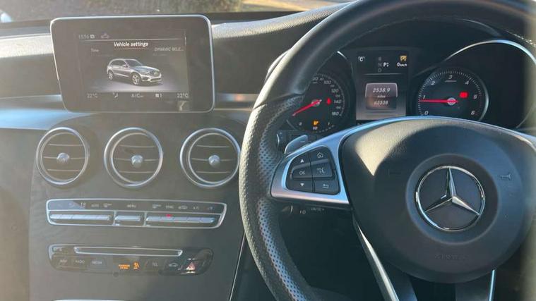 7" colour screen, Active park assist with parktronic system, Attention assist, Bluetooth interface for hands free telephone, Collision prevention assist plus, Crosswind Assist, DYNAMIC SELECT with a choice of driving modes (ECO, Comfort, Sport, Sport+ and Individual), Garmin Map Pilot navigation system with SD card, touchpad and voice control, Instrument cluster with 5.5-inch TFT multi-function display, Multi function trip computer, Outside temperature gauge, Power opening/closing tailgate, Remote boot release, Service indicator (ASSYST), Diesel particulate filter, 5 speakers, DAB Digital radio, Frontbass loudspeakers, Mercedes Audio 20 radio/single CD + telephone keypad, USB connection, Adaptive brake lights, Aerodynamic rear spoiler, AMG bodystyling, Automatic headlights, Body coloured bumpers, Chrome exterior trim, Electric panoramic sunroof with sunblind, Electric windows one touch open/close, Electrically adjustable and heated door mirrors, Exhaust tailpipe finisher, LED daytime running lights, LED rear lamps, Privacy glass (to rear of B post), Rain sensor windscreen wipers, Range adjustable headlights, Rear wiper, Tinted glass all round, 2 cupholders in front centre console, 2 way rear head restraints, 3 spoke flat bottom AMG steering wheel in nappa leather, 4 way adjustable front head restraints, 4 way electric lumbar support for driver and front passenger, 40:20:40 split folding rear seats, Ambient lighting, AMG floor mats, AMG sports seats, Auto Mercedes-Benz child seat recognition sensor, Automatic climate control, Black roof lining, Dividing net - rear, Electric front seat height adjustment, Front armrest with storage box, Front door sills with Mercedes Benz lettering, Gearshift paddles, Heated front seats, Height/reach adjustable steering column, Lockable/illuminated glovebox, Multifunction steering wheel, Rear top tether child seat ISOFIX attachment, Sports pedals with stainless steel surfaces and rubber studs, Sunvisors with illuminated vanity mirrors, Easy-pack load compartment cover, Interior lighting pack - GLC, Memory pack - GLC, Mirror pack - GLC, Storage pack - GLC, 3 rear 3 point seatbelts, ABS with Brake Assist, Active bonnet, Adaptive brake system, Brake calipers with Mercedes-Benz lettering + perforated brake discs, Child proof door locks, Drivers knee airbag, Dual stage driver/passenger airbags, Electronic parking brake, ESP with ASR, Front and rear seatbelt reminder, Front passenger seat occupancy sensor, Front side airbags, Hill hold function, Tyre pressure monitoring system, Warning triangle and first aid kit, Window airbags, Alarm system/interior protection/immobiliser, Automatic door locking, Keyless entry and keyless start, Remote central locking, Tyre inflation kit,