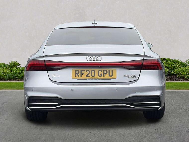 Amazon alexa Integration, Audi connect safety and service (e-call), Audi drive select, Audi parking system plus - acoustic and visual park assist system for front and rear, Audi phone box with wireless charging, Audi smartphone interface, Audi virtual cockpit - 12.3" high resolution LCD digital instrument cluster display, Automatic start/stop system with coasting functionality, Colour driver's information system display, Electric boot lid release, Lane departure warning system, MMI nav plus with MMI touch + 10.1" and 8.6" HD haptic touch screen/3D city models/country information/online map/route info and personal route assist, Operating buttons in black, glass look with haptic feedback, Power operated tailgate, Progressive steering, Rear view camera, Service indicator, Voice control system, 24 litre AdBlue tank, Diesel particulate filter, Quattro all wheel drive with self locking centre differential, Sports suspension, Audi music interface - 2 USB ports with charger and data functions, Audi sound system with 6 channel amplifier, 180 watt amplifying capacity and 10 loudspeakers including subwoofer, Auxiliary input socket, DAB digital radio module, Body coloured door mirrors, Coming/leaving home animations in front and rear, Electrically adjustable, heated and folding door mirrors with driver memory function and integrated LED indicators, Frameless auto dimming interior rear view mirror, Front and rear electric windows, HD Matrix LED headlights with dynamic front and rear indicators, Headlight washers, Heat insulating darkened glass in side and rear windows, High gloss black radiator grille with chrome single frame surround, LED rear lights, Rain and light sensors, Retractable rear spoiler, S line air inlet design with inlay in high gloss black, S Line badge on front fender, S line badge on front grille, S Line Black rear diffuser with chrome inlays and rear grille, S Line front and rear bumpers, S Line side skirts, Signature LED daytime running lights, Towbar preparation, Windscreen with acoustic glazing, 2 zone deluxe electronic climate control, 4-way electric lumbar support, 40/20/40 split folding 3 seater rear seat bench with rear centre armrest, Black cloth headlining, Electrically adjustable front seats - driver seat with memory, Front and rear headrests, Front centre armrest, Heated front seats, Height/reach adjust steering wheel, Illuminated door sill trims with S logo, Illuminated sun visors with vanity mirrors, ISOFIX child seat mounting and Top Tether with front passenger airbag deactivation, Leather gear knob, Leatherette upper instrument panel and door shoulders, Luggage compartment floor, S line front and rear floor mats with contrast stitching, Stainless steel pedals and foot rest, Tool kit and car jack, LED interior ambient lighting pack - A7, Non smoking pack - A7, 3 point seatbelts on all seats, Audi pre-sense front, Driver and passenger airbags, Electromechanical parking brake, Electronic stabilisation control including ABS, ASR and EDL, Extended pedestrian protection measures, Hill hold assist, Seatbelt monitoring, Tyre pressure warning light, Warning triangle and first aid kit, Anti theft alarm with tow away protection, Anti-theft wheel bolts and wheel loosening detection, Immobiliser, Keyless Go, Preparation for tracking system, Remote central locking,