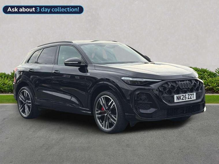 Adaptive cruise control, Advanced driver attention alert, Audi application store, Audi connect emergency call and service, Audi drive select, Audi smartphone interface, Audi virtual cockpit plus with 11.9" OLED colour display, Camera based traffic sign recognition, Fatigue monitor, Front cross traffic intersection assist, Lane change assistant with exit warning system, rear cross traffic alert and rear turn assist, Lane departure warning with emergency assist, MMI 10.9" front passenger touch display, MMI navigation plus with high resolution 14.5" OLED touchscreen colour display, Park assist plus, Parking system plus with 360 display, PAS, Reversing camera, Swerve assist and turn assist, Top view camera, Traffic sign based speed limiter, 2 USB-C ports in both the front and rear, Audi sound system impressive sound with 10 loudspeakers including centre speaker and subwoofer, 6-channel amplifier with a total output of 180 watts, DAB Digital radio, Smartphone compartment with wireless charging, Active digital light signatures - Six additional combinations of active daytime running light signature, Auto dimming rear view mirror, Black roof rails, Coming/leaving home lighting function, Electrically adjustable heated and folding + automatically dimming exterior mirrors, Exhaust tailpipes in dark chrome, Front and rear electric windows, Front door sill trims with aluminium inlays, illuminated with 'S' logo, Full body paint finish, Headlight cleaning system, Heated rear window, High beam assist, High gloss window surrounds, Inlay and front air inlets in matt anthracite chrome, LED rear lights pro incl. dynamic rear indicators and illuminated light strip with animated coming and leaving home function, Logo projection light in exterior mirrors, Matrix LED headlights, Memory function for door mirrors, Privacy glass, Projection light for rear window, Radiator grille in phantom black, Rear and side windows with heat insulating glass, Rear honeycombe grille in matt black with inlay in matt anthracite chrome, Rear side wing doors, Rear wash/wipe, S Line badge on the front wings, Towbar preparation, Windscreen with acoustic glazing, 3 rear head restraints, 3 seat bench in 2nd row, 3 spoke leather steering wheel with multi-function buttons with touch control, flattened on top and bottom, with S badging and contrast stitching, 4 way electric lumbar support for driver and front passenger, 40:20:40 split folding rear seat bench with centre armrest and cup holders, Comfort centre armrest, Deluxe 3 zone electronic climate control, Dinamica microfiber/leather upholstery, Electrically adjustable front seats with memory function for driver's side, Front and rear floor mats, Front sport seats with integrated head reastrains, Headlining in black cloth, Heated front seats, i-Size child seat mounting on the front passenger side and outer rear seats, i-Size and top tether on the outer rear seats, Interior trim in aluminium look, Luggage compartment lid, electrically opening and closing, Manual steering column adjustment, Single front passenger seat, Softwrap in Dinamica, Stainless steel pedals and footrest, Steering wheel grips in perforated leather and shift paddles, Ambient lighting package plus - Q5, Black styling package plus - Q5, Storage and luggage compartment pack - Q5, 3x3 point rear seatbelts, ABS, Acoustic vehicle alerting system, Convenience key with safelock, Driver and front passenger airbag with passenger airbag deactivation, Electric child safety locks, First aid kit with warning triangle and high visibility vests, Front emergency brake assist, Front side airbags with head airbag system and front interaction airbag, Hill hold assist, Occupant detection in rear seat area, Proactive passenger protection system for front, sides and rear, Red brake calipers, Side airbags in front and rear with head airbag system and front interaction airbag, Tyre pressure loss indicator, Anti theft alarm, Anti-theft wheel bolts, Remote control key with SAFELOCK and keyless go, Accent surfaces and control buttons in gloss black, Black dashboard with contrast stitching, Steel grey seat stitching, Upper and lower interior elements in dinamica microfiber, Tyre repair kit,