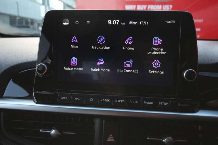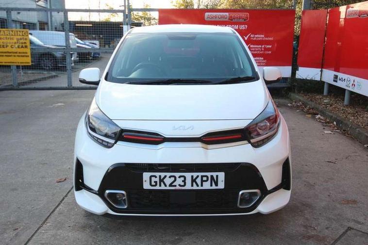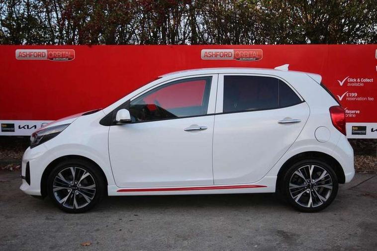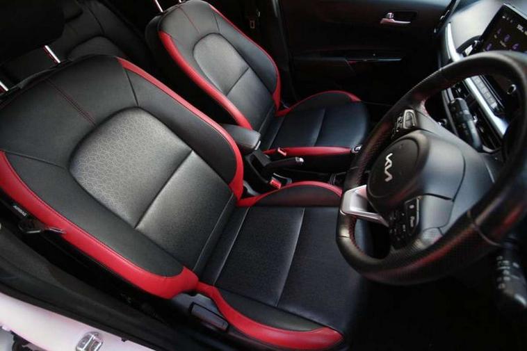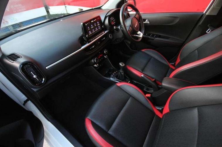 8" touch screen satellite naviagtion with RDS and DAB with telematics, Apple car play/Android Auto with voice control, Cruise control + speed limiter, Emergency call service, Emergency stop signalling system, External temperature gauge, Kia Connect (UVO), Motor driven power steering, Rear parking sensors, Reversing camera system with dynamic guidelines (Integrated into centre fascia screen), Tachometer, Trip computer, Wireless Smartphone charger, 6 speaker audio system, Bluetooth with music streaming, Steering wheel mounted controls, USB ports for connection of a media device, Automatic headlight control system, Bi-function projection headlights, Black beltline mouldings, Black grille with silver surround, Body colour B pillars, Body colour bumpers, Body colour side sill mouldings, Body coloured mirrors and chrome exterior handles, Day/night rear view mirror, Electric adjustable/heated/folding door mirrors with LED indicators lights, Front and rear electric windows with drivers's auto up/down function, Front fog lights, Headlamp levelling, Heated rear window, High mount brake light, LED daytime running lights, LED rear fog lights, Privacy glass - Rear windows and tailgate, Rain sensor, Rear side wing doors, Rear wash/wipe, Speed variable front wipers, Sports front and rear bumpers with gloss black skid plates twin exhaust, Tinted glass, Visible VIN plate, Welcome and follow-me home light functionality, 1 x rear coat hook, 12V power point front, 2 seat bench in 2nd row, 3 x passenger assist grips, 60/40 split/folding 2nd row of seats, All round height adjustable headrests, Automatic air conditioning, Black and red accents front door armrest, Centre Console with Storage Box and Sliding Armrest, Cupholders in centre console, D-cut steering wheel with red stitching, Driver and front passenger sunvisors with driver's side illuminated vanity mirrors, Driver seat height adjust, Faux leather upholstery, Front cabin lights, Glovebox, Heated front seats, Heated steering wheel, High gloss lower centre fascia trim, door armrest and air vents, ISOFIX Child seat top tethers and anchor fixings, Leather trimmed steering wheel and gearshift, Luggage area light, Luggage area parcel shelf, Passenger front seatback pockets, Satin chrome interior door handles, Single front passenger seat, Slide/reclining front seats, Tilt adjustable steering wheel, Advanced Driver Assistance Pack - Picanto, 2 x 3-point rear seatbelts, ABS/EBD, Automatic unlocking of doors in case of impact, Dual front airbags, ESC + BAS + VSM + HAC, Front passenger airbag cut-off switch, Front seatbelt height adjusters, Front seatbelt pretensioners + load limiters, Hill hold control, Knee airbags, Rear child proof door locks, Seatbelt warning, Side impact protection, Torque vectoring brake based and straight line stability (SLS), Traction control, Twin curtain airbags, Twin front side airbags, Tyre pressure monitoring system, Anti theft alarm, Engine immobiliser, Locking wheel nuts, Smart key with engine start/stop button, 16" alloy GT-Line wheels, Tyre mobility kit,