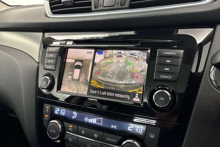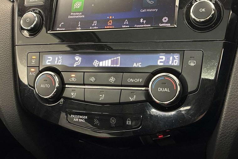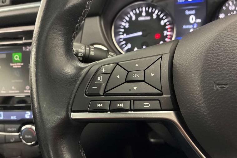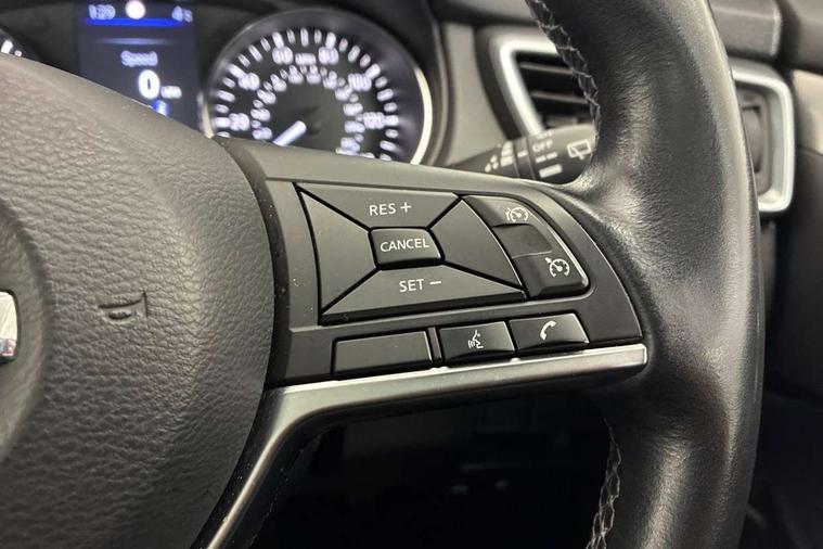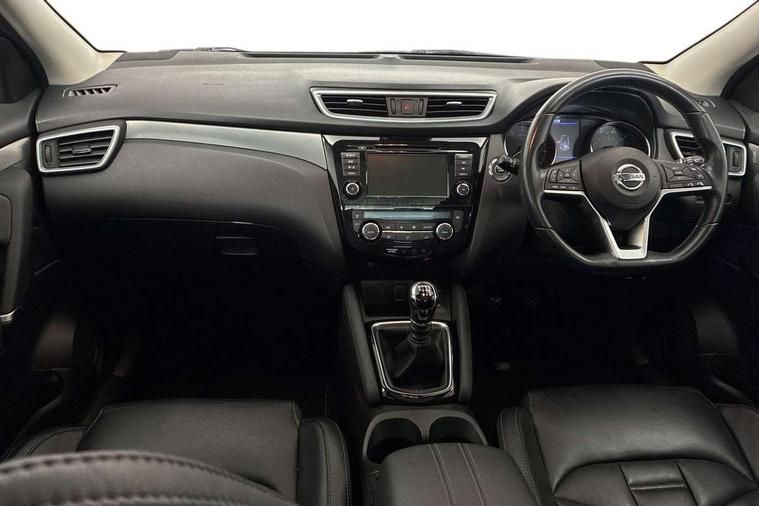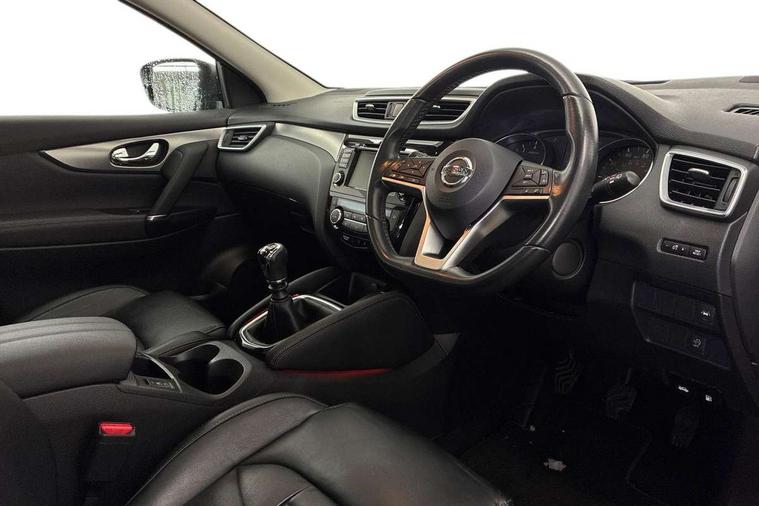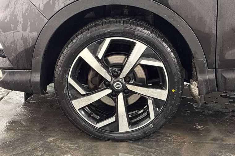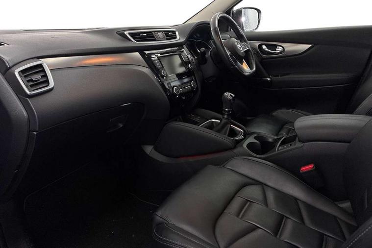 360 degree Intelligent around view monitor, Advanced drive assist display 5'' TFT coloured screen, Apple car play/Android Auto, Bluetooth connectivity, Cruise control + speed limiter, Electric speed sensitive power steering, Front parking sensors, Idle stop/start system, Intelligent park assist, Lane departure warning system, Nissan connect evo 7" touchscreen navigation and entertainment system, Normal or sport selectable steering, Outside temperature sensor, Premium Tomtom connected services, Push button starter, Rear parking sensors, Service interval indicator, Smartphone integration, Traffic sign recognition, Trip computer, Voice control system, Nissan chassis control (intelligent ride control, intelligent trace control), 6 speakers, AM/FM radio, CD audio system, Aux-in socket, DAB Digital radio, Steering wheel mounted audio controls, USB port, Anti dazzle rear view mirror, Auto wipers, Body colour bumpers, Body coloured door handles, Body coloured door mirrors, Chrome window surround, Daytime running lights dip function when turn signal applied, Electric adjustable heated door mirrors with memory, Electric folding door mirrors, Electric front and rear windows with one touch illuminated window controls, Front fog lights, High beam assist, Intelligent auto headlights, LED indicators in door mirrors, Matt silver roof rails, Privacy glass, Rear roof spoiler, Rear wiper with reverse link, Shark fin antenna, Silver rear styling plate, Underbody vortex generators, 2 X front 12v power sockets, 3 height adjustable rear headrests, 60/40 split folding rear seat, Ambient interior lighting, Ambient lighting around centre console, Boot lighting, Centre console storage box/armrest, Chrome interior door handles, Dual zone climate control, Electric 4-way lumbar support for drivers seat, Electrically adjustable driver seat with memory, Electrically adjustable passenger seat, Front and rear door pockets with bottle holders, Front and rear seat belt pre-tensioners with load limiters, Height adjustable front headrests, Individual rear seat reading lights, ISOFIX restraints on outer rear seats x2, Leather D shaped steering wheel, Leather gear lever, Leather knee pad, Luggage board system, Luxury floor mats, Manual height adjustable passenger seat, Manual lumbar support on passenger seat, Monoform front sport seats with plastic backboard, Nappa leather upholstery with 3D quilted, Parcel shelf stow function under luggage board, Pollen filter, Rear armrest with 2 cupholders, Synthetic leather wrapped door handle with contrasting stitching, Tilt/telescopic adjustable steering wheel, Glass roof pack - Qashqai, Heat package - Qashqai, LED pack - Qashqai, 6 airbags - Driver, front passenger, curtain and side airbags, ABS, ESP, EBD and brake assist, Auto hold function, Child locks on rear doors, Electronic parking brake, Front and rear seat belt warning, Height adjustable front seatbelts, Hill start assist, Intelligent emergency braking with pedestrian recognition, Passenger airbag deactivation system, Three 3 point rear seatbelts, Tyre pressure monitoring system, Anti-theft immobiliser, Intelligent Key, Remote central locking, Thatcham Cat.1 alarm, Carbon graphite dash trim, 19" Alloy wheels,