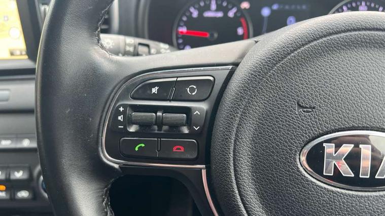 7" touch screen, Bluetooth connectivity with voice control, Cruise control + speed limiter, Digital clock, Emergency stop signalling system, Kia connected services, Lane keep assist, Reversing Aid Sensors, Satellite navigation with rear view parking camera, Speed limit display, Speed sensitive power steering, Trip computer, 6 speakers, Bluetooth audio streaming, DAB Radio with MP3, Steering wheel mounted audio controls, USB/iPod/auxiliary input connections, Auto dimming rear view mirror, Automatic front rain sensing wipers, Automatic headlights, Black side sill moulding, Body colour bumpers, Body colour electric adjustable door mirrors, Chrome exterior door handles, Chrome front grille, Chrome side moulding trim, Cornering light, Electric folding door mirrors, Electric windows, Front drivers side windows/one touch up/down, Front fog lights, Headlamp levelling, Heated door mirrors, High beam assist, LED daytime running lights, LED indicators in door mirrors, Privacy glass (rear side windows and rear screen), Rear spoiler, Rear wiper, Shark fin roof aerial, Silver roof rails, Speed sensitive front wipers, Tinted glass, Trailer stability assist, Welcome home function, 12V power point front, 12V power point in luggage area, 3 passenger grab handles, 60/40 split folding rear seat, Air filter, Ambient lighting, Centre console storage box/armrest, Centre room lamp, Cooled glovebox, Door armrest in leather, Door courtesy lamps, Driver's lumbar support, Driver's seat height adjuster, Driver/passenger sunvisors with ticket holders, Dual zone automatic air conditioning, Front and rear door pockets, Front map lights, Front seat and rear pockets, Grey headlining, Height adjustable headrests, Ignition key lock illumination, Illuminated glovebox, Illuminated vanity mirrors, Isofix child seat preparation, Leather trimmed gearshift, Leather trimmed steering wheel, Luggage area lamp, Luggage compartment cover, Luggage net with hooks, Premium cloth upholstery, Rear centre armrest with cupholder, Rear coat hooks, Rear headrests, Satin chrome interior door handles, Tilt/telescopic adjustable steering wheel, Ventilation ducts to rear compartment, 3 point front seat belts, 3x3 point rear seatbelts, ABS/EBD, Active front headrests, Automatic unlocking of doors in case of impact, Dual front airbags, ESP + traction control, Front seatbelt pretensioners + load limiters, Front side airbags, Full size curtain airbags, Height adjustable front seatbelts, Hill start assist control (HAC), Passenger airbag deactivate switch, Rear child proof door locks, Tyre pressure monitoring system, Anti theft alarm, Deadlocks, Immobiliser, Locking wheel nuts, Remote central locking with 2 remote folding keys, Speed sensitive auto door locking, Metallic finish centre fascia, 17" Alloy wheels, Temporary spare wheel,
