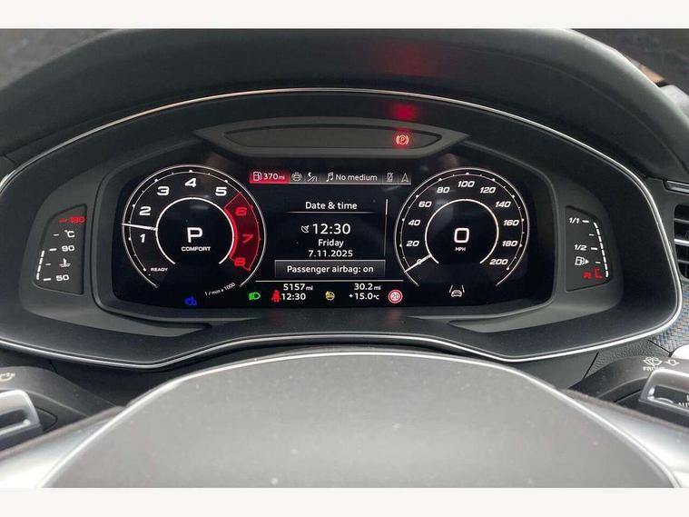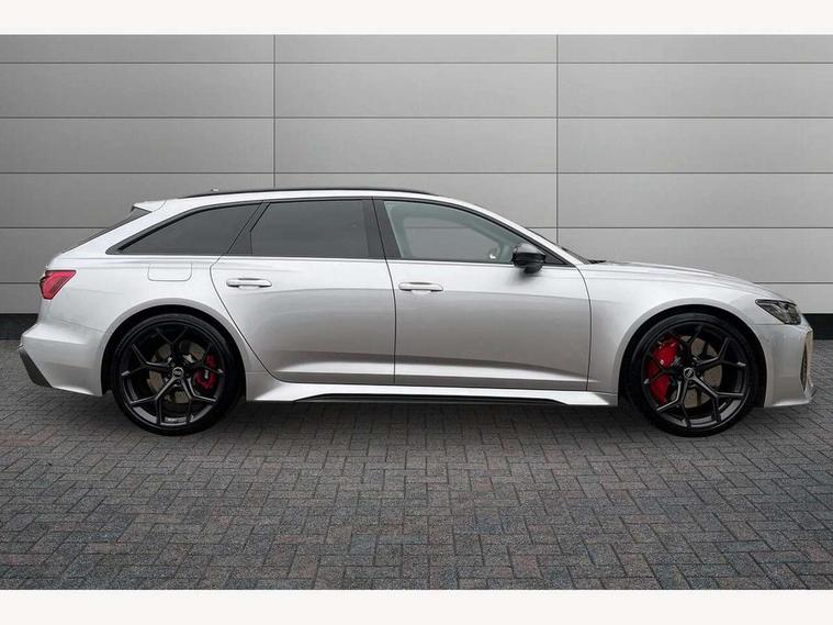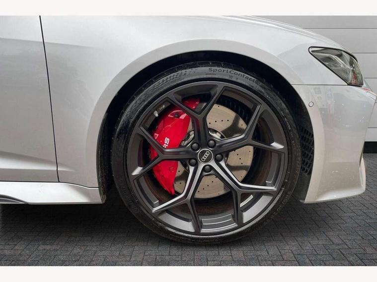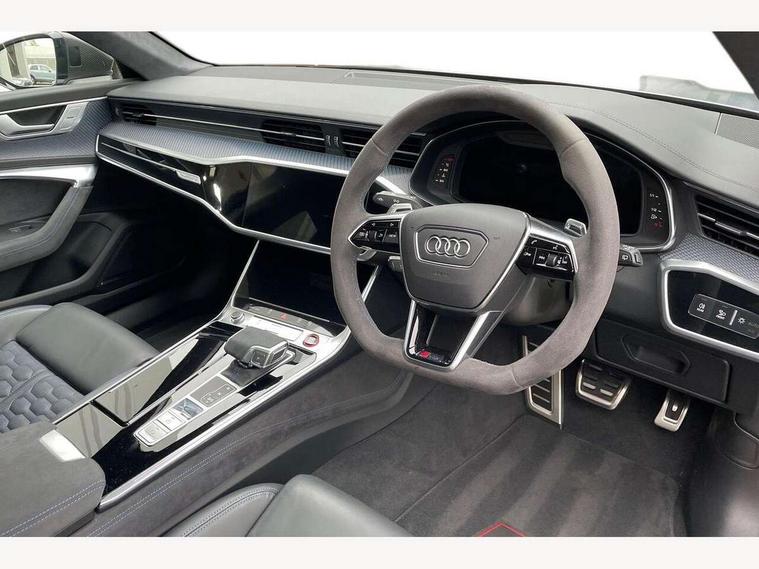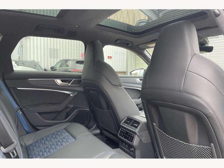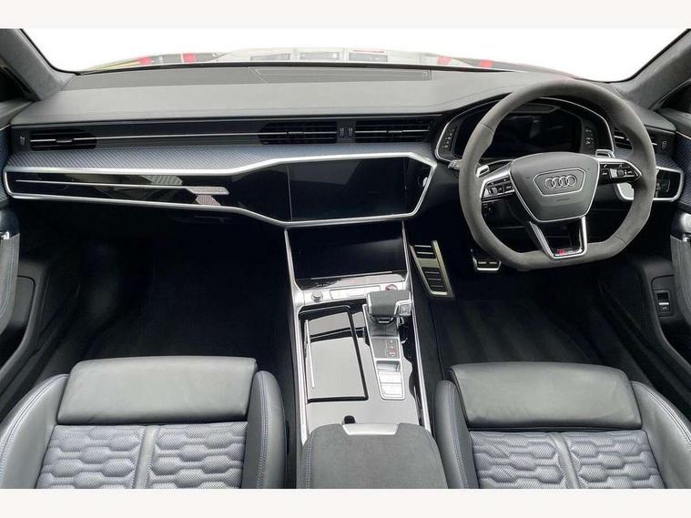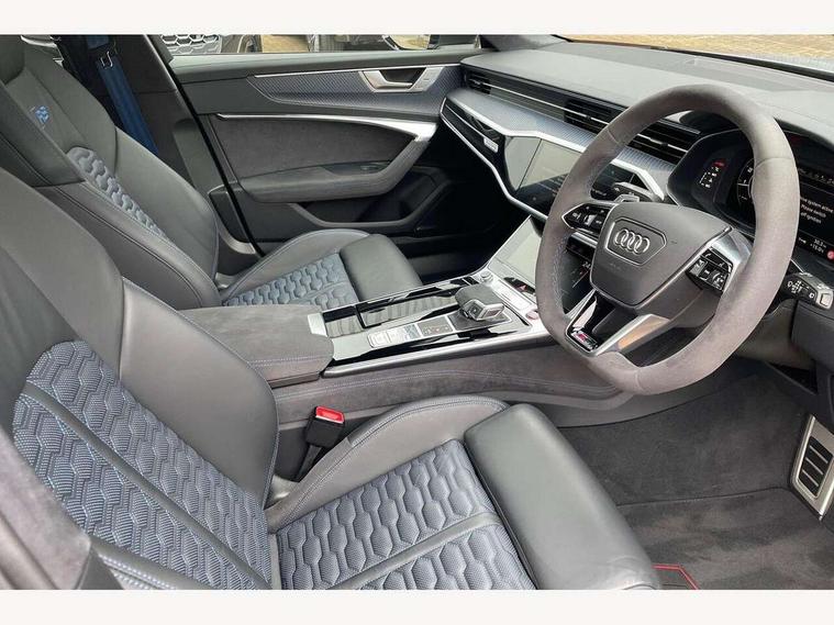Audi connect safety and service (e-call), Audi connect with Amazon Alexa Integration, Audi drive select with 2 configurable RS modes, Audi smartphone interface with app store includes wireless Apple carplay, Android auto and Amazon alexa integration, Audi virtual cockpit plus with RS specific design and 12.3" display with additional graphic display options, Automatic start/stop system, Bluetooth interface, Dynamic all wheel steering, Head up Display, Lane departure warning system, MMI navigation with MMI touch + twin touch screens 10.1" and 8.6" with haptic and acoustic feedback, Night vision assistant, Operating buttons in black, glass look with haptic feedback including extended aluminium look, Power door closure, Power operated tailgate, Service interval indicator, Surround view camera system, Voice control system, 48V Mild hybrid technology, 73 litre fuel tank, Increased top speed to 174mph, Quattro sports differential, RS Sports suspension plus with dynamic ride control, 2 USB-C ports with charging functionality in the rear, Audi music interface, Bang & Olufsen 3D Premium Sound System, DAB Digital radio, 3rd brake light, Adaptive windscreen wipers with integrated washer jets, Black window trims, Electric front/rear windows, Electrically adjustable, heated and folding door mirrors with integrated LED indicators and kerb view function for passenger side, Frameless auto dimming interior rear view mirror, HD Matrix LED headlights with Audi laser light with dynamic light design and dynamic turn signal, Headlight washers, Heat insulating darkened glass in side and rear windows, LED daytime running lights, LED rear combination lamps with dynamic light design and dynamic turn signal, Panoramic glass sunroof, Privacy glass with rear/side windows and acoustic glazing side windows, Radiator grille in honeycomb structure, large front air inlets and rear diffuser in gloss black, Rain and light sensors, Rear side wing doors, Rear wiper, RS front bumper with air inlets on both side, RS rear spoiler in body colour, RS sports exhaust system with high gloss black oval tailpipe trims, 3 seat bench in 2nd row, 4 way electric lumbar support for driver and front passenger, 4 zone deluxe automatic climate control, Audi phone box light, Electric steering wheel adjustment, Electrically adjustable front seats with driver memory, Entry LED with RS Performance projection (Audi Beam) in front and rear, Front and rear headrests, Front centre armrest, Front seat ventilation, Heated front and rear seats, Illuminated front and rear door sill trims with aluminium inlays and RS6 logo, ISOFIX and Top Tether child seat mounting for the outer rear seats, ISOFIX child seat mounting and Top Tether with front passenger airbag deactivation, RS sports seat plus, Single passenger seat, Stainless steel pedals and foot rest, Air quality pack - RS6, Ambient lighting pack plus - RS6, City assist pack - RS6 Performance/carbon/vorsprung, Park assist pack with park assist plus - RS6, Storage pack - RS6, Tour pack - RS6 Performance/carbon/vorsprung, 3 point rear seatbelts, Airbags - Front side, front and rear including head, Direct tyre pressure monitoring system, EBD - Electronic brakeforce distribution, Electromechanical parking brake, Electronic Stability Control (ESC) including ABS, ASR and EDL, Extended pedestrian protection measures, Manual child lock in rear doors, Rear side airbags, Warning triangle and first aid kit, Anti theft alarm with tow away protection, Immobiliser, Keyless Go, Remote central locking, Performance tyres, Tyre repair kit,