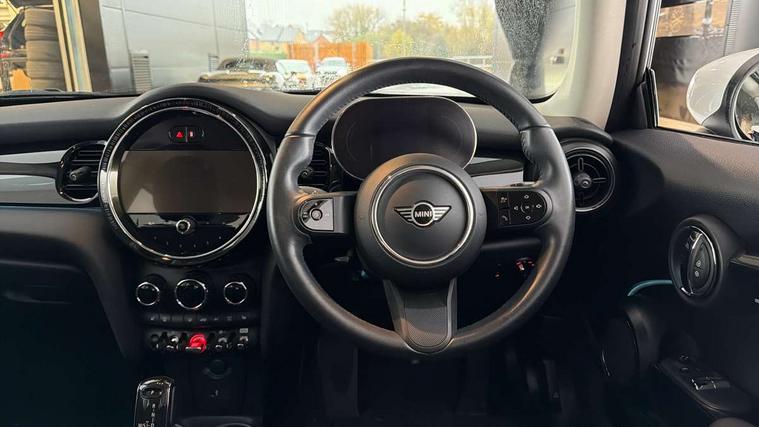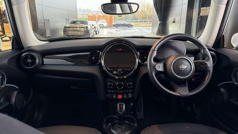 Apple CarPlay, Automatic start/stop function with brake energy recuperation, Compatible mobile phone bluetooth with audio streaming, Cruise control with brake assist, Electro-mechanical speed dependant steering assistance, Flexible car sharing preparation, Instrument cluster, Mini E-call, MINI TeleServices, On board computer, Service interval indicator, Double Vanos system, Fully variable valve control, High precision injection, Performance Control, Steptronic transmission with double clutch, 8.8" touchscreen with LED ring, FM tuner and DAB digital radio, 3rd brake light, Automatic headlight activation switch, Body colour fuel filler cap, Chrome border high gloss black slats radiator grille, Dynamic brake lights, Electric front windows, Exhaust tailpipe on left with chrome finisher, Heated rear window, Heated windscreen washer jets, LED headlight with closed ring and daytime driving lights, Metal door sill strips with MINI imprint, Model logo Cooper on right of tailgate, Rain sensor window wipers, Rear fog lights, Rear LED lights with union jack design, Rear window wiper, Side scuttle panel with integrated indicator, Sun/heat protection glass, White indicator lenses, 12V Accessory socket in centre console, 2 seat bench in 2nd row, 4 lashing eyes in luggage compartment, 60/40 split folding rear seat, Ambient lighting, Carbon black colour line - Knee roll and door armrest, Chrome interior highlights, Cupholders, Front and rear head restraints, Front and rear isofix with front passenger airbag deactivation, Front floor mats in velour, Glove compartment, Height and length steering column adjustment, Interior lighting with 12 different colours across the dashboard, underneath door bezel with illuminated laser-engraved design on central display, Leatherette gearshift lever and handbrake gaiters, LED reading lights, vanity mirror lights, front foot well light and spotlight on front seats, Manual air conditioning, Mechanical seat adjustment - forward/back & backrest for front seats and driver seat height adjust, Multifunction steering wheel, Passenger seat height adjuster, Satellite grey headlining including grab handles and clothes hooks, Single front passenger seat, Sport leather steering wheel with speed limiter and audio/communication controls, Storage compartments in doors, Sunvisors with vanity mirrors, 3 point seatbelts on all four seats, 6 Airbags - front, side, head and seat belt tensioners, Anti-lock braking system (ABS), DSC - Dynamic Stability Control, Front and rear disc brakes, Single tone fanfare horn, Tyre pressure monitoring system, Alarm system with tilt sensor, monitoring doors, bonnet interior and tailgate, Electronic vehicle immobiliser, Start/stop toggle with keyless go, Piano black interior trim, Tool kit, Tyre repair kit,