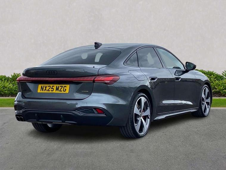 Adaptive cruise control, Advanced driver attention and fatigue montior, Audi application store, Audi assistant, Audi connect emergency call and service, Audi drive select, Audi smartphone interface, Audi virtual cockpit plus with 11.9" OLED colour display, Automatic start/stop system with coasting functionality, Camera based traffic sign recognition, Intersection assist, Lane change assistant with exit warning system, rear cross traffic alert and rear turn assist, Lane departure warning with emergency assist, MMI 10.9" front passenger touch display, MMI navigation plus with high resolution 14.5" OLED touchscreen colour display, Park assist plus, Parking system plus with 360 display, Progressive steering with servotronic, Swerve assist and turn assist, Top view camera, Traffic sign based speed limiter, Sports suspension lowered by 20mm, 2 USB-C ports in both the front and rear, Audi sound system impressive sound with 10 loudspeakers including centre speaker and subwoofer, 6-channel amplifier with a total output of 180 watts, DAB digital radio reception, Smartphone compartment with wireless charging, Aluminium window trims, Auto dimming rear view mirror, Black door handles, Dark chrome-plated tailpipe trims, Door mirrors - electrically adjustable, heated, folding and auto dimming on both sides, Front and rear electric windows, Front door sill trims with aluminium inlays, illuminated with 'S' logo, Headlight cleaning system, High beam assist, LED daytime running lights, LED rear lights pro incl. dynamic rear indicators and illuminated light strip with animated coming and leaving home function, LED third brake light, Matrix LED headlights with eight light signatures selectable via the MMI or the myAudi app, Privacy glass, Rear and side windows with heat insulating glass, Rear boot, Rear side wing doors, S Line badges on the front wings, S line bumpers, radiator grille and diffuser in phantom black and diffuser insert in matt anthracite, White rhombus logo projection light in exterior mirrors, Windscreen with acoustic glazing, 3 rear headrests, 3 seat rear bench, 3 spoke leather steering wheel with multi-function buttons with touch control, flattened on top and bottom, with S badging and contrast stitching, 3-zone automatic climate control, 40:20:40 split folding rear seat bench with centre armrest and cup holders, Comfort front centre armrest, Electrically adjustable front seats, Front and rear floor mats, Front sport seats with integrated headrest and S embossed logo, Headlining in black cloth, Heated front seats, i-Size child seat mounting on the front passenger side and outer rear seats, i-Size and top tether on the outer rear seats, Luggage compartment lid, electrically opening and closing, Manual steering column height and depth adjustment, Memory function for driver seat, Single front passenger seat, Stainless steel pedals and footrest, Steering wheel grips in perforated leather and shift paddles, Ambient lighting package plus - A5, Black styling package plus - A5, 3x3 point rear seat belts, Acoustic vehicle alerting system, Convenience key with safelock, Driver airbag, Electric child safety locks, First aid kit with warning triangle and vests, Front emergency brake assist, Front passenger airbag, Front passenger airbag deactivation, Hill hold assist, Occupant detection in rear seat area, Proactive passenger protection system for front, sides and rear, Red brake calipers, Seat belt monitoring with rear seat occupant reminder, Side airbags in front and rear with head airbag system and front interaction airbag, Tyre pressure loss indicator, Anti theft alarm, Anti-theft wheel bolts, Keyless Go, Accent surfaces and control buttons in gloss black, Black dashboard with contrast stitching, Softwrap in Dinamica with contrast stitching, Upper and lower interior elements in dinamica microfiber, 20" 5 arm fold design Audi sport alloy wheels in silk matt grey and gloss turned finish, Tyre repair kit,