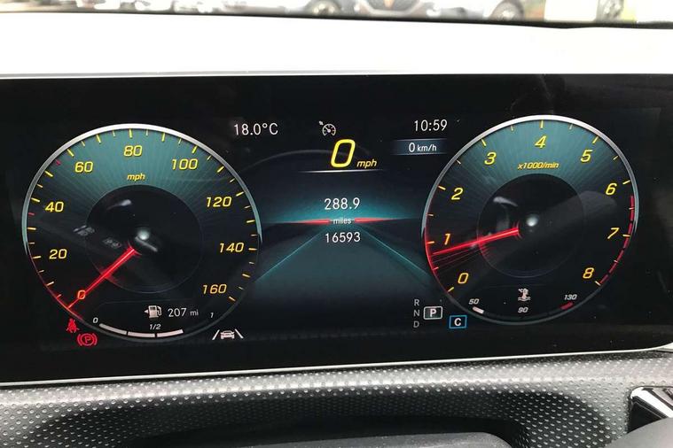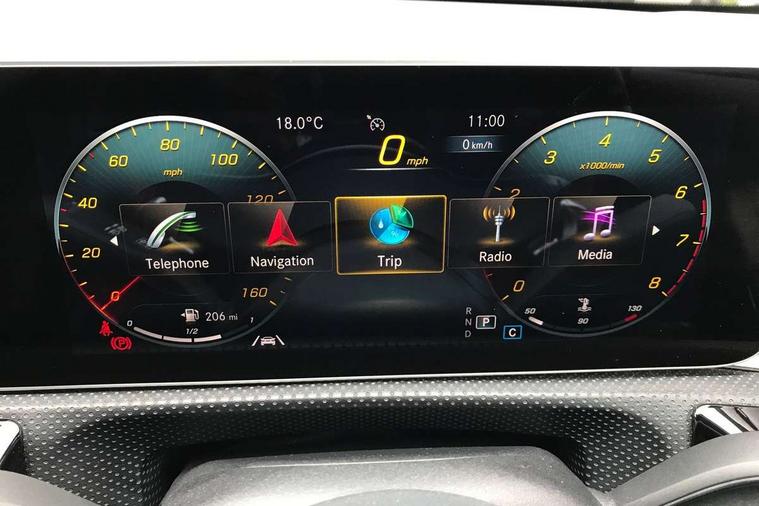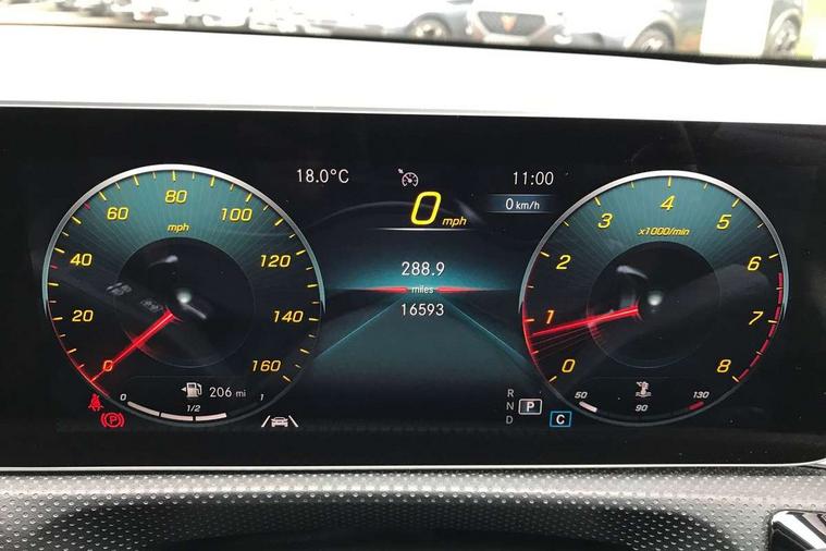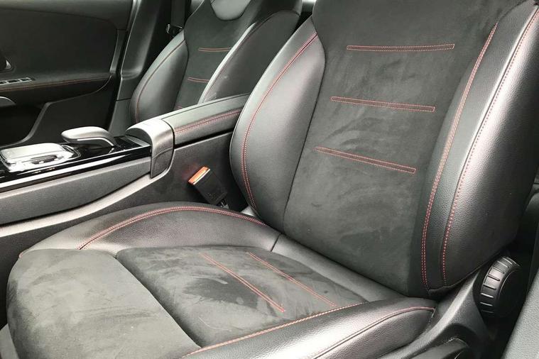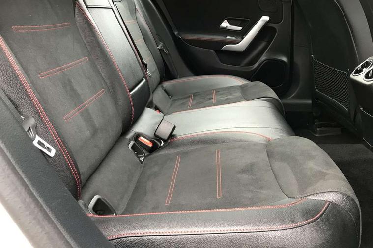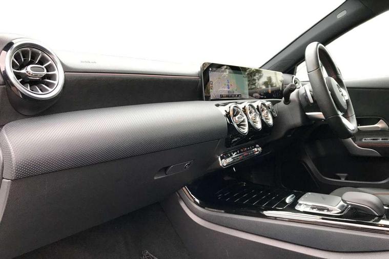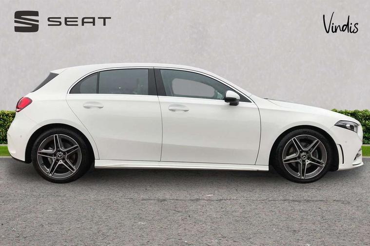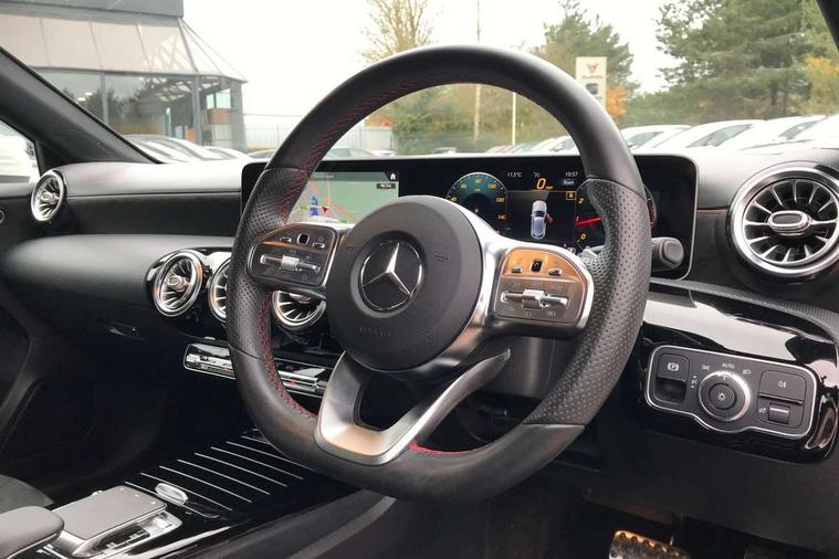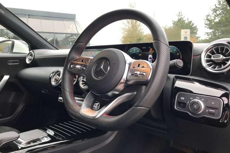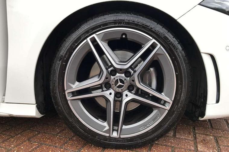 10.25" display screen, Active lane keep assist, Active park assist with parktronic system, Attention assist, Bulb failure indicator, Collision prevention assist plus, Cruise control + speed limiter, DYNAMIC SELECT with a choice of driving modes (ECO, Comfort, Sport, Sport+ and Individual), External temperature gauge, Low fluid warning light, Mercedes connect me with remote online services, Reversing camera, Service indicator (ASSYST PLUS), Speed sensitive power steering, Trip computer, Voice control system, Lowered sports suspension, 2 USB ports in centre console, DAB Digital radio, Multimedia System, SD card slot, Adaptive brake lights, AMG body styling, Auto dimming driver's door mirror, Auto dimming rear view mirror, Body colour bumpers, Body colour door handles, Body colour side skirt, Body coloured door mirrors, Chrome beltline trim, Diamond radiator grille with chrome pins and silver louvre + chrome insert, Electric adjustable heated door mirrors, Electric folding door mirrors, Electric front windows, Electric rear windows, Headlamp assist, Heated rear window with timer, High beam assist, LED daytime running lights, LED Headlights, LED rear lights, Rain sensor windscreen wipers, Rear wiper, Twin Trapezoidal tailpipes, 1/3 to 2/3 split folding rear seats, 12V socket, 3 spoke flat bottomed nappa leather sport steering wheel, AMG floor mats with red stitching, Artico man-made leather/Dinamica upholstery, Auto Mercedes-Benz child seat recognition sensor, Black headlining, Brushed stainless steel sports pedals with rubber studs, Dual zone automatic climate control, Footwell lights, Front and rear reading lights, Front centre armrest with storage compartment, Front door sills with Mercedes Benz lettering, Front head restraints, Front seat backs luggage nets, Front sport seats, Gearshift paddles on steering wheel, Heated front seats, Height adjustable front seats, Height/reach adjustable steering column, Illuminated cup holders, Illuminated door sills, Illuminated glovebox, Illuminated storage compartment, Integrated head restraints, Interior lighting - 64 colour Ambient lighting, Isofix rear child seat preparation, Load securing rings in luggage compartment, Luggage compartment cover, Multifunction steering wheel, Oddments tray lighting, Rear armrest, Rear head restraints, Storage compartment under load area floor, Sunvisors with illuminated vanity mirrors, Twin front cupholders, Seat comfort pack - A Class, 3 rear 3 point seatbelts, ABS with Brake Assist, Active bonnet, Adaptive brake system, Brake calipers with Mercedes-Benz lettering + perforated brake discs, Child proof door locks, Crash responsive emergency lighting, Drivers knee airbag, Dual stage driver/passenger airbags, Electronic parking brake, ESP with ASR, Front and rear seatbelt reminder, Front head airbags, Front passenger seat occupancy sensor, Front side airbags, Hill start assist, Tyre pressure monitoring system, Warning triangle and first aid kit, Window airbags, Alarm system/interior protection/immobiliser, Keyless Go access/ignition system, Remote central locking, Chrome air vent surrounds, 18" AMG 5 twin spoke light alloy wheels in titanium grey with highsheen finish, Tirefit sealant with electric air pump,