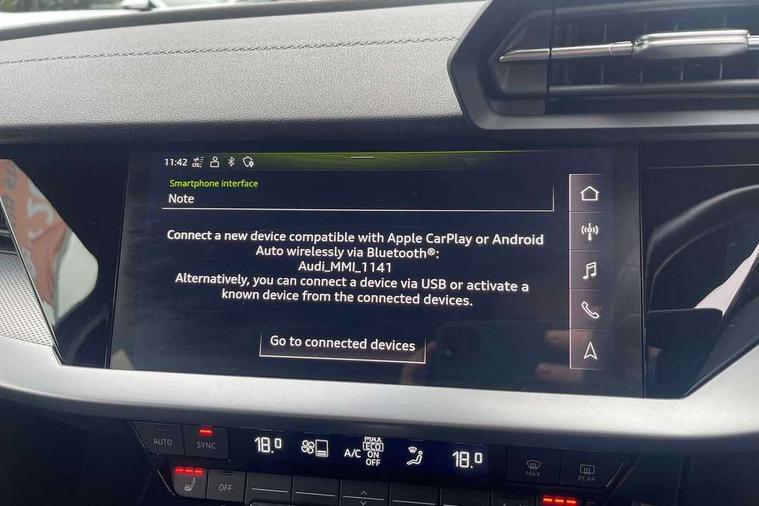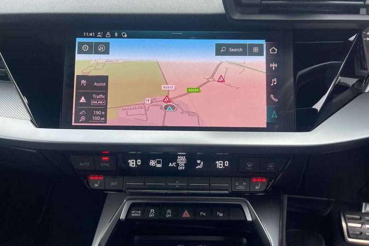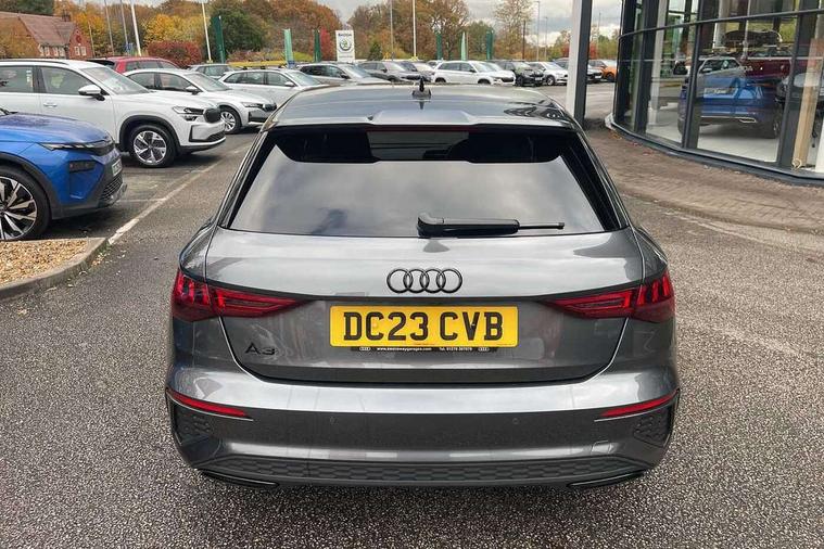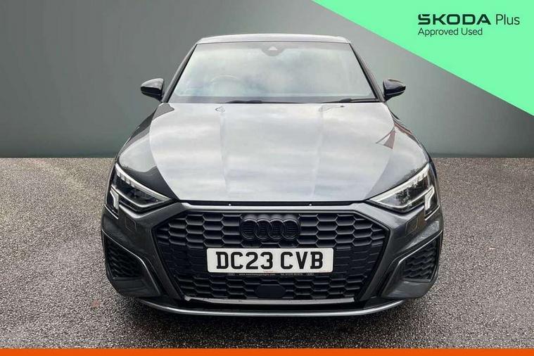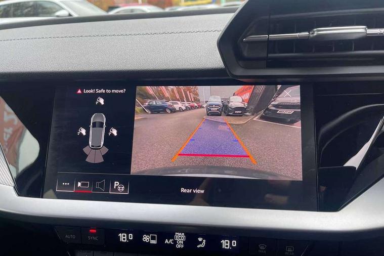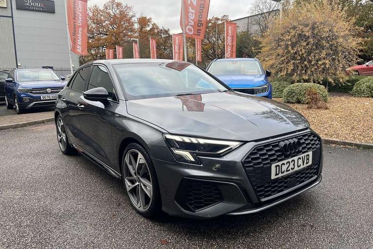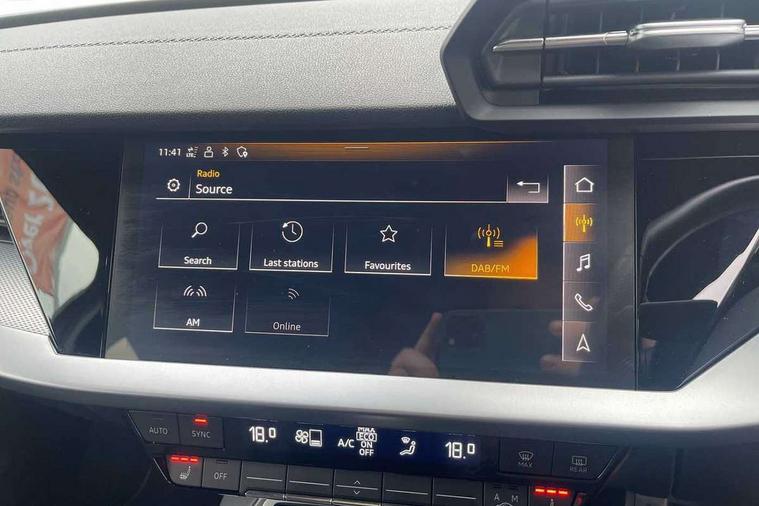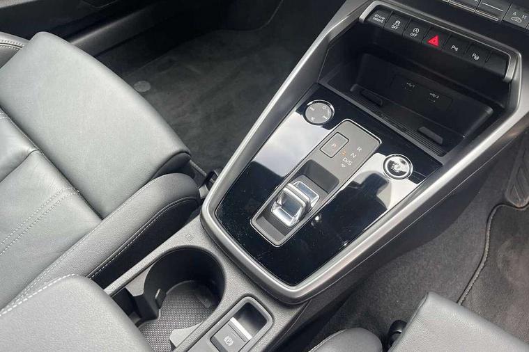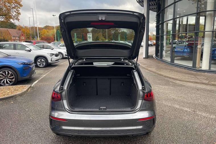 Audi drive select (Auto, Comfort, Dynamic, Efficiency and Individual), Audi smartphone interface, Audi Virtual Cockpit - 10.25" digital and colour instrument cluster, Automatic start/stop system with recuperation, Bluetooth interface, Camera based traffic sign recognition, Collision avoidance assistant, e-Call (emergency call), Electromechanical power speed sensitive steering, Lane departure warning system, MMI Navigation Plus with high resolution 10.1" colour touch screen display, Service indicator, Trip computer, Voice control system with natural language interaction, Sports suspension, 2xUSB-C connection with data and charging functions, 6 passive loudspeakers, DAB Digital radio, 3rd brake light, Acoustic glass windscreen, Audi beam uses LEDs to project the Audi logo onto the ground as you exit your A3, Auto dimming frameless rear view mirror, Electrically adjustable/heated/folding/auto dimming door mirrors with integrated LED indications + kerb view function for passenger side, Front electric windows, Illuminated door sills with aluminium inserts at the front with S logo, LED daytime running lights, LED headlights with LED rear lights and dynamic rear indicators, Light and rain sensors, Privacy glass - dark tinted rear window, rear door and side windows, Rear electric windows, Rear side air outlets in grained matt black, Rear side wing doors, Rear wiper, S roof spoiler, 12V socket and storage compartment in front centre console, 3 seat bench in 2nd row, 4 way electrically adjustable lumbar support for driver and front passenger, 60/40 split folding rear seat bench, Black cloth headlining, Dual zone electronic climate control, Front and rear centre armrest in artificial leather, Front and rear headrests, Front/rear floor mats, Height and reach adjustable steering wheel, Interior lighting - glove compartment light and right hand side, Luggage compartment floor covering, Manual boot compartment lid, Seat side bolsters, Single front passenger seat, Stainless steel pedals and front footrest in black, Twin leather upholstery with front sports seats S embossed logo, Aluminium interior elements pack - A3 Sportback, Black styling pack - A3 Sportback/Black edition, LED interior lighting pack - A3 Sportback, 3x3 point rear seat belts, Driver and front passenger airbag with passenger airbag deactivation, Electronic Stabilisation Control (ESC) including ABS, ASR and EDL, First aid kit with warning triangle and 2 safety vests, Front side airbags with head airbags and interaction airbag, Pre-sense front with pedestrian and cyclist detection, Seatbelt monitoring, Tyre pressure loss indicator, Anti theft alarm, Anti-theft wheel bolts, Electronically operated child locks, Immobiliser, Remote control central locking, Dark spectrum aluminium inlays, accent surfaces in the dashboard and centre console in platinum grey silk effect paint finish, 19" 5 arm trapezoid design alloy wheels in matt grey with diamond cut finish,