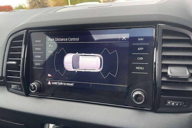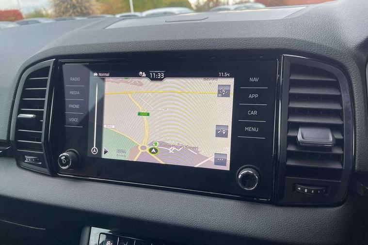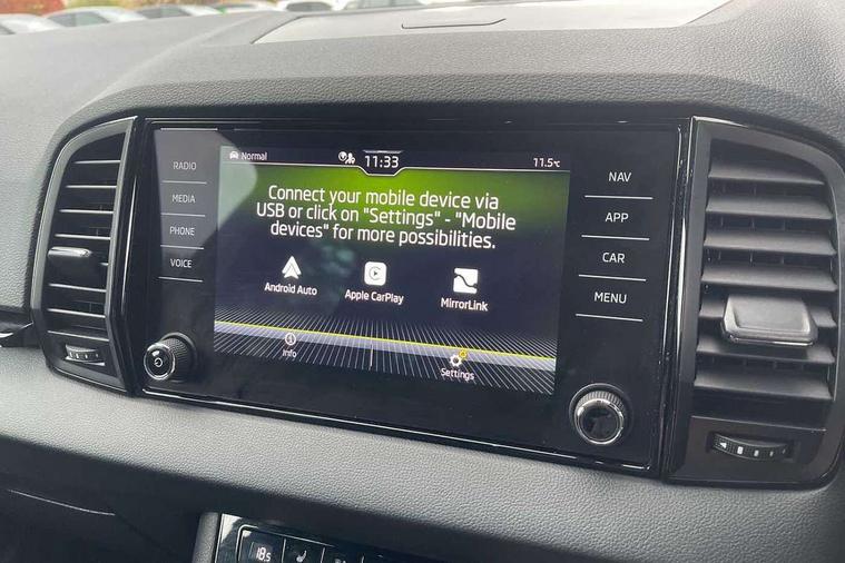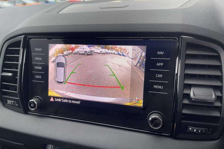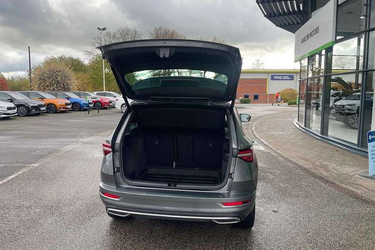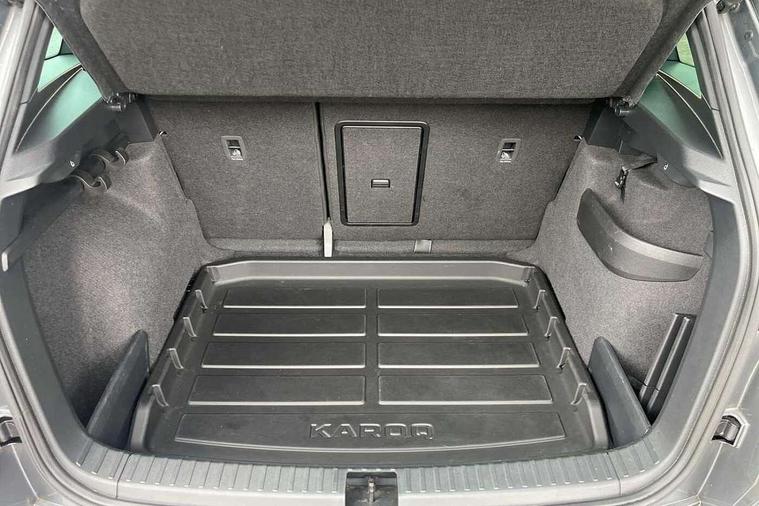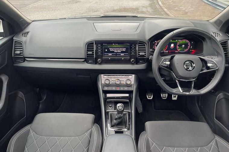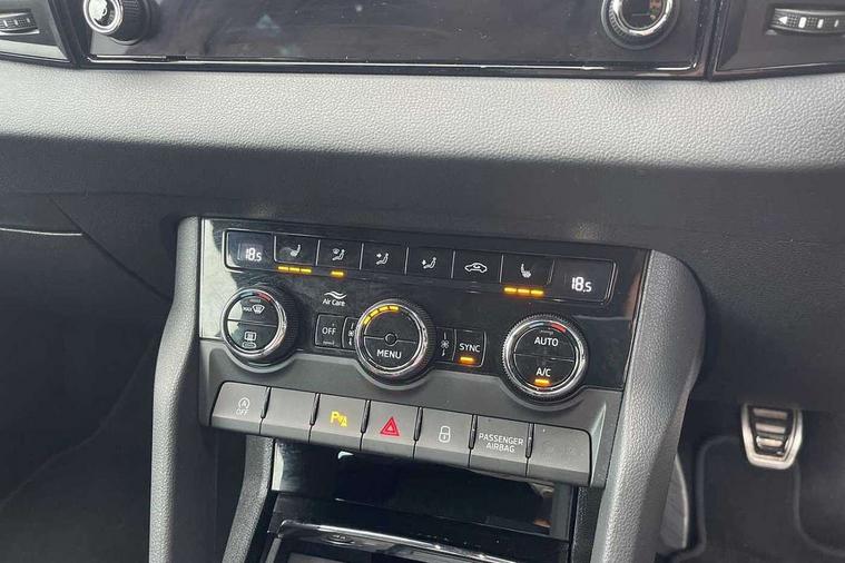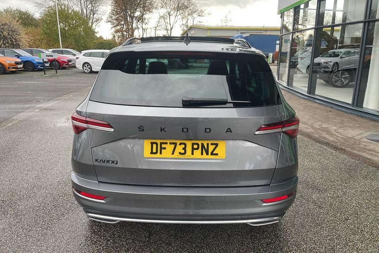 8" Digital display, Care connect, Driver fatigue sensor, Emergency services call system, Outside temperature gauge, Service interval indicator, SmartLink wireless for Apple and wired for Android, Start/stop system with regenerative braking, USB C Port x 2 in front centre console, Virtual cockpit, Virtual pedal with electrically operated boot door, 8 Speakers, DAB radio with Bluetooth, USB connection, Wireless charging without wireless aerial connection, Acoustic glass, Aero front windscreen wipers with intermittent function, Auto dimming rear view mirror with light and rain sensors, Black door mirrors, Black electric window control buttons, Black radiator grille, Black roof rails, Body colour door handles, Electric front and rear windows with child proof lock, Front door steps with SportLine logo, Heated rear windscreen, LED daytime running lights, LED rear lights with high functionality welcome effect and dynamic indicators, Light assistant (coming/leaving home/tunnel light), Panoramic sliding sunroof, Plastic scuff plates, Privacy glass, Protective door side sills in body colour, Rear diffuser, Rear side wing doors, Rear spoiler, Rear window wiper with washer system and intermittent control, Safety reflectors on front doors, Skoda lettering on tailgate in black, Sportline badge on front fender, Sportline decorative inserts with badging, Sports front and rear bumpers, 1.5 litre bottle holders in driver and front passenger door panels, 12V socket in boot, 12v socket in front centre armrest with storage compartment and rear air vents, 3 rear height adjustable headrests, 3 seat bench in 2nd row, 3 spoke leather sports multifunction steering wheel and silver stitching, 4 foldable roof handles with rear coat hooks, Black floor carpet, Black roof headlining, Chrome inner door handles, Double sided boot floor, Foldable hooks in the boot, Front head restraints, Height adjustable front three point seats belts with tensioners, Height/reach adjust steering wheel, Ice scraper, Illuminated glovebox, Illuminated luggage compartment, Isofix child seat preparation outer rear, Manual lumbar support for front seats, Pen holder, Pollen filter, Rear boot cover, Rear reading lights, Rear seats fixed folding and divided 60:40, Rubbish bin door, Safety vest holder, Single front passenger seat, Storage box in upper central dashboard closed, Sunvisors with illuminated vanity mirrors, Textile floor mats, Ticket holder, Titan black interior ceiling, Welcome animation with sportline logo, Boot pack - Karoq, Light Pack - Karoq, Parking pack - Karoq, Automatic door unlocking in case of crash, Automatic fuel cut off in case of crash, Child locks on rear doors, Driver airbag, Electronic parking brake with auto hold function, Emergency rear braking signal, ESC including ABS, MSR, ASR, EDS, HBA, DSR, RBS, MKB and traction control, Front side airbags, Hill hold control, Knee airbags, Passenger airbag with switch-off function, Pedestrian monitor, Seatbelt reminder signalisation and pretensioner for all seats, Three point seatbelts rear, Two tone horn, Tyre pressure display, Tyre pressure monitor, Alarm with interior monitoring, back up horn and tilt sensor with safe function, Electronic engine immobiliser, Keyless entry and start/stop, Remote central locking with 2 remote folding keys, Black air vent surround, Black centre console, Satin black dashboard, Satin black door trim, 19" Sagitarius anthracite alloy wheels with matt black aero inserts, Anti-theft wheel bolts protection, Matt black aero hub caps, Tool kit,