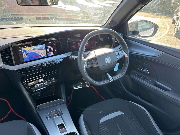 10" digital instrument cluster, 180 degree rear view camera, Cruise control with intelligent speed limiter, Digital instrumentation with digital speedometer, rev counter, fuel and water temperature gauge, Drive mode selector, Driver attention alert, Driver drowsiness alert system, Driver information display with multi function trip computer, audio info, digital clock and outside air temperature with ice warning function, Extended traffic sign recognition, Lane keep assist system (LAS) with Lane departure warning system (LDWS), Lights on audible warning, Panoramic rear view camera, Power assisted speed sensitive steering, RDS with traffic programme, Rear parking distance sensors, Speech recognition, Start/stop system, Vauxhall connect with e-Call, WiFi connectivity, Wireless phone projection with Apple CarPlay and Android Auto, Sports chassis, 2 rear USB connection, 6 speakers, AM/FM stereo radio with 36 station presets, DAB Digital radio, Front USB connection, Mobile phone portal - bluetooth connect, vehicle microphone, handsfree calls, SMS read out and reply, phone book access, Multimedia pure panel system with 10" colour touchscreen, Steering wheel mounted controls, Adaptive brake lights, Automatic lighting control with tunnel detection, Automatic wipers, Black DLO, Black door mirror housings, Black Griffin logo and vizor frame, Black lettering and emblems, Black upper window moulding, Body colour door handles, Body colour front and rear bumpers, Body colour skid plates, Dark tinted rear side windows, Electrically adjustable and heated door mirrors, Electrically operated front and rear windows with safety auto reverse and one touch up/down facility, Hazard warning lights, Heated rear window+rear wash/wipe, High beam assist, High gloss black front and rear bumper inserts, High gloss black painted claddings, lower grille and front lateral inserts, High gloss black painted lateral moulding, Integrated black tailgate spoiler, Intelli LED headlights, LED 3rd brake light, LED daytime running lights, LED side repeat indicators, LED tail lights, Manual headlamp level control, Rain sensitive windscreen wipers, Rear side wing doors, Rear tinted privacy glass, Reversing light, Shark fin antenna, Solar heat absorbing windscreen and windows, Windscreen and side window demist vents, 12V Accessory socket, 3 seat bench in 2nd row, 4 speed fan with illuminated controls, 6 way adjustable front passenger seat including height adjustment, 60/40 split folding rear seat, Air recirculation system, Aluminium effect sports pedal, Ambient lighting, Black headliner, Cabin particulate filter - removes dust, airborne particles and pollen, Centre armrest console, Chrome effect interior door handles, Door pockets with two litre capacity, Driver and passenger sun visors with vanity mirror, Electronic climate control (ECC), Focus cloth/leather upholstery, Four adjustable facia vents, Four load restraint lashing eyes, Front centre armrest with storage, Front driver and co-driver side articulated grab handles, Front head restraints, Front map reading lights, Front seat back storage pockets, Fully carpeted load area, Interior courtesy light, Interior tailgate handle, Leather effect steering wheel, Luggage compartment cover, Luggage compartment lighting, Reach + rake adjustable steering column, Rear Reading Lamps, Single front passenger seat, Steering wheel mounted paddle shift, Three height adjustable rear seat head restraints, Twin gas assisted tailgate struts, 2x Isofix child seat fitting on outer rear seats, 3x3 point rear seat belts, Anti-lock braking system (ABS), Child proof locks on rear doors, Cornering brake control, Deactivation switch for front passenger front and side impact airbags, Drag torque control, Driver and front passenger airbags, front seat side impact airbags, full size curtain airbags, Electric parking brake, Electronic brake force distribution, Electronic Stability Programme (ESP), Emergency brake assist, Enhanced automatic emergency braking with pedestrian detection, Forward collision alert at low speed, Hill start assist, Inertia reel lap and diagonal seatbelts for all seats, Seatbelt unfastened audible warning and warning light, Straight line stability control, Traction control, Tyre pressure monitoring system, Electronically protected audio equipment, Engine deadlock immobiliser, Freewheeling door locks, Key left in ignition audible warning, Locking wheel nuts, Remote control central locking, Remote control ultrasonic security alarm system, Visible vehicle identification number, Light grey trim inserts on front doors, Vegan door inserts, 18" Black diamond cut alloy wheels,
