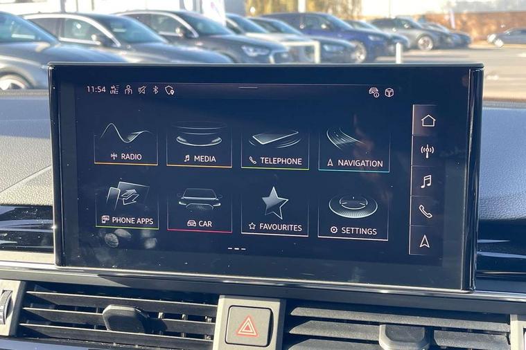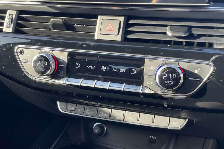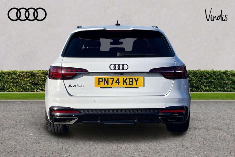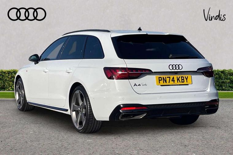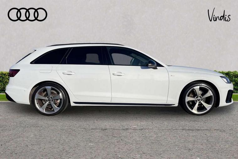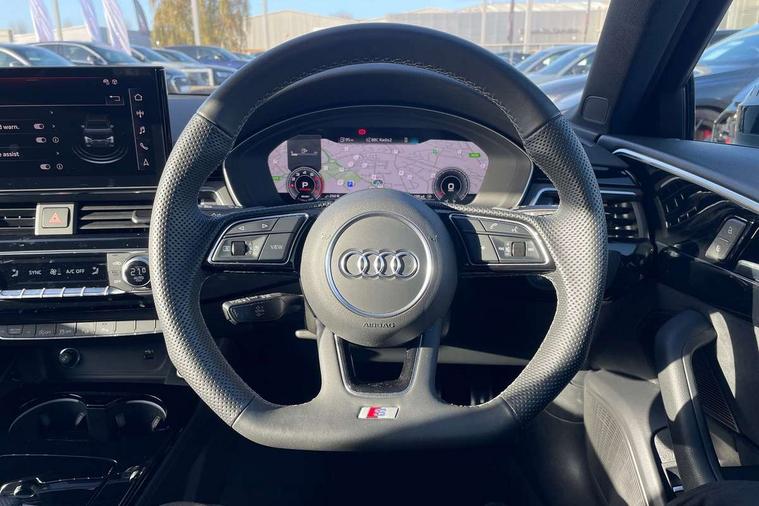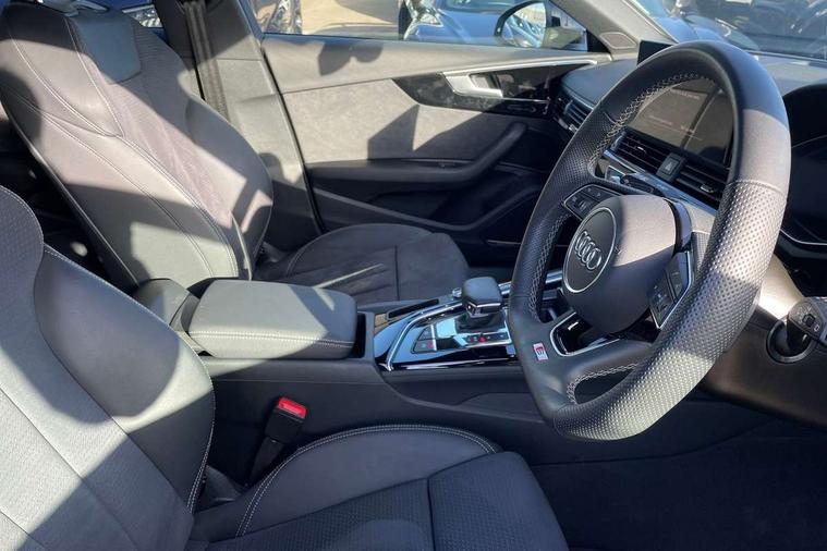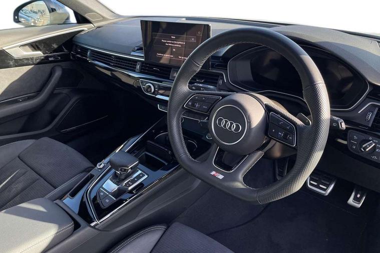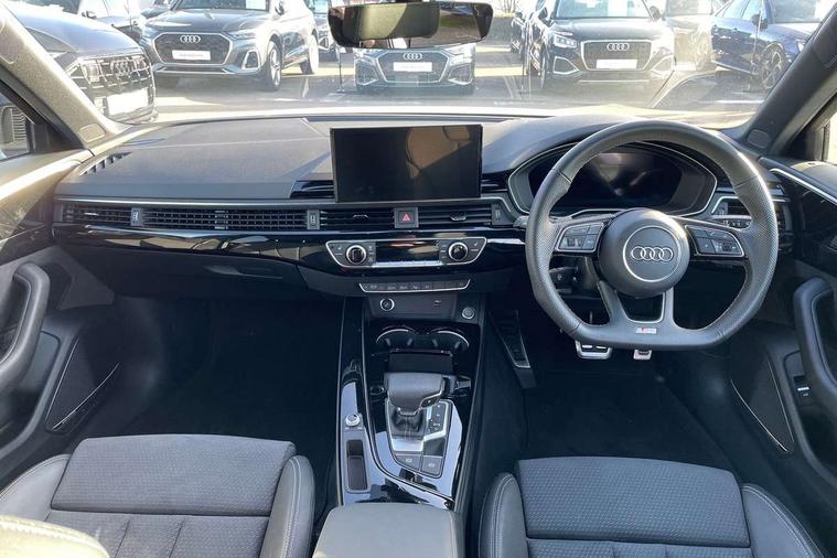 Audi connect safety and service (e-call), Audi drive select, Audi smartphone interface, Audi virtual cockpit, Automatic start-stop system with coasting functionality and efficiency programme, Bluetooth interface, Camera based traffic sign recognition, Electromechanical power steering, Email, calendar and text messages displayed via MMI, Front and rear parking sensors, Lane departure warning, MMI Navigation plus with MMI touch includes 10.1" high resolution colour MMI display, 3D map, Power operated tailgate, Rear view camera, Voice control system, 54 litre fuel tank, Sports suspension lowered by 23mm, 2 USB charging ports, 8 passive loudspeakers, DAB digital radio reception, Audi beam uses LEDs to project the audi logo onto the ground as you exit your A4, Auto dimming rear view mirror, Black Audi rings and black badging (with removed engine badging), Body colour door handles, Body colour front spoiler lip, Body colour side sill trim, Electric adjustable/heated/folding door mirrors with auto dimming, Exhaust tailpipes in dark chrome, Grained matt black side air inlets with matt aluminium silver inlay, High beam assistant, High gloss black B pillar trims and triangular rear door trim, LED headlights with LED rear lights + dynamic rear indicators + headlight adjustment and high beam, turning light + LED daytime running lights, LED third brake light, Privacy glass, Rain and light sensors, Rear diffuser in matt black with trim strip in matt aluminium silver, Rear side wing doors, Rear wiper, RS4 rear spoiler in body colour, S Line roof edge spoiler, Sport front and rear bumpers with side skirts, Variable intermittent front wash/wipe, Windscreen with acoustic glazing, 4 way electric lumbar support for driver and front passenger, 40/20/40 split folding 3 rear seat bench in 3 parts with rear centre armrest, Black carpets, Black cloth headlining, Black perforated leather gearknob, Contrast stitching on seats, steering wheel and gear lever gaiter, Deluxe 3 zone electronic climate control, Electric load area cover, Front and rear head restraints, Front centre armrest, Heated front seats, Illuminated door sill trims with S logo, ISOFIX child seat mounting and top tether, Manual seat adjustment, Single front passenger seat, Stainless steel pedals and foot rest, Black styling pack - A4 Avant, LED Interior light pack - A4/S4, 3 rear seatbelts, 6 airbags - Driver, front passenger, curtain and side windows, Attention and drowsiness assist, Electronic Stabilisation Control (ESC) including ABS, ASR and EDL, Hill hold assist, Multi collision brake assist, Pop-up bonnet for pedestrian protection, Pre sense city, Rear door child safety locks, Seatbelt monitoring, Warning triangle and first aid kit, Anti theft alarm, Anti theft wheel bolts, Central locking, Keyless Go, Piano black finish inlay, Tool kit, Tyre repair kit,