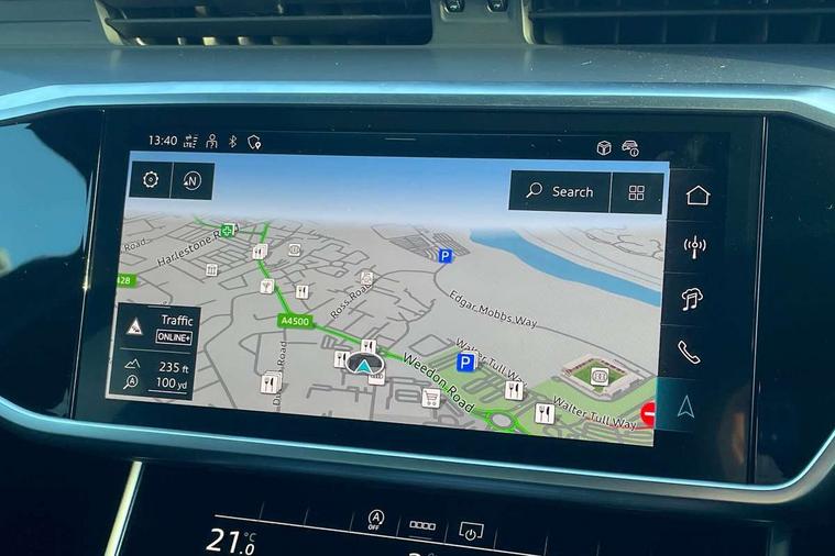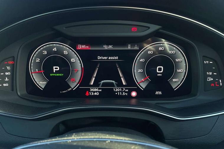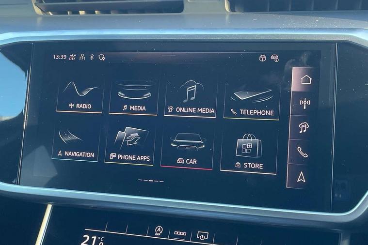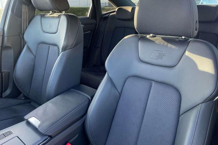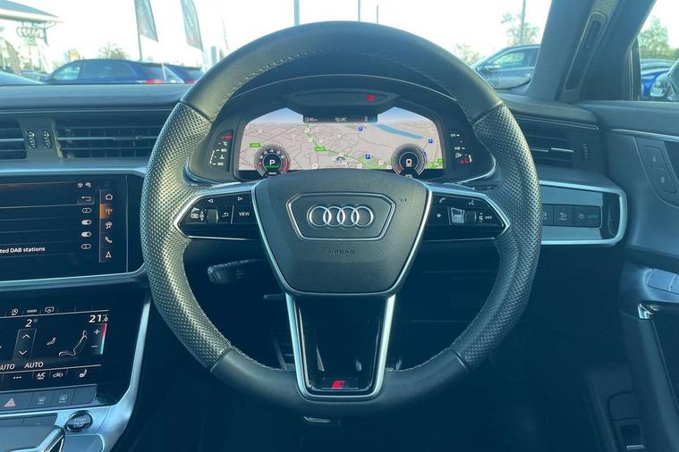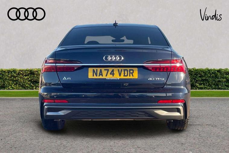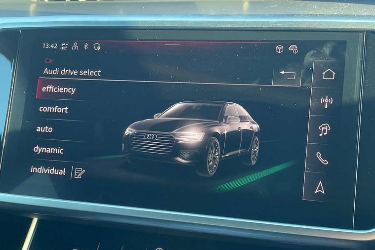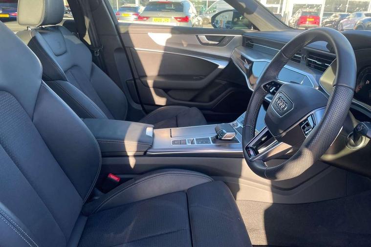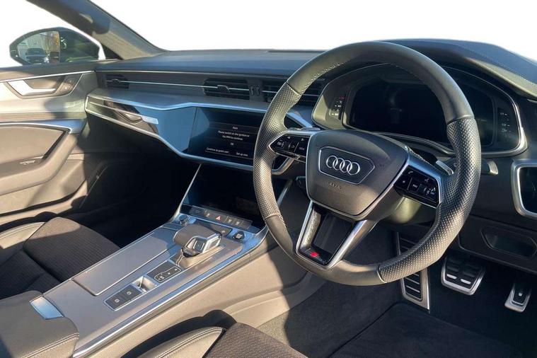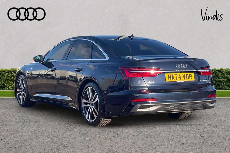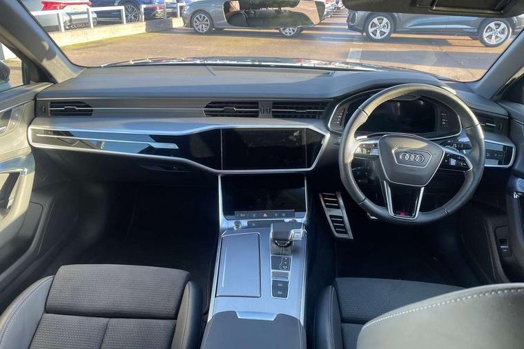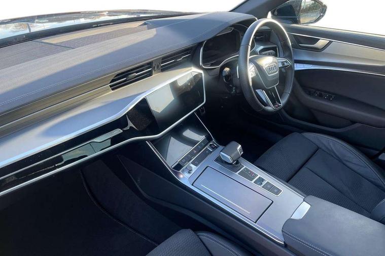 Audi connect safety and service (e-call), Audi connect with Amazon Alexa Integration, Audi drive select, Audi parking system plus - acoustic and visual park assist system for front and rear, Audi virtual cockpit, Automatic start/stop system with coasting functionality, Bluetooth interface, Camera based traffic sign recognition, Electric boot lid release, Lane departure warning system, MMI navigation plus with 10.1" and 8.6" touch screens, Progressive steering, Rear view camera, Service interval indicator, Smartphone interface includes wireless Apple carplay/Android Auto, Voice control system, Sports suspension, Audi front music interface, Audi sound system, Auxiliary input socket, DAB Digital radio, USB connection, Body coloured door mirrors, Electric front/rear windows, Electrically adjustable heated and folding + automatically dimming exterior mirrors with memory function, Frameless auto dimming interior rear view mirror, Front intermittent wipers, Heat insulating darkened glass in side and rear windows, Heat insulating glass in windshield, LED rear lights with dynamic indicators, LED signature front daytime running light, LED third brake light, Matrix LED headlights, Matt black rear diffuser with diffuser strip and tailpipes in chrome, Matt black side air intake grille with inlay in matt aluminium, Privacy glass, Radiator grille in anthracite black matt, single frame in chrome and horizontal struts in matt aluminium silver, Rain and light sensors, Rear boot, Rear side wing doors, 2 zone deluxe electronic climate control, 3 spoke high multi-function perforated leather steering wheel with contrast stitching and shift paddles, 40/20/40 split folding 3 rear seat bench in 3 parts with rear centre armrest, Audi phone box light, Black cloth headlining, Electrically adjustable front seats including seat height, fore/aft position, backrest angle and 4-way lumbar with memory for driver's seat, Front and rear floor mats, Front centre armrest, Front head restraints, Heated front seats, Height/reach adjust steering wheel, Illuminated door sill trims with S logo, Illuminated sun visors with vanity mirrors, Leather gear knob, Rear headrests, Single front passenger seat, Stainless steel pedals and foot rest, Tool kit and car jack, LED Interior Ambient Lighting Pack - A6, Non smoking pack - A6, S line exterior style pack - A6, 3 point seatbelts on all seats, Airbags - Front side, front and rear including head, Audi pre-sense front, EBD - Electronic brakeforce distribution, Electromechanical parking brake, Electronic Stability Control (ESC) including ABS, ASR and EDL, Extended pedestrian protection measures, ISOFIX child seat mounting for front passenger seat and ISOFIX child seat mounting with Top Tether for outer rear seats, Manual child proof rear door locks, Seatbelt monitoring, Tyre pressure warning light, Warning triangle and first aid kit, Anti theft alarm with tow away protection, Anti-theft wheel bolts and wheel loosening detection, Immobiliser, Keyless Go, Remote central locking, Matt brushed aluminium inlays,