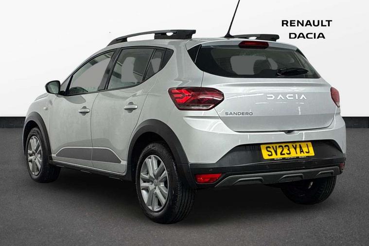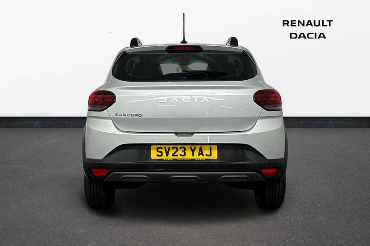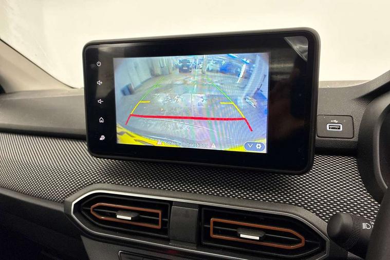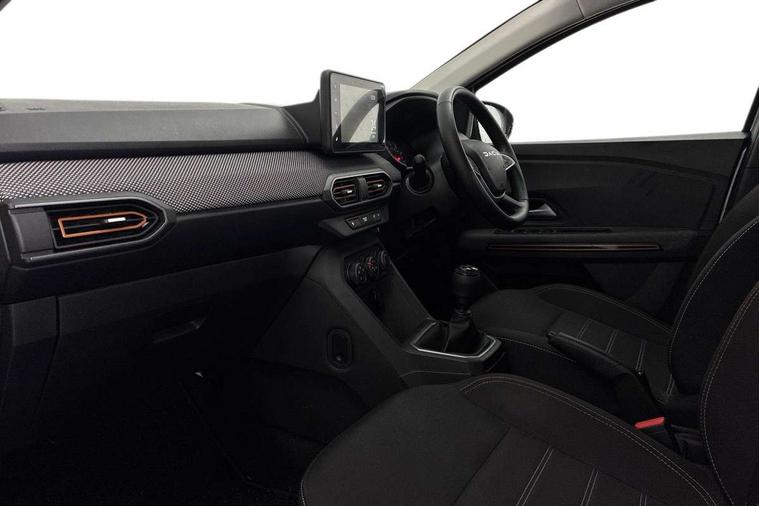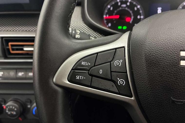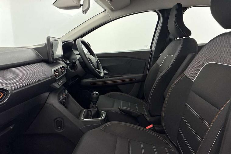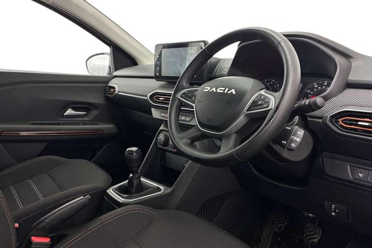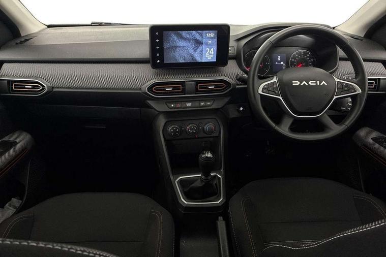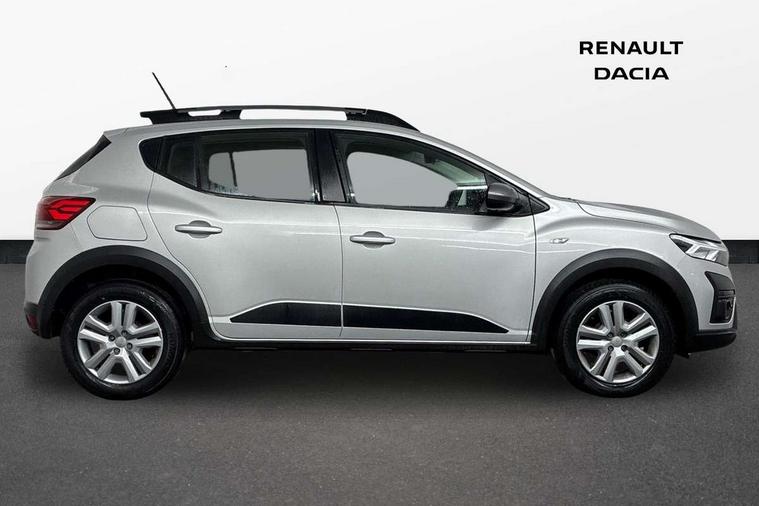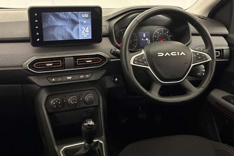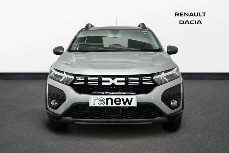 3.5" TFT instrument panel with on-board computer, Cruise control with speed limiter, eCall emergency call system, Eco mode, Electric power assisted steering, Rear parking sensors, Rev counter, Reversing camera, Stop/start system, 8" Media display - DAB radio, smartphone replication, bluetooth, 4 speakers, Apple CarPlay and Android Auto, USB connection for data transfer and charging, USB socket, 3 speed windscreen wipers, Auto lighting, Automatic wipers, Body colour door handles, Body colour door mirrors, Body coloured bumpers, Chrome modular roof bars, Chrome radiator grille, Chrome stepway inscription on radiator grille and roof bars, Drivers one touch electric windows, Electrically adjustable and heated door mirrors, Front electric windows, Front fog lights, Heated rear window, High level third brake light, LED automatic daytime running lights, LED Y-shape Dacia signature lighting, Rear electric windows, Rear side wing doors, Rear wash/wipe, Tinted windows, 1/3 to 2/3 split folding rear seats, 12 volt front socket, 12 volt rear socket, 3 height adjustable rear headrests, 3 seat rear bench, Driver and passenger vanity mirror with cover, Fabric upholstery, Fixed smartphone holder on dashboard, Floor mats, Gear shift indicator, Height adjustable drivers seat with armrest, Height adjustable front headrests, Height/depth adjustable steering wheel, Isofix points for child seats in both outer rear seats, Manual air conditioning, Satin chrome interior door handles, Satin Chrome/Copper orange air vents, Single front passenger seat, Soft feel steering wheel, Steering wheel controls, 3x3 point rear seatbelts, ABS and Emergency brake assist, Automatic emergency braking system, Child locks on rear doors, Door open visual and audible warning, Driver airbag, ESC (Electronic Stability Control), ESP + Hill Start Assist, Front curtain airbags, Front seatbelt pretensioners, Front side airbags, Height adjustable front seatbelts, Passenger airbag, Seatbelt reminder for driver and front passenger, Tyre pressure monitor, Automatic central locking, Immobiliser, Keyless entry, Remote central locking, Decopart on instrument panel and door with textile, 16" Flex wheels with full wheel cap, Tyre inflation kit,