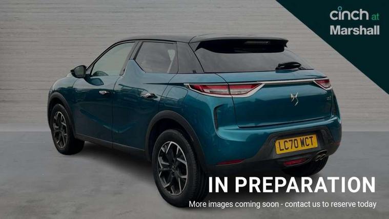7 inch digital instrument cluster display, Cruise control with speed limiter, DS Connect Box emergency and assistance system, Mirror Screen with Apple car play/Android Auto, Multi function on board trip computer, PAS, Service indicator, 2x USB sockets in front, Bluetooth handsfree and media streaming, DAB Digital radio, Acoustic and tinted front and rear windscreens, Automatic front windscreen wipers, Automatic lights, Automatic triggered rear windscreen wiper in reverse gear, Body coloured bumpers, Chrome door handles, Chrome DS wings, Dark tinted rear windows, DS monogram on rear tailgate, Electrically adjustable door mirrors, Electrically folding door mirrors with DS LED spotlights, Flush fitting exterior door handles, Front and rear electric windows, Gloss black exterior door mirrors, Heated door mirrors, Heated rear windscreen, LED daytime running lights, Tinted exterior door mirrors, Twin exhaust tailpipe, 12V socket, 40/60 backrest split on rear seats with easy folding button, Adjustable steering wheel, Bag support hooks in the boot, Boot light, Front + rear carpet mats, Front and rear LED reading lights, Front central armrest, Front/rear passenger grab handles, Height adjustable front seats, Height adjustable front/rear head restraints, Odour filter, Premium seat with comfort foam and pads & map pocket, Sunvisors with LED vanity mirror, Twin front cupholders, Two rear isofix mounting points, 3x3 point rear seatbelts, ABS, Airbags - front / rear lateral and curtain airbags, Electric parking brake, ESP, Height adjustable front seatbelts with pretensioners and front and rear load limiter, Hill assist control, Seatbelt warning, Tyre pressure monitoring system, Warning triangle on boot lid, Locking wheel nuts, Perimetric and volumetric anti theft alarm, Remote central locking + deadlocks, Black centre caps with DS logo,
