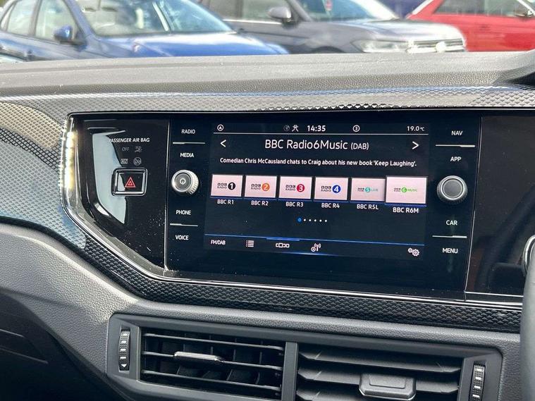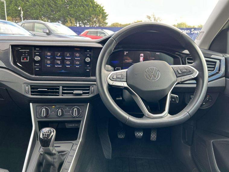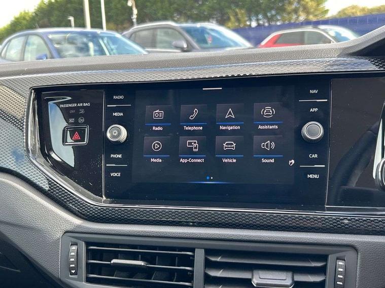 Advanced driver attention and drowsiness monitor, Bluetooth mobile phone interface, Cruise control + speed limiter, Dynamic road sign display, Emergency call service, Lane keeping system Lane Assist, Power assisted speed sensitive steering, Preparation for navigation system with media and internet package, Preparation for We connect and We connect plus, Speedo and rev counter, electronic odometer, trip, service interval display and exterior temperature gauge, Standard rear axle, Trip computer, Warning signal and warning light for front and rear seatbelts not fastened, Washer fluid level indicator, Wireless app connect, Front wheel drive, Rear shock absorpion, Start-stop system with battery regeneration (recuperation - energy recovery during braking), DAB Digital radio, Diversity antenna for FM reception, Front and rear 6 speakers, Automatic dimming interior rear view mirror, Automatic headlight control with LED separate daytime running lights with coming/leaving home function, Body colour bumpers with chrome inserts, Body colour door handles, Body colour door mirrors, Electric front windows, Engine badge deletion, Headlight range adjustment, Heat insulating and laminated safety glass windshield, Heat insulating darkened glass in side and rear windows, Heat insulating glass windscreen, LED Headlights, LED rear combination lamps, Power folding adjustable/heated exterior mirrors and front passenger exterior mirror lowering function, Rain sensor, Rear electric windows, Rear fog light, Rear side wing doors, Rear windscreen washer and wiper with interval delay, Third brake light, 12V power socket in centre console, 2 front and 2 rear reading lights with switch off delay and dimmer, 2 USB-C ports in the front, 2 USB-C charging sockets on the center console in the rear, 3 rear head restraints, 60/40 split folding rear seat and rear seat bench not split, Ceramique roof lining, Chrome plated radiator grille inserts, air vent surrounds and light switch surrounds, Door and side trim panel, Driver and front passenger seat height adjustment, Driver/passenger sunvisors with illuminated vanity mirrors, Front centre armrest, Front seat backrest storage pockets, Front standard seats, Handbrake lever handle in leather, Hartley/Thomas cloth upholstery, Headliner in recycled material, Isofix child seat preparation easy-fit (for two outer rear seats, and front passenger seat) compatible with I-size, Leather trimmed gear knob, Luggage compartment cover, Luggage compartment lighting, Removable luggage compartment floor, Single front passenger seat, Standard climatic zones, Standard pedal cluster, Three spoke leather wrapped multifunction steering wheel, Light and vision pack - Polo, 3 point height adj front seatbelts + pretensioners, 3x3 point rear seatbelts, ABS, Driver and front passenger airbag with front passenger airbag deactivation, Drivers and front passengers safety optimised head restraints, ESC (Electronic stability control) + EDL (Electronic Differntial lock) and ASR (Traction control), Extended and predictive pedestrian/ cyclist protection, Front assist with autonomous emergency braking (for Adaptive Cruise Control ACC up to 130 mph), Front curtain and side airbags with center airbag, Front disc brakes, Hill hold control, Manual child lock in rear doors, Rear drum brakes, Single tone horn, Tyre pressure loss indicator, Alarm with interior protection, Anti-theft alarm system with interior monitoring, backup horn, and towing protection, Anti-theft wheel bolts, Electronic engine immobiliser, Lava stone black gloss/matt decorative inserts in dash and front door panels, Low rolling resistance tyres,