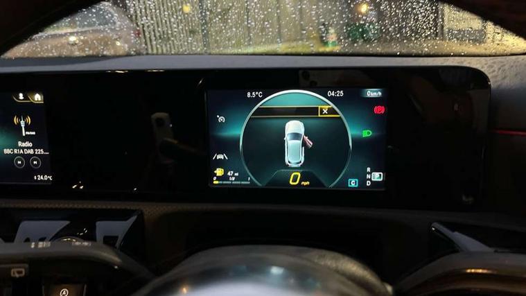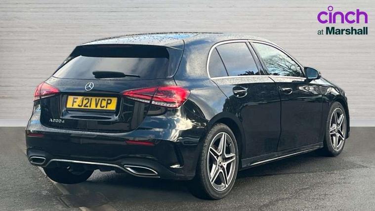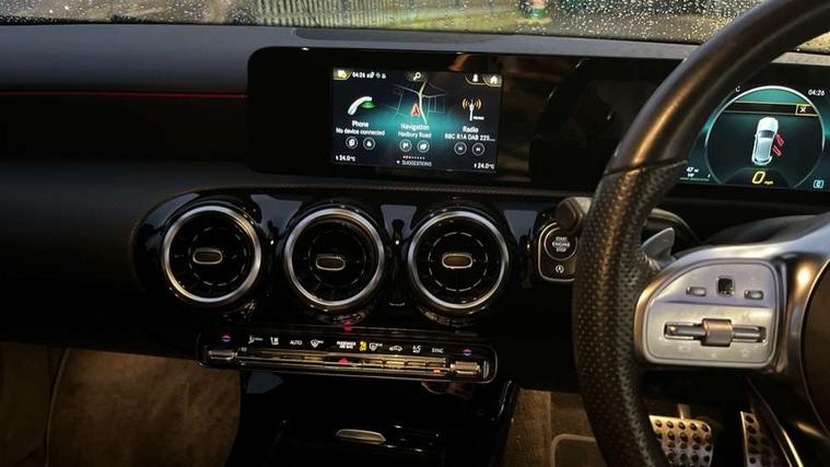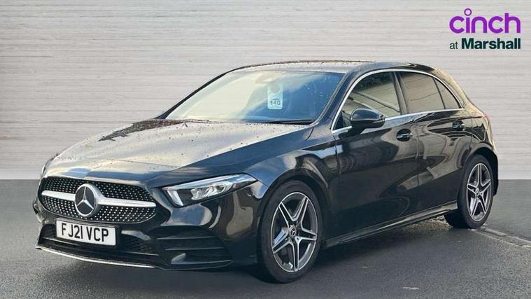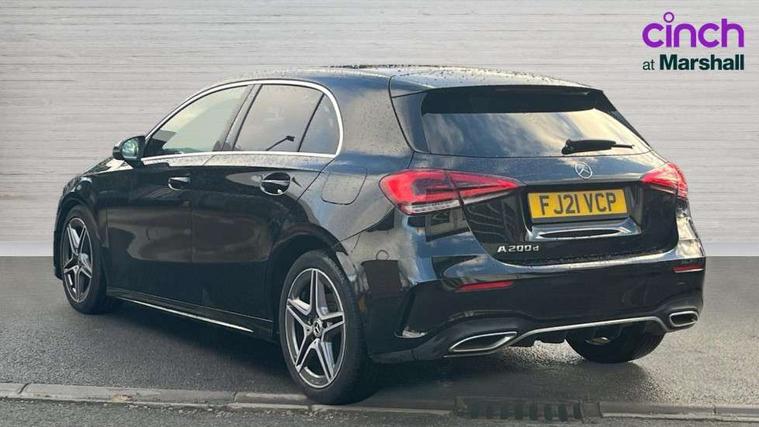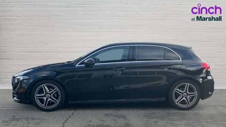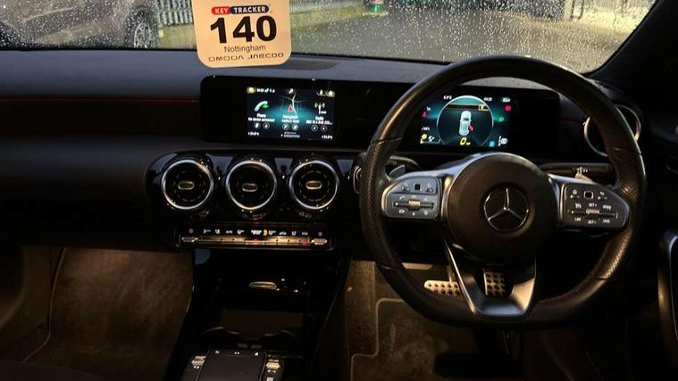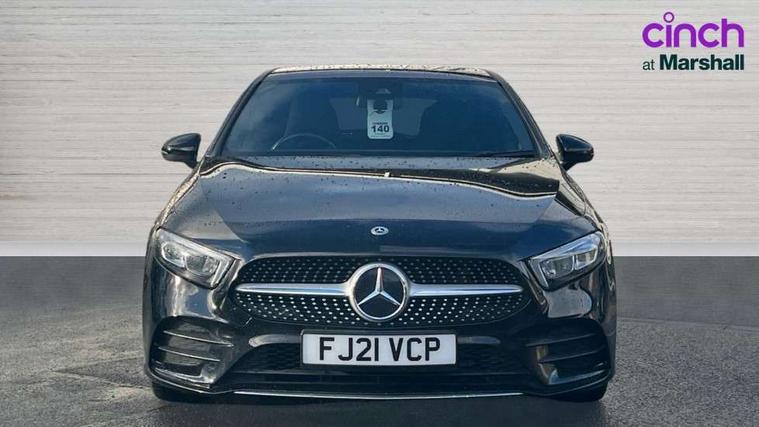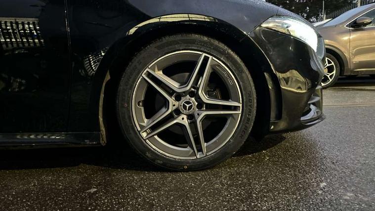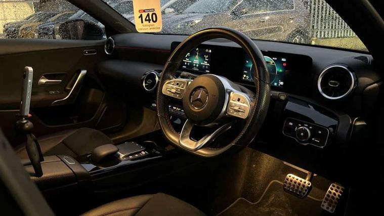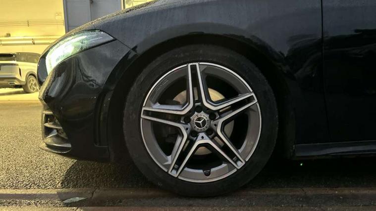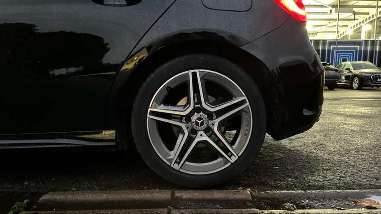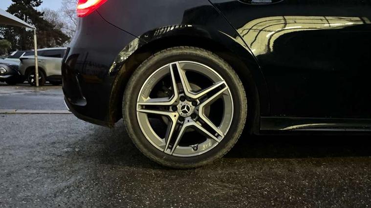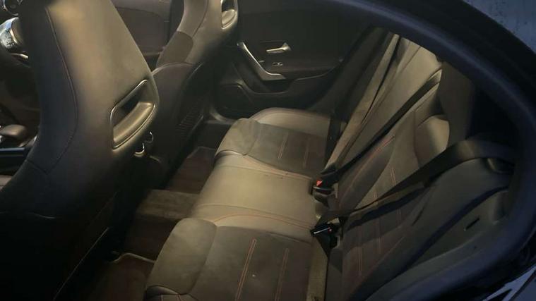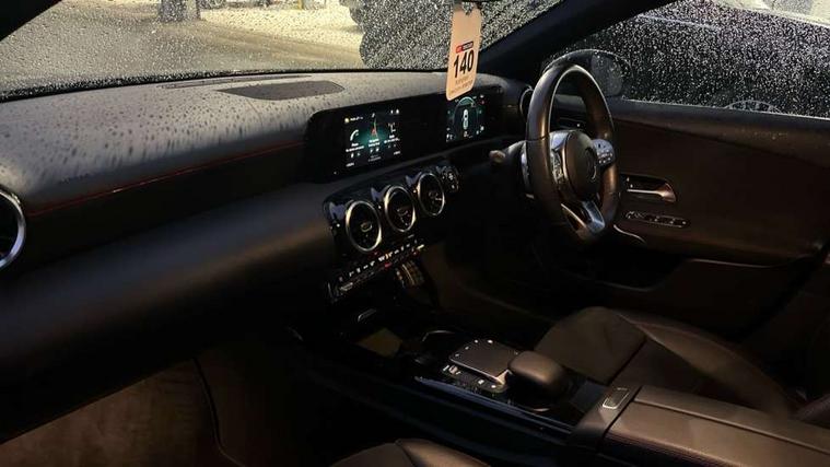 180 degree rear view camera with parking guidelines, 7" colour screen in instrument panel, 7" touchscreen media display, Attention assist, Brake pad wear indicator warning light, Car wash mode, Cruise control + speed limiter, Direct steering, Dual bluetooth interfaces, DYNAMIC SELECT with a choice of driving modes (ECO, Comfort, Sport and Individual), ECO start/stop function, Fluid level warning indicator for fuel, oil, coolant and washer fluid, Hard-disk navigation, Hey Mercedes Voice activation, Lamp failure indicator, Mercedes me connect including emergency call system, accident recovery, breakdown and maintenance management, Mercedes me remote services, Outside temperature gauge, Owners manual in English, Pre-installation for private car sharing, Preinstallation for Mercedes Benz link, Service indicator (ASSYST), Speed sensitive power steering, Trip computer, Lowered comfort suspension, Rear axle torsion beam, 2 USB ports (type C) in rear stowage compartment and one in front of center console, 6 speakers, DAB Digital radio, MBUX multimedia system with DAB digital radio and touchpad including satellite navigation, Mercedes-Benz sound system - 100W, 4 Electric Front and Rear windows, Adaptive brake lights, AMG bodystyling - Front apron with splitter in chrome, rear apron with chrome trim and chrome visible trim elements in tailpipe, Black weather strip, Body colour bumpers, Body colour door handles, Body colour side skirt, Body coloured door mirrors, Chrome beltline trim, Diamond radiator grille with chrome pins and silver louvre + chrome insert, Electric adjustable and heated door mirrors with integrated LED side indicators, Exhaust system - Twin visible tailpipes in polished stainless steel, Headlamp assist automatic headlamp activation, Heated glass rear windscreen + timer control, LED high performance headlamps with integrated LED daytime running lights, LED tail lamp, LED third brake light, Privacy glass, Radio aerial, Rain sensing windscreen wipers with two sensitivity settings, Rear fog lights, Rear wiper, Window line trim strip in chrome, 3 Spoke flat bottom leather multi function steering wheel with perforated leather in grip area, 40:20:40 split folding rear seats, Artico man-made leather/Microfibre Dinamica upholstery with red contrast stitching, Auto Mercedes-Benz child seat recognition sensor, Black air vents with surround in silver chrome, Black roof lining, Brushed stainless steel sports pedals with rubber studs, Controller on centre console with chrome surround, Floor mats with stitched edging and AMG lettering, Front centre armrest with storage compartment, Front door sills with Mercedes Benz lettering, Front seat backs luggage nets, Front seat cushion length adjustment, Galvanished gear shift paddles on steering wheel, Heated front seats, Height/reach adjustable steering column, Interior mirror with reading lamps in black and frameless, Manual height adjustable front seats, Rear head restraints, Seat occupancy sensor for front passenger seat, Sports seats with integrated headrests, Stowage compartment in centre console with retractable cover, Sunvisors with illuminated vanity mirrors, Touchpad on center console, Twin front cupholders, Two zone thermotronic luxury automatic climate control, Light and sight pack - A Class, Seat comfort pack - A Class, 3 rear 3 point seatbelts, ABS with Brake Assist, Active bonnet, Active brake assist includes forward collision warning system with autonomous braking, Adaptive brake assist with hold function and hill start assist, Black seatbelts, Childproof locks manually operated for rear doors and electrically operated for rear power windows, Crash responsive emergency lighting, Driver and passenger head and side airbags, Drivers knee airbag, Dual stage driver/passenger airbags, Electronic parking brake, ESP curve dynamic assist, ESP with ASR, Front and rear seatbelt reminder, Front brake callipers with Mercedes Benz lettering, ISOFIX and top tether child seat fixing points in two outer rear seats, Tyre pressure monitoring system, Warning triangle and first aid kit, Window airbags, Alarm system/interior protection/immobiliser, Keyless Go, Remote central locking and crash sensor with emergency opening function, Urban guard vehicle protection system with immobiliser and interior protection, Dinamica microfibre trim in black, 18" AMG 5 twin spoke light alloy wheels in titanium grey with highsheen finish, Summer tyres, Tirefit sealant kit,