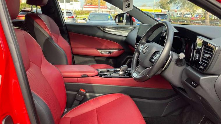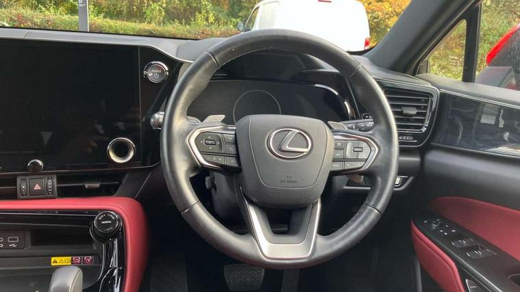 4 driving modes EV/Eco/Normal/Sport, 7" display in instrument binnacle, Bluetooth telephone connectivity, eCall emergency system, Electric speed sensitive power steering, Intelligent parking sensors - 4 front and 4 rear, Lane change flasher function, Lexus link connect - Cloud based navigation, cloud based voice assistant, always online and 9.8" VGA touchscreen, Push button starter, Reversing camera with back guidelines, Service interval indicator, Tailgate, Wireless Apple CarPlay and wired Android Auto, All Wheel Drive (AWD), Hybrid automatic transmission, Vehicle Dynamics Integrated Management (VDIM), Vehicle Stability Control (VSC), 10 speakers, 4 USB ports - 2 front, one USB C, 2 rear USB C, DAB Digital radio, Auto dimming interior rear view mirror, Automatic headlights, Bi LED headlights, Double hidden exhaust pipes, Front and rear one touch power windows, with anti-jam protection, Heated, auto-folding, auto-dimming outside mirrors with reverse tilt function and turn indicators, LED brake lights and rear lights with emergency brake signal, LED daytime running lights, LED Indicators, Light green UV acoustic rear doors & rear glass, Power back door system, Rain sensor windscreen wipers, Rear side wing doors, Rear wiper, Roof rails, 12V accessory port centre console and luggage compartment, 2 cupholders in front centre console, 2 x fixed shopping bag hooks in boot, 2 x sun visors with vanity mirror and lamp, 3 seat bench in 2nd row, 4 x tie down hooks in the boot, 6 tie down hooks in boot, 6 way manually adjustable front seats, 60/40 split folding rear seat, Adjustable rear seat backrest, Card holder installed in driver and passengers sun visors, Centre armrest with storage box, Dual climate control air conditioning system, Front and rear head restraints, Front and rear textile carpet mats, Front passenger seat, Heated front seats, Leather gear lever, LED interior illumination, Power adjustable leather steering wheel with paddle shifts, Rear centre armrest with 2 cupholders, Tahara leather upholstery, Whiplash Injury Lessening (WIL) feature (active headrest) for seats, 2 x Isofix child rear seat restraints, 3 point ELR front seatbelts with pretensioners, 3x3 point rear seat belts, ABS, Adjustable seat belt anchor points, Driver and front passenger 2 stage airbag, Driver/front passenger side airbags, Drivers knee airbag, E-Latch electric door release, EBD + Brake Assist, ECB (Electronically Controlled Brake System), Electronic parking brake, Front and rear curtain shield airbags, Front center airbag, Front passenger seat cushion airbag, Hill assist control, Lexus safety system - dynamic radar cruise control, pre collision system day and night, lane tracing assist, road sign, automatic high beam, OTA, Manual rear child locks, Passenger airbag cut-off device, Traction control, Tyre pressure warning, Anti-theft system with alarm, intrusion sensor, glass breakage sensor, tilt sensor and engine immobiliser, Locking wheel nuts, Speed sensitive auto door locking, Ultra Wide Band (UWB) Anti-theft system, VIN Window etching, Black microdot inlay, Tyre repair kit,