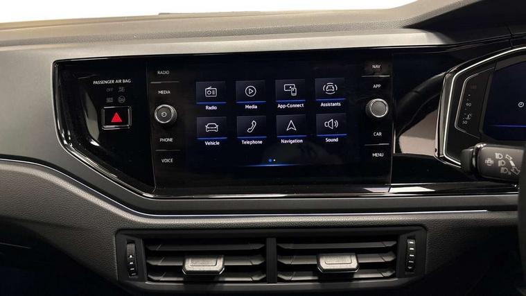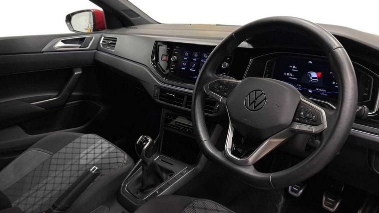 Adaptive cruise control without follow-to-stop and speed limiter, Bluetooth mobile phone interface, Digital Cockpit Pro with 10.25" Display, Driver alert system, Dynamic road sign display, Emergency call service, Power assisted speed sensitive steering, Preparation for We connect and We connect plus, Speedo and rev counter, electronic odometer, trip, service interval display and fuel gauge, Standard rear axle, Travel Assist - Lane keeping system and traffic jam assist, Travel assist including emergency assist, Trip computer, Warning signal and warning light for front and rear seatbelts not fastened, Washer fluid level indicator, Wireless app connect, Front wheel drive, Rear shock absorpion, Start-stop system with battery regeneration (recuperation - energy recovery during braking), DAB Digital radio, Diversity antenna for FM reception, Front and rear 6 speakers, Body colour bumpers, Body colour door handles, Body colour door mirrors, Electric front windows, Front scuff plates with R-Line logo, Heat insulating darkened glass in side and rear windows, Heat insulating glass windscreen, Power folding adjustable/heated exterior mirrors and front passenger exterior mirror lowering function, Rear electric windows, Rear fog light, Rear side wing doors, Rear tinted glass from B-pillar backwards approx 65% tinted, Rear windscreen washer and wiper with interval delay, Third brake light, 12V power socket in centre console, 2 USB-C ports in the front, 2 USB-C charging sockets on the center console in the rear, 3 rear head restraints, 60/40 split folding rear seat and rear seat bench not split, Air care climatronic air conditoning system with active combination filter and 2-zone temperature control, Black roof lining, Ceramique headliner, Chrome plated radiator grille inserts, air vent surrounds and light switch surrounds, Door and side trim panel, Driver and front passenger seat height adjustment, Driver/passenger sunvisors with illuminated vanity mirrors, Front + rear carpet mats, Front centre armrest, Front footwell illumination, Front seat backrest storage pockets, Front sports comfort seats, Handbrake lever handle in leather, Isofix child seat preparation easy-fit (for two outer rear seats, and front passenger seat) compatible with I-size, Karoso artvelours cloth upholstery, Leather trimmed gear knob, LED interior light with switch off delay and dimmer, 2 reading lights front and rear, Luggage compartment cover, Luggage compartment floor, Luggage compartment lighting, Lumbar adjustment for front seats, Multifunction steering wheel, Single front passenger seat, Stainless steel pedals, Standard pedal cluster, Light and sight pack - Polo R-Line/Black Edition, 3 point height adj front seatbelts + pretensioners, 3x3 point rear seatbelts, ABS, Driver and front passenger airbag with front passenger airbag deactivation, Drivers and front passengers safety optimised head restraints, ESC (Electronic stability control) + EDL (Electronic Differntial lock) and ASR (Traction control), Extended and predictive pedestrian/ cyclist protection, Front curtain and side airbags with center airbag, Hill hold control, Manual child lock in rear doors, Single tone horn, Tyre pressure loss indicator, Alarm with interior protection, Anti-theft alarm system with interior monitoring, backup horn, and towing protection, Anti-theft wheel bolts, Electronic engine immobiliser, Chrome applications on rotary light, mirror adjustment, window regulator switches, outlet with frame in black, Dark grey anodised matt decorative inserts in dash and front door panels, Low rolling resistance tyres,