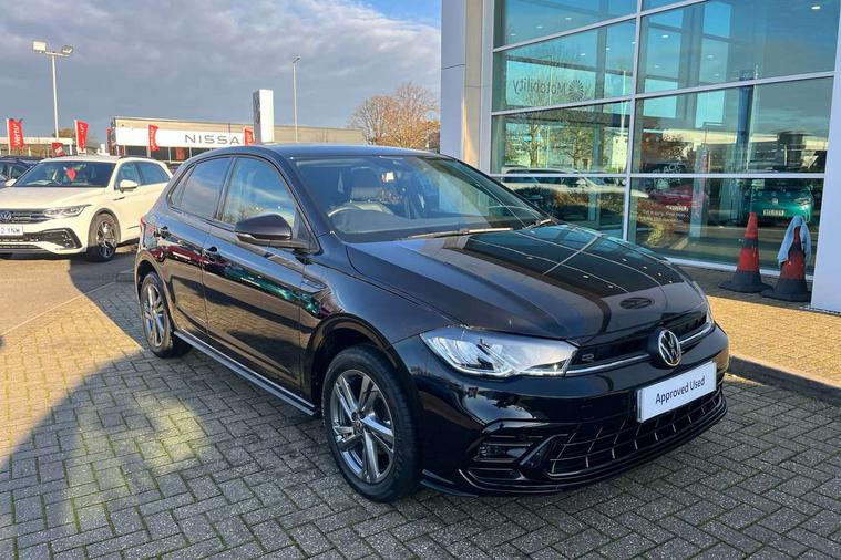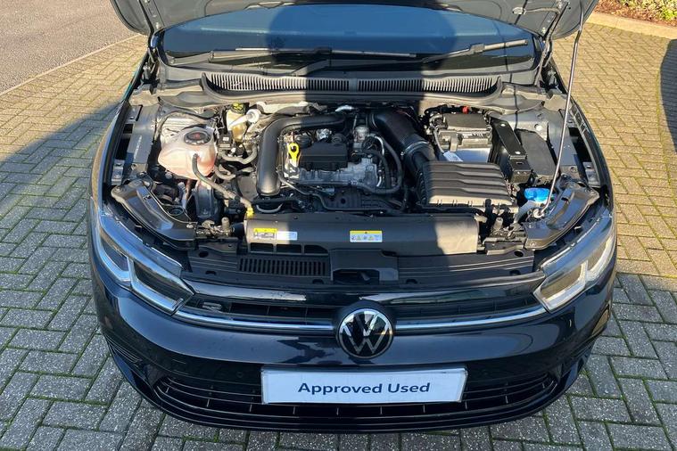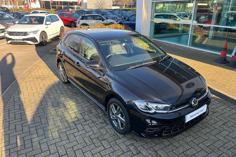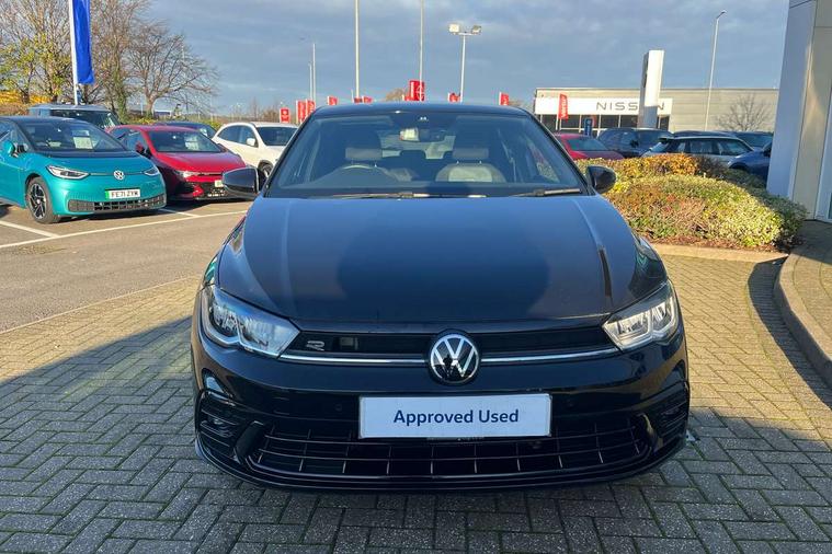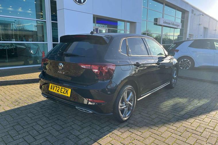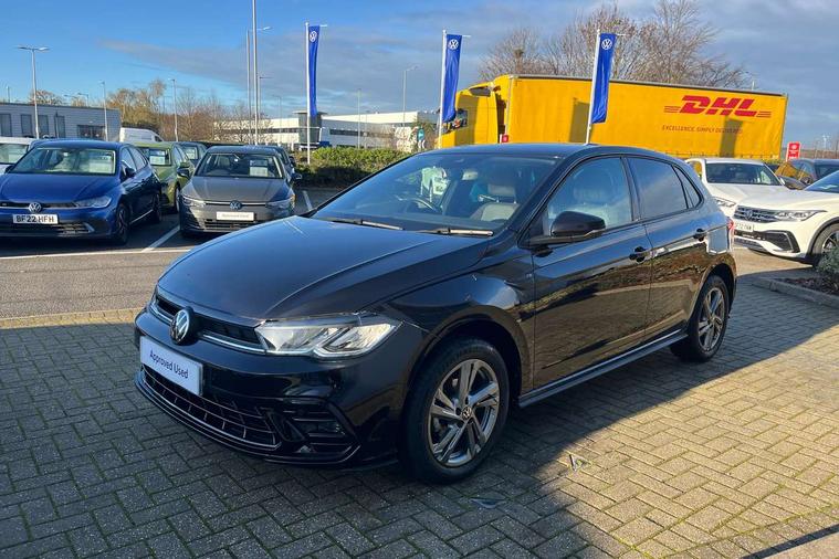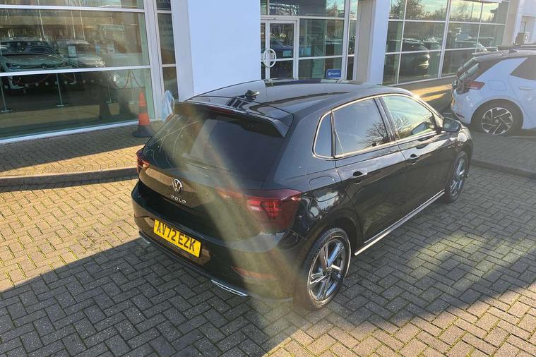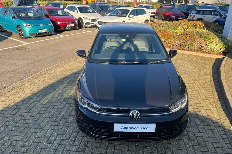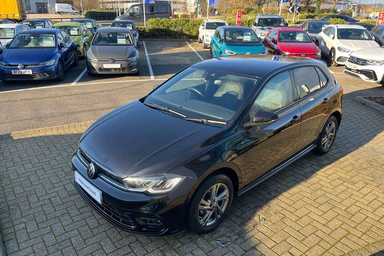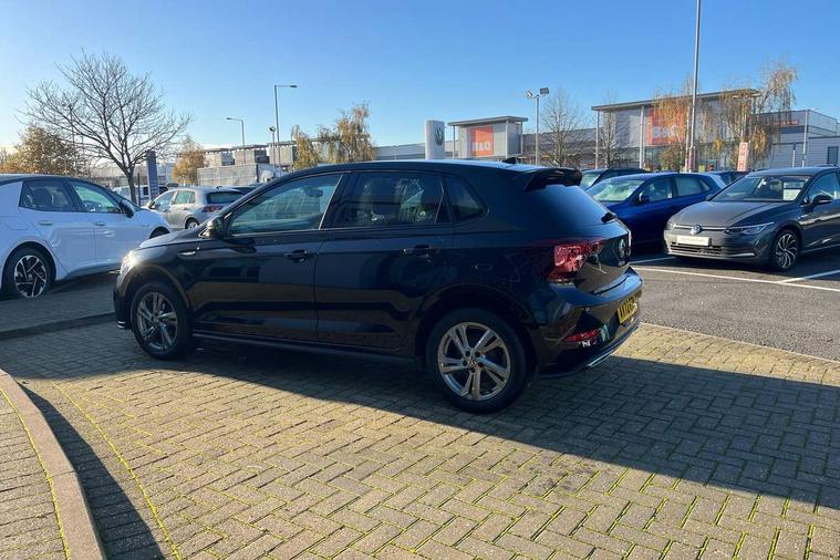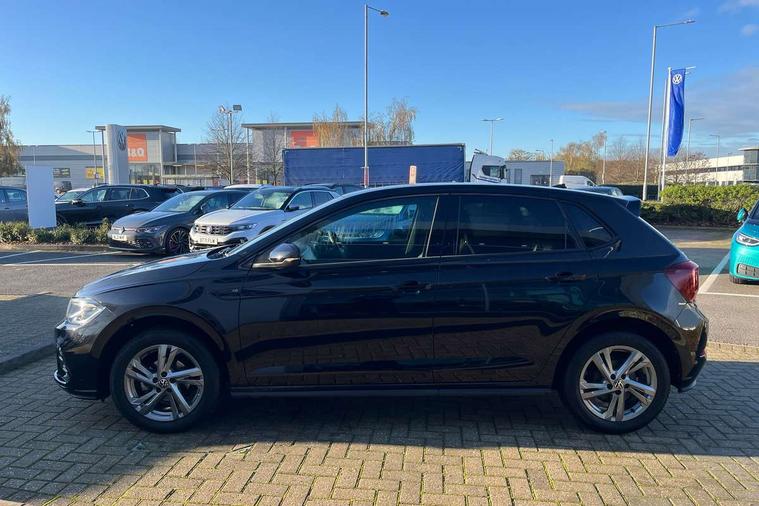 Adaptive cruise control without follow-to-stop and speed limiter, Bluetooth mobile phone interface, Digital Cockpit Pro with 10.25" Display, Driver alert system, Dynamic road sign display, Emergency call service, Power assisted speed sensitive steering, Preparation for We connect and We connect plus, Speedo and rev counter, electronic odometer, trip, service interval display and fuel gauge, Standard rear axle, Travel Assist - Lane keeping system and traffic jam assist, Travel assist including emergency assist, Trip computer, Warning signal and warning light for front and rear seatbelts not fastened, Washer fluid level indicator, Wireless app connect, Front wheel drive, Rear shock absorpion, Start-stop system with battery regeneration (recuperation - energy recovery during braking), DAB Digital radio, Diversity antenna for FM reception, Front and rear 6 speakers, Body colour bumpers, Body colour door handles, Body colour door mirrors, Electric front windows, Front scuff plates with R-Line logo, Heat insulating darkened glass in side and rear windows, Heat insulating glass windscreen, Power folding adjustable/heated exterior mirrors and front passenger exterior mirror lowering function, Rear electric windows, Rear fog light, Rear side wing doors, Rear tinted glass from B-pillar backwards approx 65% tinted, Rear windscreen washer and wiper with interval delay, Third brake light, 12V power socket in centre console, 2 USB-C ports in the front, 2 USB-C charging sockets on the center console in the rear, 3 rear head restraints, 60/40 split folding rear seat and rear seat bench not split, Air care climatronic air conditoning system with active combination filter and 2-zone temperature control, Black roof lining, Ceramique headliner, Chrome plated radiator grille inserts, air vent surrounds and light switch surrounds, Door and side trim panel, Driver and front passenger seat height adjustment, Driver/passenger sunvisors with illuminated vanity mirrors, Front + rear carpet mats, Front centre armrest, Front footwell illumination, Front seat backrest storage pockets, Front sports comfort seats, Handbrake lever handle in leather, Isofix child seat preparation easy-fit (for two outer rear seats, and front passenger seat) compatible with I-size, Karoso artvelours cloth upholstery, Leather trimmed gear knob, LED interior light with switch off delay and dimmer, 2 reading lights front and rear, Luggage compartment cover, Luggage compartment floor, Luggage compartment lighting, Lumbar adjustment for front seats, Multifunction steering wheel, Single front passenger seat, Stainless steel pedals, Standard pedal cluster, Light and sight pack - Polo R-Line/Black Edition, 3 point height adj front seatbelts + pretensioners, 3x3 point rear seatbelts, ABS, Driver and front passenger airbag with front passenger airbag deactivation, Drivers and front passengers safety optimised head restraints, ESC (Electronic stability control) + EDL (Electronic Differntial lock) and ASR (Traction control), Extended and predictive pedestrian/ cyclist protection, Front curtain and side airbags with center airbag, Hill hold control, Manual child lock in rear doors, Single tone horn, Tyre pressure loss indicator, Alarm with interior protection, Anti-theft alarm system with interior monitoring, backup horn, and towing protection, Anti-theft wheel bolts, Electronic engine immobiliser, Chrome applications on rotary light, mirror adjustment, window regulator switches, outlet with frame in black, Dark grey anodised matt decorative inserts in dash and front door panels, Low rolling resistance tyres,