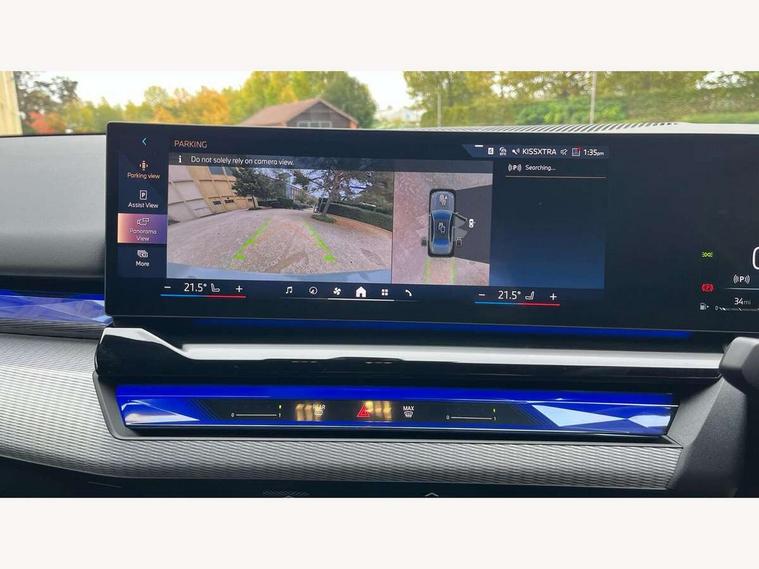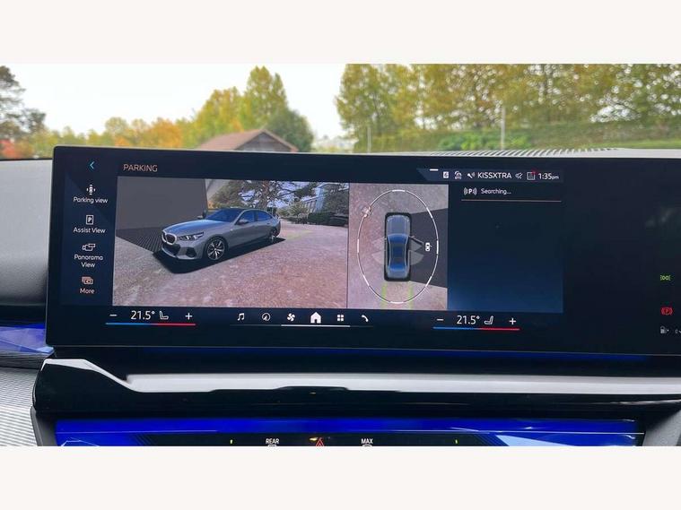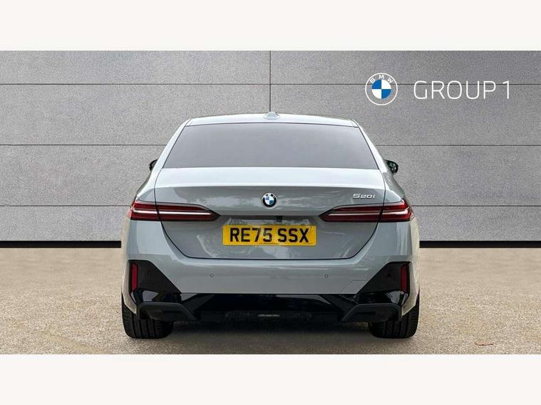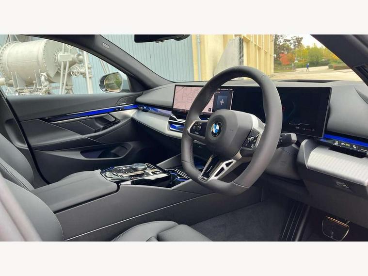 BMW ConnectedDrive online services, BMW legal emergency call, BMW Teleservices, Brake pad wear indicator, Cruise control with brake assist, Driving Assistant Plus Preparation, Front collision warning with brake intervention, Lane departure warning with active return, Left turn warning with brake function, Multifunctional instrument panel, Oil sensor for level and grade, On board computer inc. average speed, fuel consumption, liquid crystal Info display, journey computer, outside temperature display, personal profile, On-board diagnosis - OBD, PAS, Personal e-SIM, Powered by Operating System 7.0, Run flat indicator, Service interval indicator, Speed limit Info with manual speed limit assist, Stop/start button, 8 speed automatic steptronic transmission with gearshift paddles, DAB tuner, Acoustic glazing, Adaptive LED Headlights, Automatic cornering lights, Automatic windscreen wipers and automatic headlight, BMW selective beam, Body colour door handles, Body coloured bumpers, Dynamic brake lights with LED technology, Electric adjustable door mirrors, Electric front and rear windows with fingertip open/close + anti-trap facility and comfort closing function, Follow me home headlight function, Headlight elements in blue, Heated windscreen washer jets, LED daytime running lights, LED third brake light, Light colour close to that of ordinary daylight, Optimum, homogeneous illumination of the road, Rear boot, Rear side wing doors, 2 zone automatic air conditioning, 3 seat bench in 2nd row, 3 spoke leather M steering wheel in BMW M specific design with M badge, Armrest - front and rear integrated door trim, centre console includes storage compartment, rear centre includes 2 cupholders, Child seat ISOFIX attachment with rear outer seats includes top tether, Coat hook on upper B-pillar panel, Electric adjustable steering column, Electrically adjustable lumbar support for driver and front passenger, Heated driver and front passenger seats, High-gloss black door switch cluster, power window switch and tailgate button on first and second row seat, M Anthracite headlining, M Sport pedal covers in stainless steel, Rear headrests, Single front passenger seat, Through loading system with 40/20/40 rear seat backrest split, Velour floormats, Wireless charging tray, Ambient lighting pack - 5 Series/I5, Connected package professional - 5 Series/I5, Driving assistance pack - 5 Series/I5, Expanded exterior mirror package - 5 series/I5, M high gloss shadow line pack - 5 Series/ I5, M Sport exterior styling pack - 5 Series/I5, 3 rear three point seatbelts, Active protection, Airbag deployment is controlled with respect to the intensity and scope, Anti-lock braking system (ABS), Brake assist, Brake energy regeneration, Cornering brake control (CBC), Crash sensor activating central locking release, hazard warning lights, fuel cut off and interior lighting, Driver and front passenger airbags, Driver central airbag, Driver/front passenger side airbags, DSC - Dynamic Stability Control, Dynamic brake control, Dynamic Traction Control - DTC, Electromechanical parking brake with automatic drive away release and auto hold function, Electronic brake force distribution, Engine drag torque control, Front and rear brake discs with interior ventilation, Front and rear curtain airbags, Front head restraints with anti-whiplash, Head airbags for first and second row seats, Hill start assist, Locking of doors after driving off, M Sport brake in blue high gloss painted brake callipers with monochrome logo on front calliper, Mechanical child proof lock on rear doors, PC iBrake PostCrash approach control warning with light braking function, Side impact protection, Trailer stability control, Two tone horn, Tyre pressure monitoring system, Warning triangle and first aid kit, Alarm system, Locking wheel bolts including wheel bolt adapter, Tyre repair kit plus,