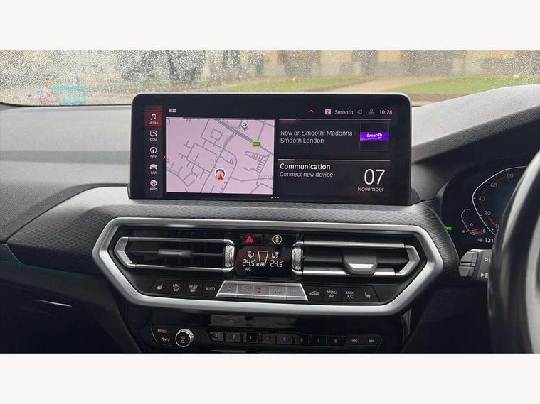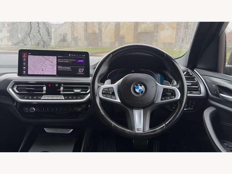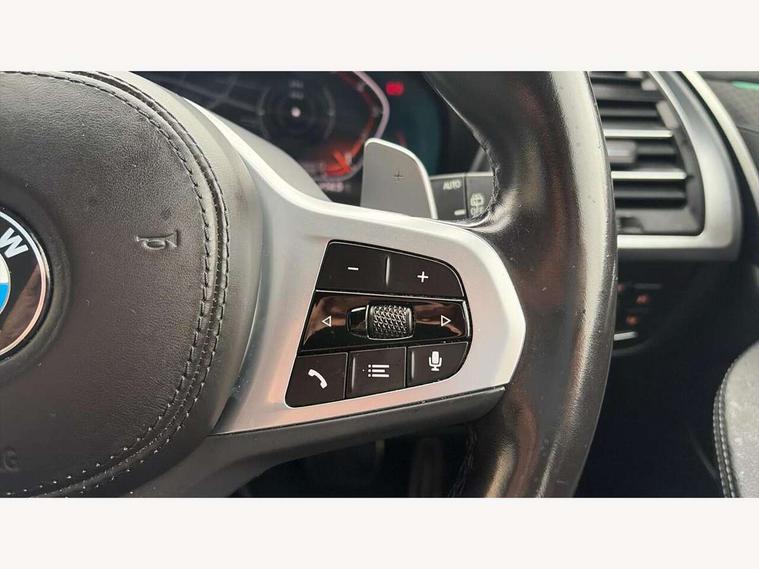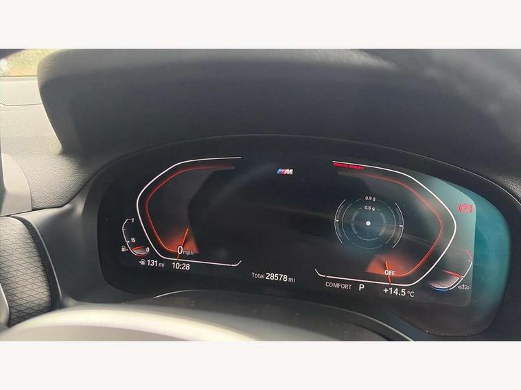 Active Guard, Attentiveness assist, BMW Live Cockpit Professional nav system including 12.3" instrument display + 12.3 high resolution control display, BMW Online services, BMW Teleservices, Brake pad wear indicator in front and rear, Check Control warning system for monitoring of lights and door/luggage compartment open warning, Condition based service - BMW service history, electronic service booklet, integrated owner's handbook, Connected drive services, Cruise control with brake function + speed limiter, Electric boot lid, Front/rear Parking distance control, iDrive Controller with 8 favourite buttons, Instrument cluster with speedometer with mph readout, tachometer, fuel gauge and oil temperature gauge, Lights on warning by audio warning signal when ignition is switched off, Oil sensor for level and grade, warning by check control system, On board computer - average speed+fuel consumption, service interval, clock/date, odometer/trip meter, outside temperature display and ice warning, Optimum shift indicator, Personal Profile - automatic lock when driving away selectable, Run flat indicator, Stop/start system, Variable sports power steering with drive performance control Sport+ mode, Automatic transmission with gearshift paddles, Incorrect fuelling protection, M sport suspension, Multi-link rear suspension, Performance Control, BMW professional radio/CD/MP3, DAB tuner, Acoustic glazing, Automatic windscreen wipers and automatic headlight, Black finish on B pillars, Body colour door handles, Body colour electric adjust heated aspherical door mirrors, Body colour roof mouldings, Body coloured bumpers, Direction indicator, side repeaters, integrated in exterior mirrors, Dynamic brake lights, Exhaust tailpipes - dual, round, split left and right with chrome finisher, Fingertip control / anti-trap function on electric window, Folding wing mirrors with auto dimming, Follow me home headlights, Front and rear bumper system with replaceable deformation elements, Front and rear electric windows, Gloss chrome tailpipes finishers, Green tinted heat insulating glass, Heated windscreen washer jets, High beam assistant, High gloss black shadow line roof rails, High gloss shadowline exterior trim in decorative moulding side frame/recess cover/guide rail/B, C pillars/mirror frame and triangle with mirror base, High level 3rd brake light incorporating LED Technology, Interior rear view electrochromatic mirror with automatic anti dazzle function, LED tail lights, Lightweight engineering, M aerodynamic bodystyling, M Sport entry door sill strips, Model designation, Rear side wing doors, Rear wing door, Rear wiper, Shark fin antenna, Side exterior M designation badges, Visible VIN plate, Welcome lighting, Windscreen wipers with adjustable interval, 12V power socket in front centre console, 3 rear headrests, 3 seat bench in 2nd row, 3 zone automatic air conditioning, 4 lashing points to secure luggage, 40:20:40 split folding rear seat with loading system, Ambient lighting, Anthracite headlining, Automatic interior light when door is opened/ignition switched off or via remote key, Driver seat backrest width adjustment, Floor mats in velour, Foldable storage floor with compartment, Four grab handles integrated in roof lining, Front and rear bottle holders integrated into door trim storage compartments, Front and rear side armrests integrated into door trim, Front centre armrest with storage compartment, Front footwell lights, Front head restraints, Front passenger seat, Front sports seats, Front/rear courtesy lights with soft on/off dimming, Front/rear reading lights, Heated front seats, Isofix rear child seat preparation, Leather gear knob, Luggage area underfloor compartment, Luggage compartment lighting, M sport leather steering wheel, Multifunction steering wheel, Parcel shelf removeable and storable under boot floor, Reach and rake adjustable steering column, Rear centre armrest with 2 cupholders, Removable / retractable luggage cover, Slope adjustable rear seats, Storage compartment in rear centre console and front/rear door trims, Sun visors with vanity mirrors and ticket pocket, Toolkit located in luggage compartment, Two front cupholders with removable oddments tray/lid, Vernasca leather upholstery, Connected pro pack - X3, Driving assistant pack - X3, ADB - Automatic Differential Brake, Anti-lock braking system (ABS) with brake assist, Automatic Stability Control (ASC), Battery safety cut-off, BMW emergency call, Brake drying, Brake energy regeneration, Braking pre-tensioning, Child locks on rear doors, Cornering brake control (CBC), Crash Sensor - activation of central locking release, hazard warning light and interior lighting, Deactivation of fuel pump in the event of a crash, Driver and front passenger front and side airbags with passenger deactivation and ITS front and rear head airbags, DSC+, Dynamic brake control, Dynamic Traction Control - DTC, Electromechanical parking brake, Hill descent control, Hill start assist, Seatbelt security check for front seats, Side impact protection, Three point seatbelts to all seats with front and outer rear pyrotechnic belt tensioners and seat belt force limiters, Two tone horn, Tyre pressure sensor, Ventilated front and rear disc brakes, Warning triangle and first aid kit, Central locking switch for all doors, fuel filler cap and luggage compartment, Electronic engine immobiliser, Locking wheel nuts, Remote control including two integrated key - one button for open/close all lockable content, windows and separate button for open luggage compartment, Remote control Thatcham category 1 alarm, Start/stop button with Comfort Go keyless engine start and auto Start/stop deactivation button, Low rolling resistance tyres,