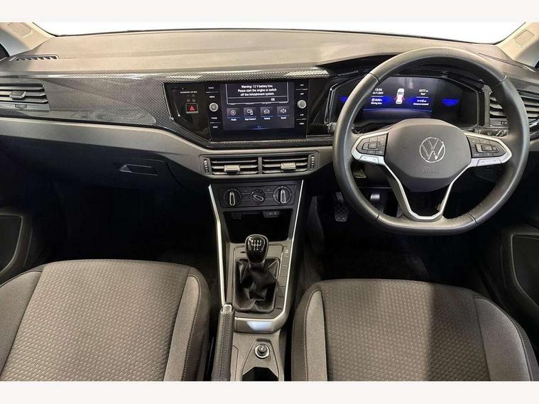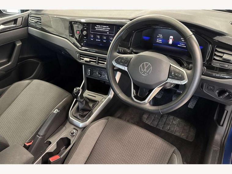 Advanced driver attention and drowsiness monitor, Bluetooth mobile phone interface, Cruise control + speed limiter, Dynamic road sign display, Emergency call service, Lane keeping system Lane Assist, Power assisted speed sensitive steering, Preparation for navigation system with media and internet package, Preparation for We connect and We connect plus, Speedo and rev counter, electronic odometer, trip, service interval display and exterior temperature gauge, Standard rear axle, Trip computer, Warning signal and warning light for front and rear seatbelts not fastened, Washer fluid level indicator, Wireless app connect, Front wheel drive, Rear shock absorpion, Start-stop system with battery regeneration (recuperation - energy recovery during braking), DAB Digital radio, Diversity antenna for FM reception, Front and rear 6 speakers, Automatic dimming interior rear view mirror, Automatic headlight control with LED separate daytime running lights with coming/leaving home function, Body colour bumpers with chrome inserts, Body colour door handles, Body colour door mirrors, Electric front windows, Engine badge deletion, Headlight range adjustment, Heat insulating and laminated safety glass windshield, Heat insulating darkened glass in side and rear windows, Heat insulating glass windscreen, LED Headlights, LED rear combination lamps, Power folding adjustable/heated exterior mirrors and front passenger exterior mirror lowering function, Rain sensor, Rear electric windows, Rear fog light, Rear side wing doors, Rear windscreen washer and wiper with interval delay, Third brake light, 12V power socket in centre console, 2 front and 2 rear reading lights with switch off delay and dimmer, 2 USB-C ports in the front, 2 USB-C charging sockets on the center console in the rear, 3 rear head restraints, 60/40 split folding rear seat and rear seat bench not split, Ceramique roof lining, Chrome plated radiator grille inserts, air vent surrounds and light switch surrounds, Door and side trim panel, Driver and front passenger seat height adjustment, Driver/passenger sunvisors with illuminated vanity mirrors, Front centre armrest, Front seat backrest storage pockets, Front standard seats, Handbrake lever handle in leather, Hartley/Thomas cloth upholstery, Headliner in recycled material, Isofix child seat preparation easy-fit (for two outer rear seats, and front passenger seat) compatible with I-size, Leather trimmed gear knob, Luggage compartment cover, Luggage compartment lighting, Removable luggage compartment floor, Single front passenger seat, Standard climatic zones, Standard pedal cluster, Three spoke leather wrapped multifunction steering wheel, Light and vision pack - Polo, 3 point height adj front seatbelts + pretensioners, 3x3 point rear seatbelts, ABS, Driver and front passenger airbag with front passenger airbag deactivation, Drivers and front passengers safety optimised head restraints, ESC (Electronic stability control) + EDL (Electronic Differntial lock) and ASR (Traction control), Extended and predictive pedestrian/ cyclist protection, Front assist with autonomous emergency braking (for Adaptive Cruise Control ACC up to 130 mph), Front curtain and side airbags with center airbag, Front disc brakes, Hill hold control, Manual child lock in rear doors, Rear drum brakes, Single tone horn, Tyre pressure loss indicator, Alarm with interior protection, Anti-theft alarm system with interior monitoring, backup horn, and towing protection, Anti-theft wheel bolts, Electronic engine immobiliser, Lava stone black gloss/matt decorative inserts in dash and front door panels, Low rolling resistance tyres,