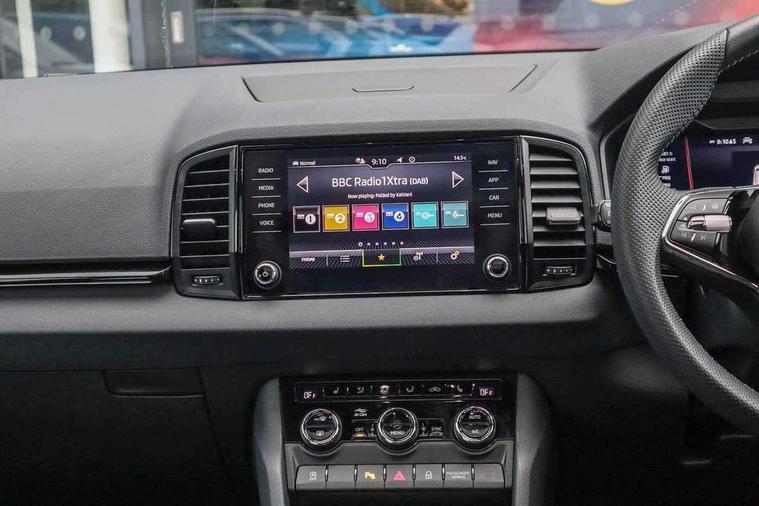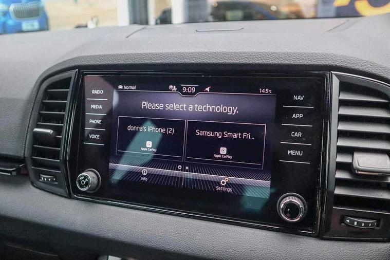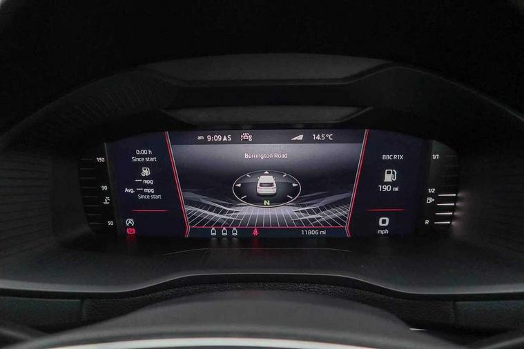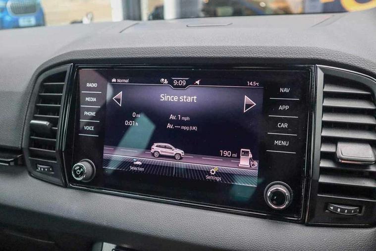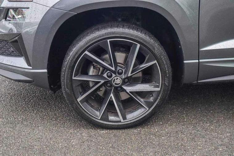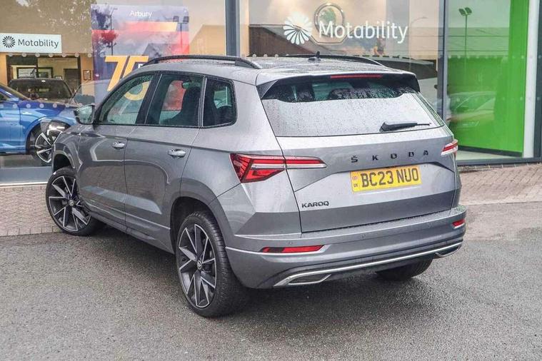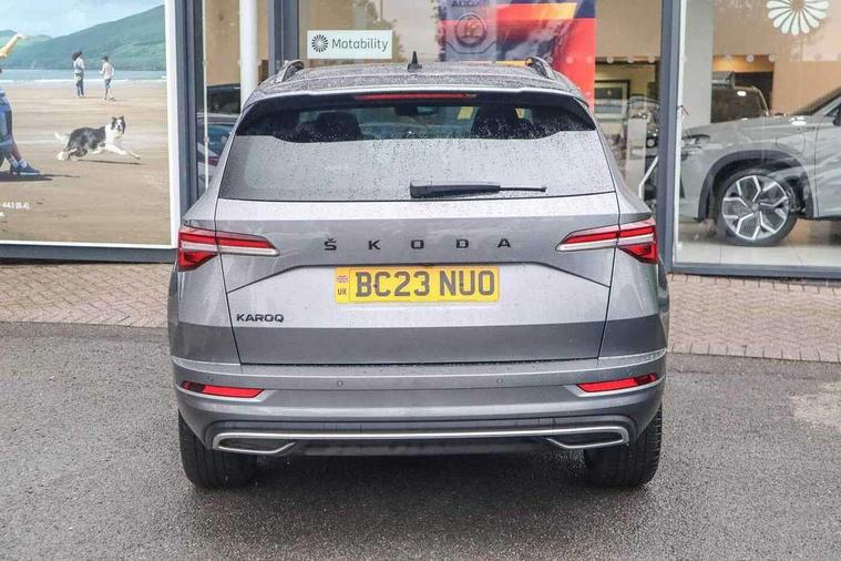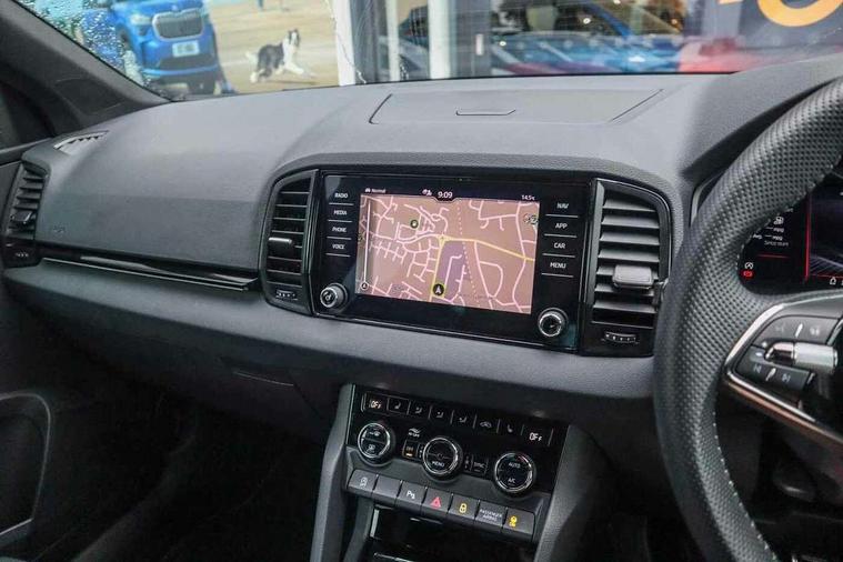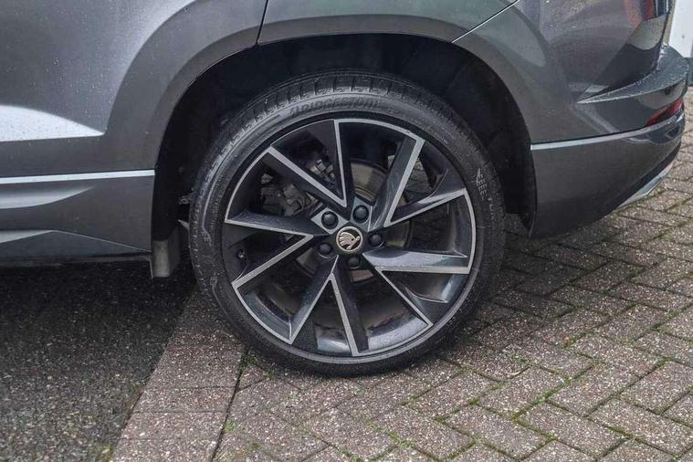 8" Digital display, Care connect, Driver fatigue sensor, Emergency services call system, Outside temperature gauge, Service interval indicator, SmartLink wireless for Apple and wired for Android, Start/stop system with regenerative braking, USB C Port x 2 in front centre console, Virtual cockpit, Virtual pedal with electrically operated boot door, 8 Speakers, DAB radio with Bluetooth, USB connection, Wireless charging without wireless aerial connection, Acoustic glass, Aero front windscreen wipers with intermittent function, Auto dimming rear view mirror with light and rain sensors, Black door mirrors, Black electric window control buttons, Black radiator grille, Black roof rails, Body colour door handles, Electric front and rear windows with child proof lock, Front door steps with SportLine logo, Heated rear windscreen, LED daytime running lights, LED rear lights with high functionality welcome effect and dynamic indicators, Light assistant (coming/leaving home/tunnel light), Panoramic sliding sunroof, Plastic scuff plates, Privacy glass, Protective door side sills in body colour, Rear diffuser, Rear side wing doors, Rear spoiler, Rear window wiper with washer system and intermittent control, Safety reflectors on front doors, Skoda lettering on tailgate in black, Sportline badge on front fender, Sportline decorative inserts with badging, Sports front and rear bumpers, 1.5 litre bottle holders in driver and front passenger door panels, 12V socket in boot, 12v socket in front centre armrest with storage compartment and rear air vents, 3 rear height adjustable headrests, 3 seat bench in 2nd row, 3 spoke leather sports multifunction steering wheel and silver stitching, 4 foldable roof handles with rear coat hooks, Black floor carpet, Black roof headlining, Chrome inner door handles, Double sided boot floor, Foldable hooks in the boot, Front head restraints, Height adjustable front three point seats belts with tensioners, Height/reach adjust steering wheel, Ice scraper, Illuminated glovebox, Illuminated luggage compartment, Isofix child seat preparation outer rear, Manual lumbar support for front seats, Pen holder, Pollen filter, Rear boot cover, Rear reading lights, Rear seats fixed folding and divided 60:40, Rubbish bin door, Safety vest holder, Single front passenger seat, Storage box in upper central dashboard closed, Sunvisors with illuminated vanity mirrors, Textile floor mats, Ticket holder, Titan black interior ceiling, Welcome animation with sportline logo, Boot pack - Karoq, Light Pack - Karoq, Parking pack - Karoq, Automatic door unlocking in case of crash, Automatic fuel cut off in case of crash, Child locks on rear doors, Driver airbag, Electronic parking brake with auto hold function, Emergency rear braking signal, ESC including ABS, MSR, ASR, EDS, HBA, DSR, RBS, MKB and traction control, Front side airbags, Hill hold control, Knee airbags, Passenger airbag with switch-off function, Pedestrian monitor, Seatbelt reminder signalisation and pretensioner for all seats, Three point seatbelts rear, Two tone horn, Tyre pressure display, Tyre pressure monitor, Alarm with interior monitoring, back up horn and tilt sensor with safe function, Electronic engine immobiliser, Keyless entry and start/stop, Remote central locking with 2 remote folding keys, Black air vent surround, Black centre console, Satin black dashboard, Satin black door trim, 19" Sagitarius anthracite alloy wheels with matt black aero inserts, Anti-theft wheel bolts protection, Matt black aero hub caps, Storage on wheel cover, Tool kit,
