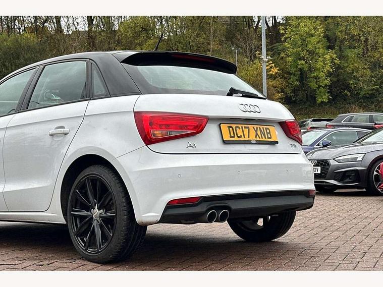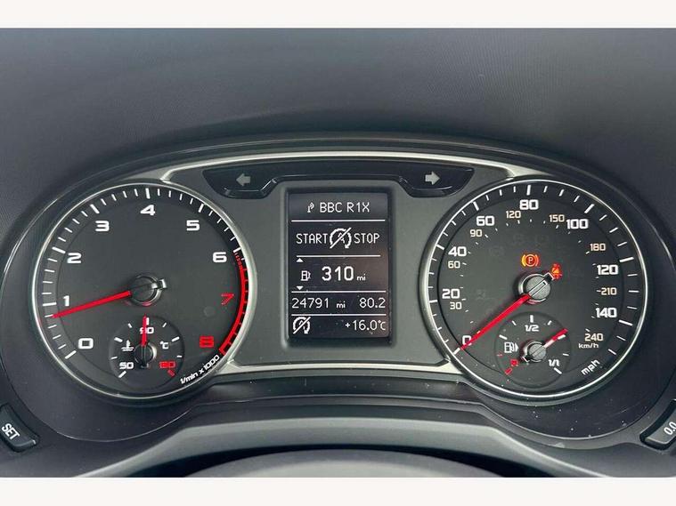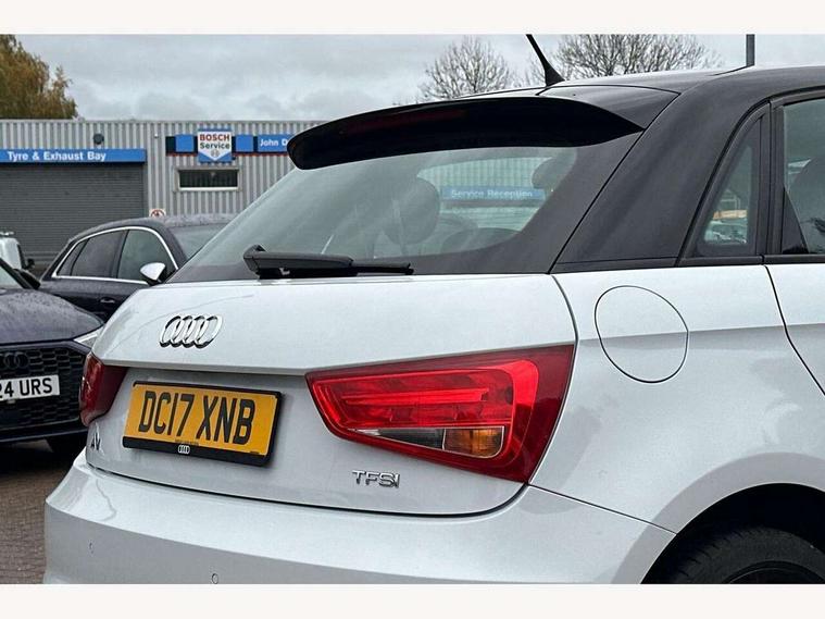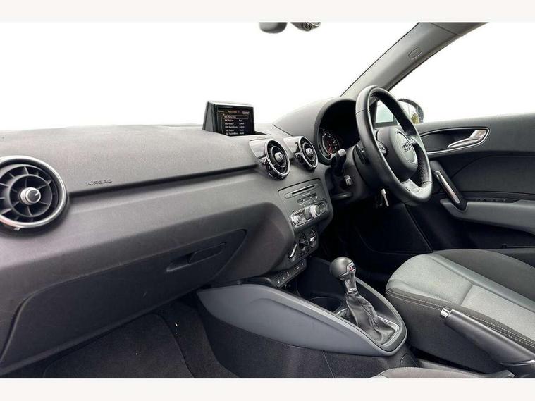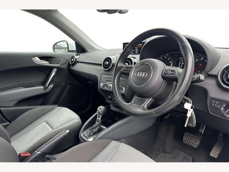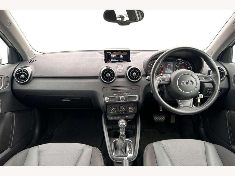 Audi drive select, Electro-mechanical PAS, Low washer fluid indicator, Service interval indicator, Voice control system, Additional SD card reader, Audi music interface, Bluetooth audio streaming, DAB Digital radio, Adaptive brake lights, Electric adjustable door mirrors, Electric front windows, Electric rear windows, Front fog lights, Heat insulating glass, Heated door mirrors, Heated rear windscreen, Rear wiper, 12V Accessory socket in centre console, 3 spoke leather multi-function sport steering wheel including paddle shift, Adjustable rear head restraints, Cupholders in centre console, Door sills trims with aluminium inlays, Front floor mats, Front head restraints, Front sports seats, Height adjustable front seats, Illuminated glovebox, Isofix attachments on outer rear seats, Jack and tool kit, Leather gear knob, Leather handbrake, Lumbar adjustment for front seats, Rake/reach adjustable steering wheel, Split folding rear seats, Connectivity pack - A1, ABS/EBD, Brake assist function, Driver and passenger side airbags, Driver/Front Passenger airbags, EDL, ESP with ASR, First aid kit, Front and rear seatbelt reminder, Front passenger airbag deactivation, Head airbags, Height adjustable front seatbelts, Hill hold assist, Tyre pressure monitor, Warning triangle, Locking wheel bolts, Remote control central locking, Thatcham category 1 alarm + immobiliser, Tyre repair kit,