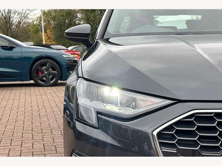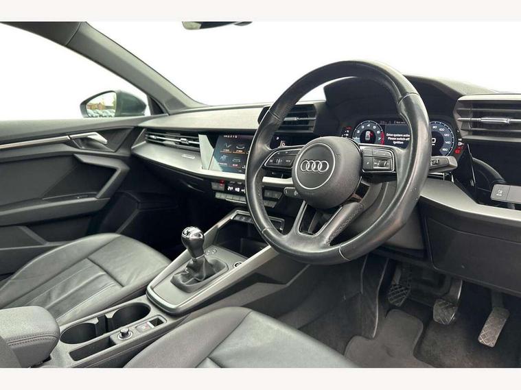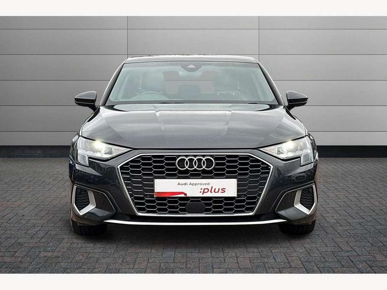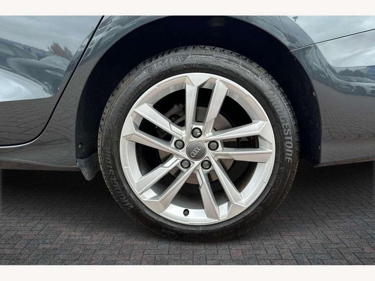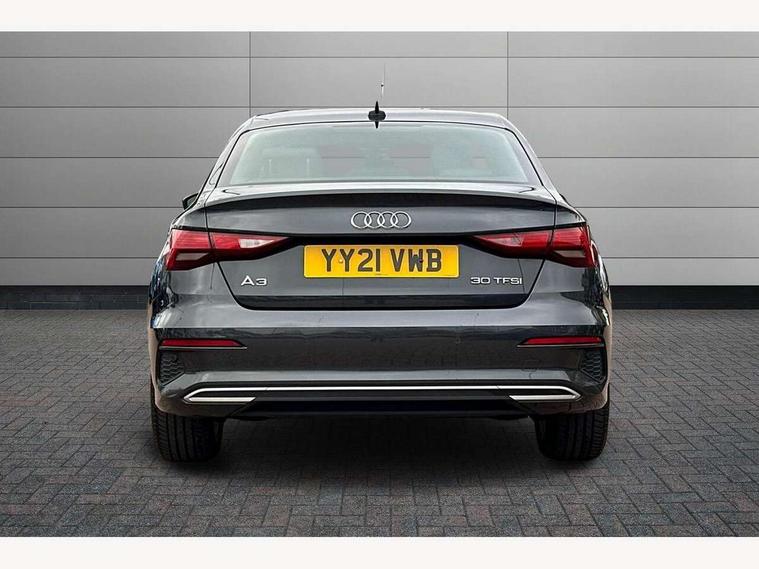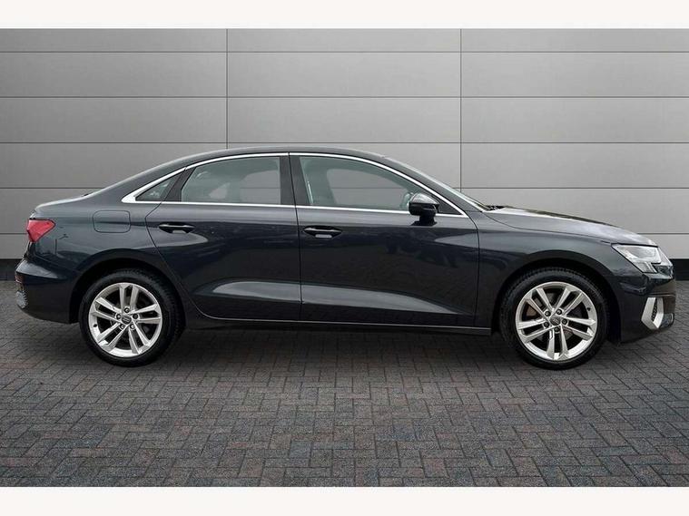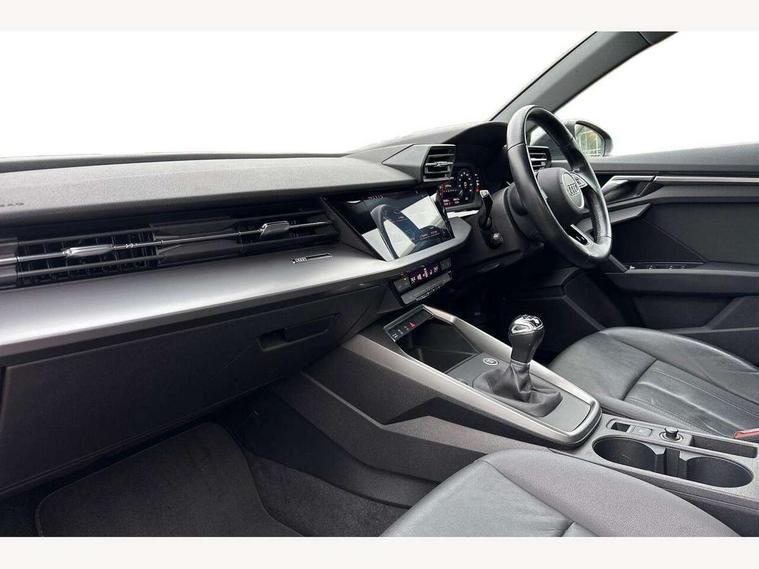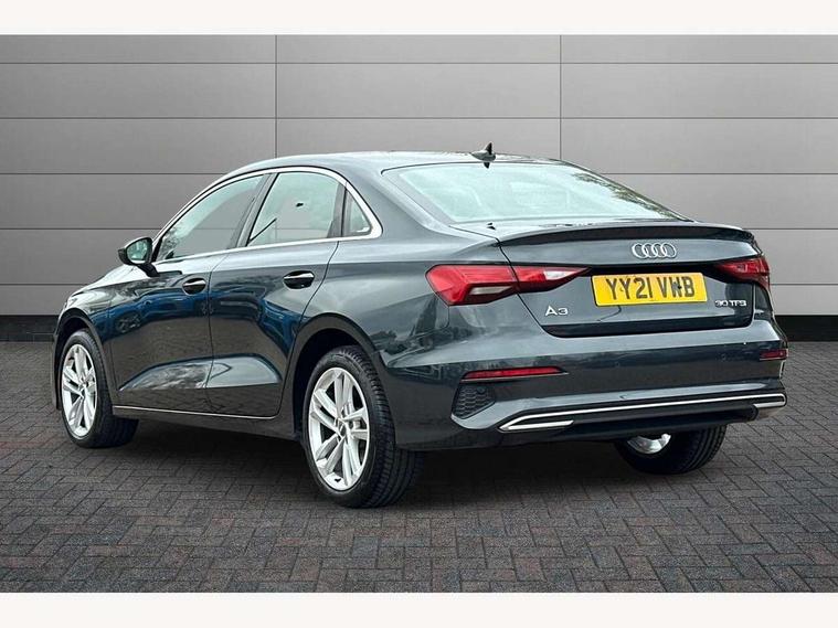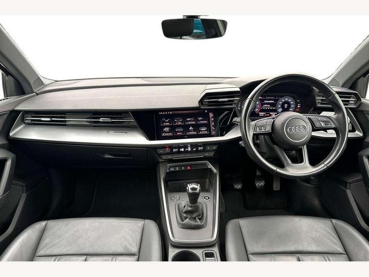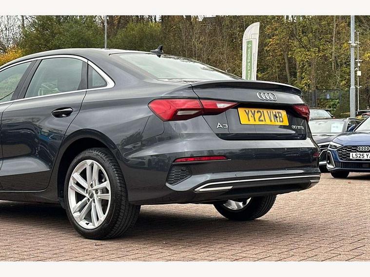 Audi connect emergency call and service, Audi drive select (Auto, Comfort, Dynamic and Individual), Audi smartphone interface, Audi Virtual Cockpit - 10.25" digital and colour instrument cluster, Automatic start/stop system with recuperation, Bluetooth interface, Collision avoidance assistant, Cruise control + speed limiter, Electromechanical power speed sensitive steering, Lane departure warning system, MMI Navigation Plus with high resolution 10.1" colour touch screen display, Rear parking sensors, Service indicator, Voice control system with natural language interaction, Standard suspension, 2x USB Type C ports (for charging and data transfer), 6 passive loudspeakers, CD player, DAB Digital radio, Acoustic glass windscreen, Aluminium window trim, Auto dimming frameless rear view mirror, Body colour exterior mirrors, Body colour roof spoiler, Electrically adjustable/heated/folding/dimming door mirrors with kerb view includes integrated LED indications + kerb view function for passenger side, Front electric windows, LED daytime running lights, Light and rain sensors, Model and engine designation badges at rear, Rear electric windows, Rear window, rear door windows and rear side windows in clear glass, 12V socket and storage compartment in front centre console, 40/20/40 split folding rear seat bench with cupholder, Dual zone electronic climate control, Front and rear headrests, Front centre armrest, Front door sill trims with aluminium inlay, Front/rear floor mats, Height and reach adjustable steering wheel, Interior lighting - Front and rear roof module including reading lights, glove compartment light and right hand side, Luggage compartment floor covering, Manual boot compartment lid, Manually adjustable front seats, Seat side bolsters, Steel grey cloth headlining, Twin leather upholstery, Aluminium interior elements pack - A3 Saloon, Sport styling pack - A3 Saloon, 3x3 point rear seat belts, Driver and front passenger airbag with passenger airbag deactivation, Electronic Stabilisation Control (ESC) including ABS, ASR and EDL, First aid kit with warning triangle and 2 safety vests, Front side airbags with head airbags and interaction airbag, Hill hold assist, Pre-sense front with pedestrian and cyclist detection, Seatbelt monitoring, Tyre pressure loss indicator, Anti theft alarm, Anti-theft wheel bolts, Electronically operated child lock, Immobiliser, Remote control central locking, Aluminium air vent surrounds, Aluminium trim elements, Inlays with silk effect paint in platinum grey,