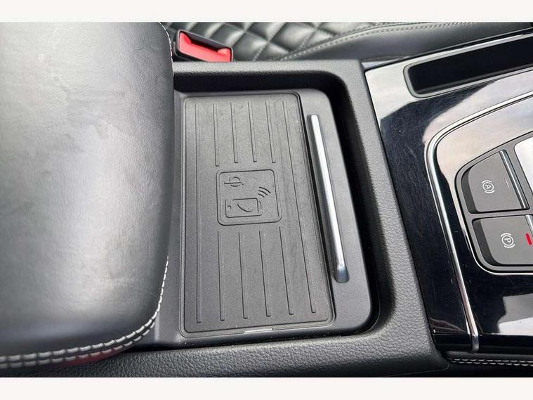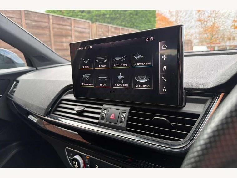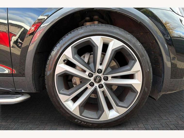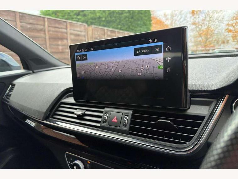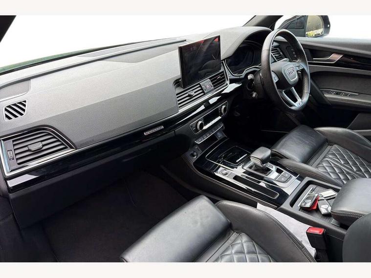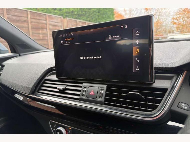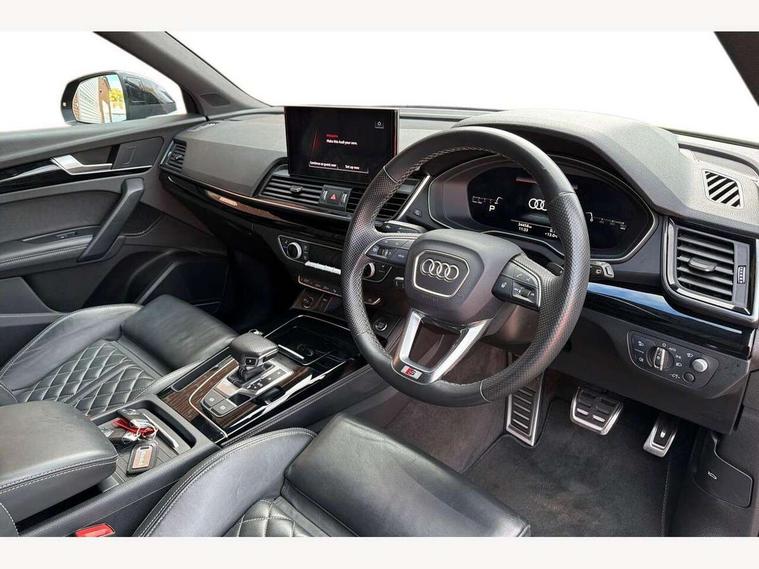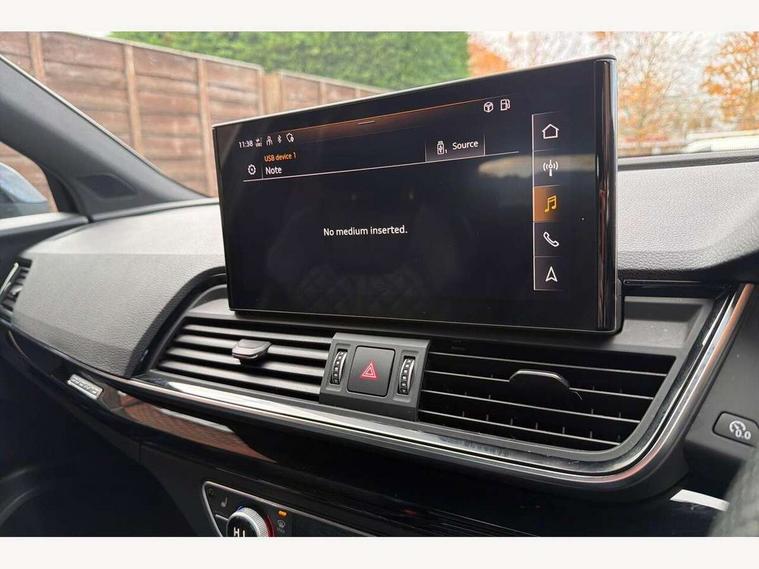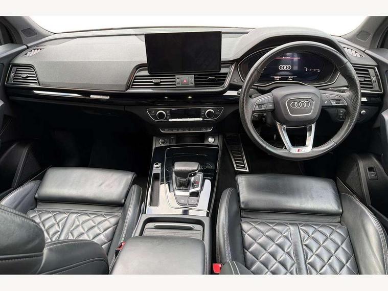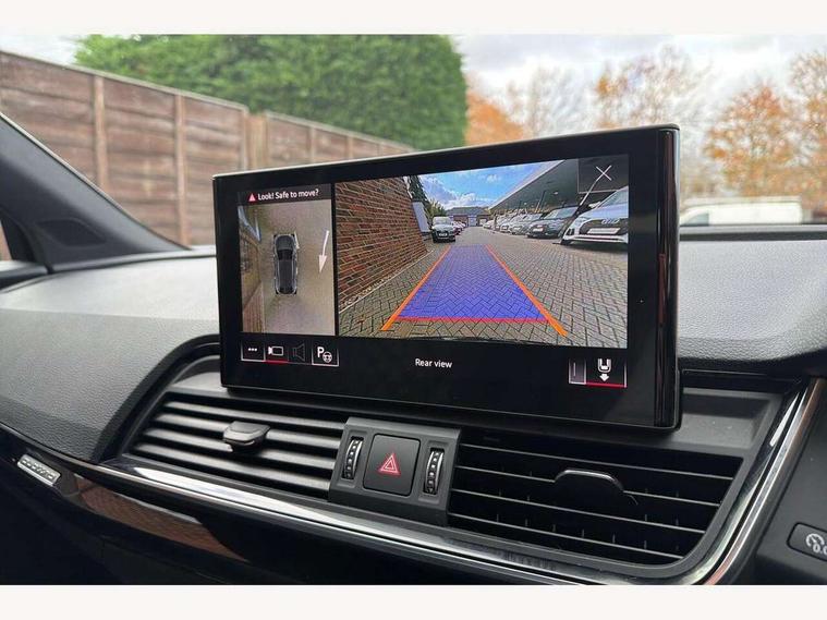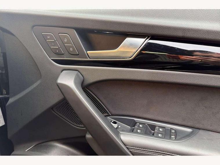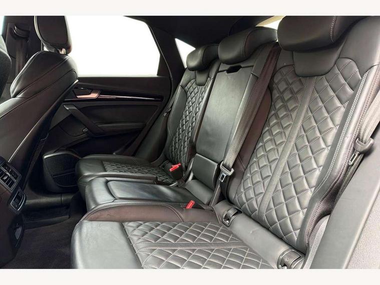 360 degree camera with top view, Advanced key with electric hands free boot opening system, Audi connect safety and service (e-call), Audi connect with Amazon Alexa Integration, Audi drive select, Audi virtual cockpit plus with 12.3" screen and three different layout designs, Audi wireless smartphone interface, Automatic start-stop system with coasting functionality and efficiency programme, Bluetooth interface, Electro - mechanical power assisted steering, Head up Display, MMI navigation plus with 10.1" touch screen, Park assist with parking aid plus, Power tailgate, Service interval indicator, Speed limiter, Voice control system with Audi hotword activation "Hey Audi", 70 litre fuel tank, Adaptive air suspension, Quattro on demand, Bang + Olufsen sound system, DAB Digital radio, Acoustic windscreen, Audi beam with 'Vorsprung' logo, Audi matrix LED headlights with dynamic front and rear indicators, Auto dimming rear view mirror, Automatic headlights and windscreen wipers, Black roof rails, Body colour underbody protection, Chrome plated exhaust trims, Door sills in Selenite silver, Electric adjustable/heated/folding door mirrors, Electric panoramic glass sunroof, Front air inlet surrounds in aluminium, Front and rear electric windows, Gloss black finish for Audi rings and SQ5 logos, Headlight washers, High gloss black B pillar trims and triangular rear door trim, Lower bumpers painted in contrast Manhattan grey, Rear chrome trim strip below lights, Rear privacy glass and rear side windows, Rear spoiler, Rear wiper, Roof bars, Running boards, 2 x USB charging port with aux input socket, 3 rear headrests, 3 spoke heated leather multi-function steering wheel, 4 way electric lumbar support for driver and front passenger, 40:20:40 split folding rear seat with rear centre armrest, Black cloth headlining, Comfort front centre armrest, Contrast stitching on seats, steering wheel and gear lever gaiter, Deluxe 3 zone electronic climate control, Electrically adjustable front seats with driver memory, Fine Nappa leather upholstery with diamond pattern contrast stitching + front sport seats with S embossed logo, Front head restraints, Front/rear floor mats, Gear lever in black leather, Heated front and outer rear seats, Illuminated door sill trims with S logo, ISOFIX child seat mounting and top tether, Massage function for front seats, Rear seat bench plus, Removable luggage compartment floor, Stainless steel pedals, Sunvisors with vanity mirrors, Trunk roller cover, Black styling package - Q5, City Assist pack - Q5, Extended interior upholstery pack - Q5, Extended LED Interior multi coloured Lighting Pack - Q5, Tour pack - Q5, 3 point seatbelts on all seats, 6 airbags - Driver, front passenger, curtain and side airbags, Electrically operated child locks on rear doors, Electromechanical parking brake, Electronic stabilisation control including ABS, ASR and EDL, Front passenger airbag deactivation, Hill descent control, Hill hold assist, Multi collision brake assist, Pop-up bonnet for pedestrian protection, Pre sense city, Seat belt force limiter, Seatbelt monitoring, Tyre pressure warning, Warning triangle and first aid kit, Anti theft alarm, Anti-theft wheel bolts, Keyless Go access/ignition system, Piano black finish inlay,