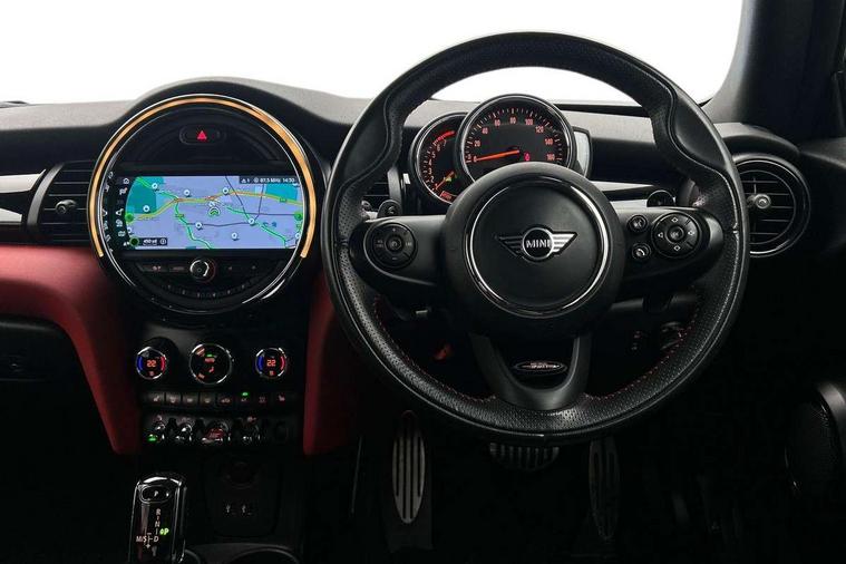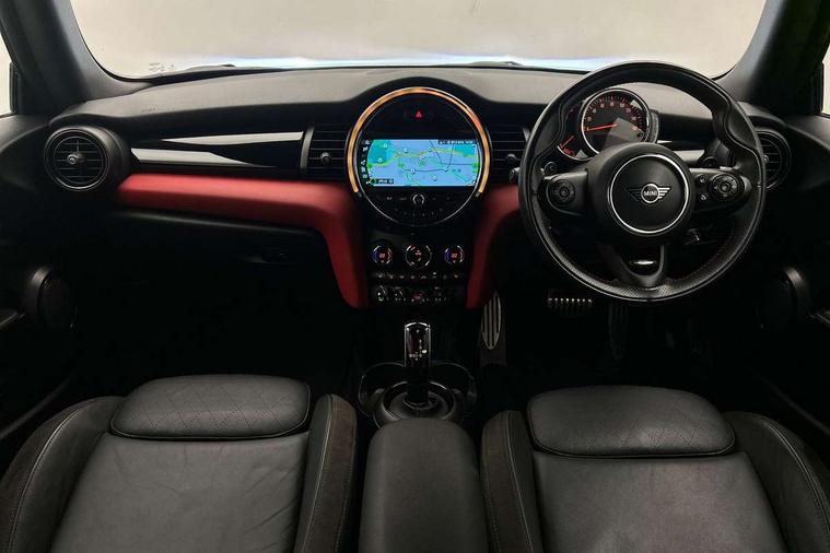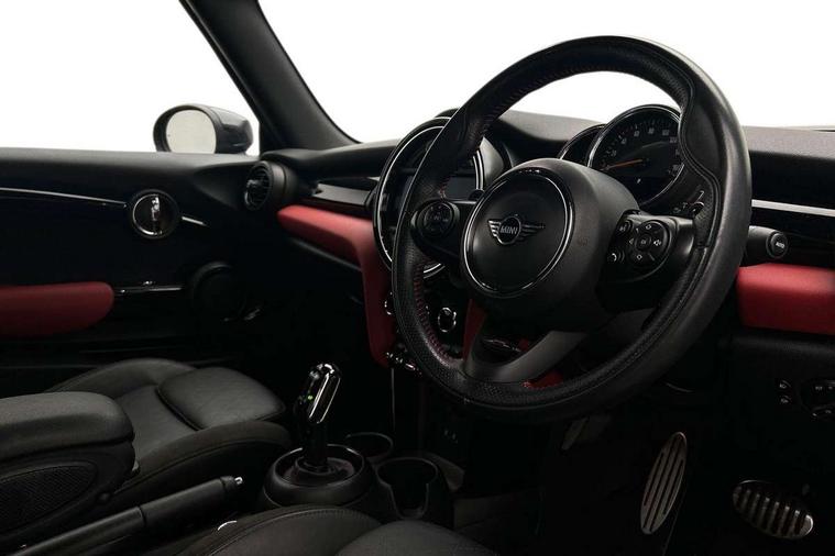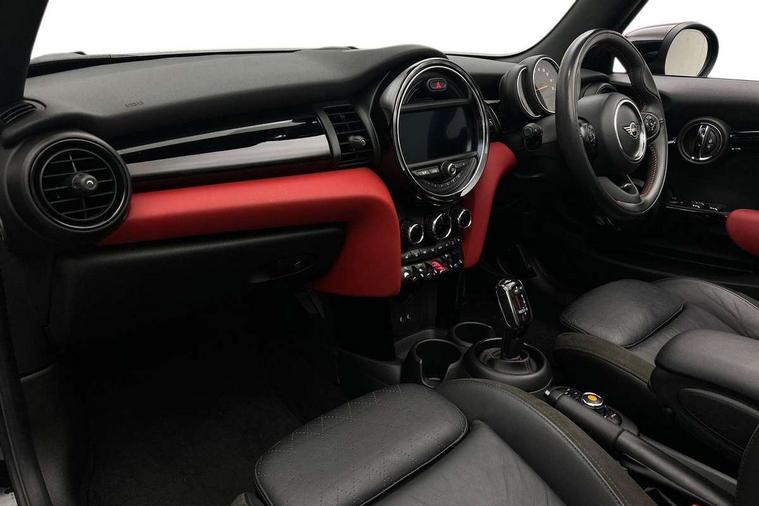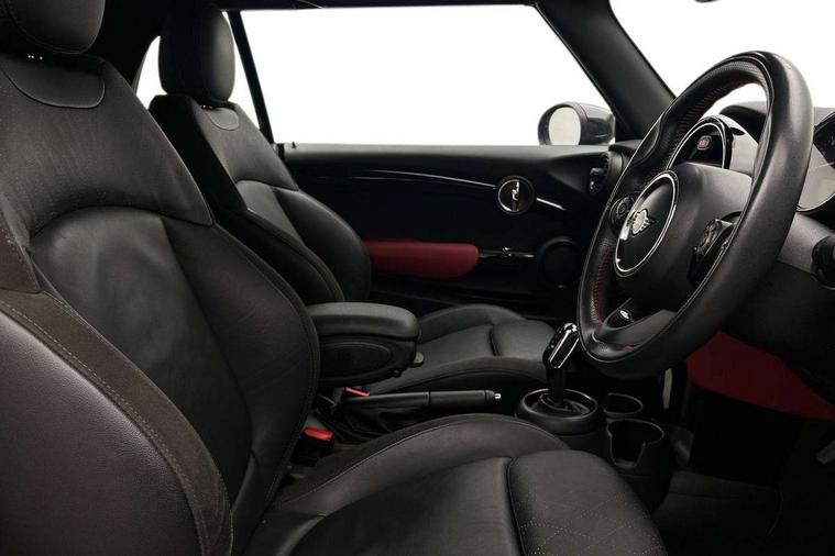 Automatic start/stop function with brake energy recuperation, Compatible mobile phone bluetooth with audio streaming, Electro-mechanical speed dependant steering assistance, Instrument cluster, Mini E-call, MINI TeleServices, On board computer, Rear park distance control, Service interval indicator, Double Vanos system, Fully variable valve control, High precision injection, Performance Control, Steptronic sport transmission with double clutch and steering wheel paddles, 6.5" touchscreen with LED ring, FM tuner and DAB digital radio, Automatic headlight activation switch, Bonnet scoop, Chrome border honeycomb structure radiator grille with S badge, Chrome plated fuel cap, Dynamic brake lights, Electric windows, Fully electric black softtop with integrated sunroof functionality, Heated rear window, Heated windscreen washer jets, John Cooper Works - aerodynamic kit (front and rear apron, spoiler), front and rear sport bumpers and part-painted side sills with door sill finishers, LED headlight with closed ring and daytime driving lights, Metal door sill strips with Cooper S imprint, Model logo Cooper S on right of tailgate, Rain sensor window wipers, Rear fog lights, Rear LED lights with union jack design, Side scuttle panel with integrated indicator, Sun/heat protection glass, Two central exhaust tailpipes with chrome finisher, White indicator lenses, 12V Accessory socket in centre console, 4 lashing eyes in luggage compartment, 50/50 split folding rear seats, Chrome interior highlights, Cupholders, Easy Load boot handles, Front and rear isofix with front passenger airbag deactivation, Front seatback storage pockets, Glove compartment, Height and length steering column adjustment, Interior lighting with 12 basic colours selectable via toggle switch in roof, John Cooper Works perforated leather steering wheel with contrast stitching in chilli red and John Cooper Works logo, Leather gearshift lever and handbrake gaiters, Leatherette integrated headrest, adjustable thigh support with john cooper works logo, LED reading lights, vanity mirror lights, front foot well light and spotlight on front seats, Manual air conditioning, Mechanical seat adjustment, driver seat height adjust, forward/back and front seats backrest, Mini logo projection on floor from drivers exterior mirror, Multifunction steering wheel, Rear head restraints, Storage compartments in doors, Sunvisors with vanity mirrors, 3 point seatbelts on all four seats, 6 Airbags - front, side and seat belt tensioners, Active rollover protection, Anti-lock braking system (ABS), DSC - Dynamic Stability Control, Front and rear disc brakes, Hill start assist, Two tone horn, Tyre pressure monitoring system, Alarm system with tilt sensor, monitoring doors, bonnet interior and tailgate, Electronic vehicle immobiliser, Keyless Go, Tool kit,