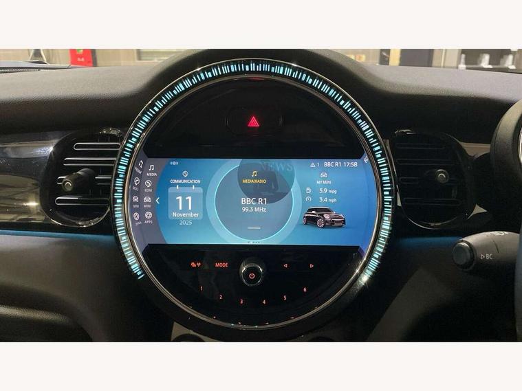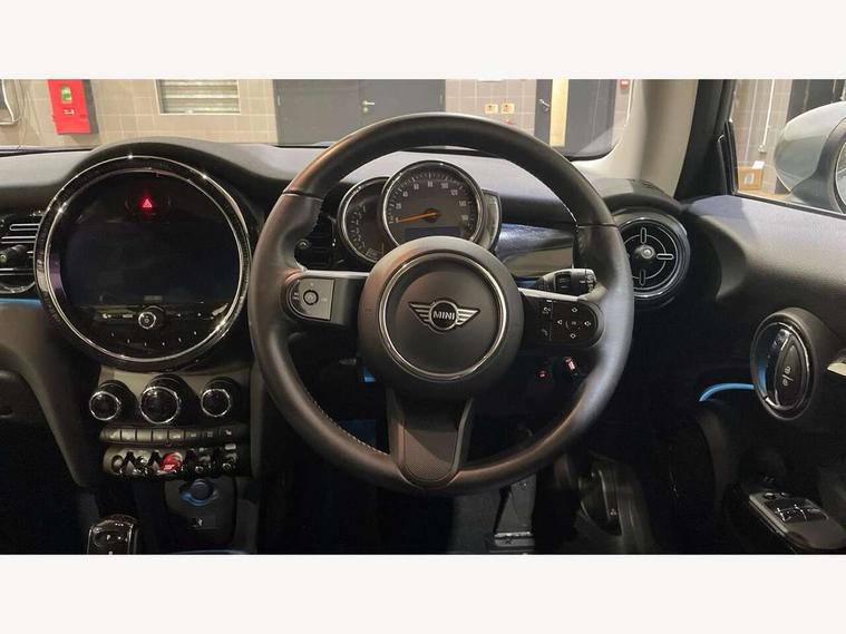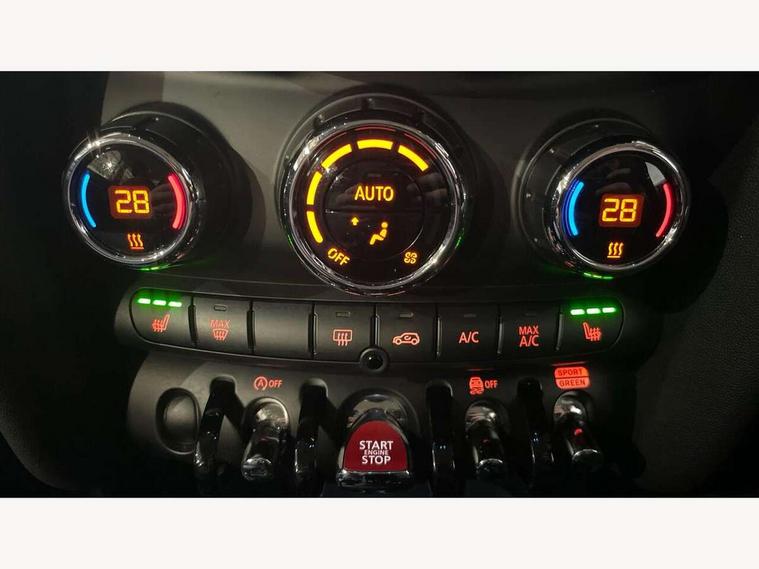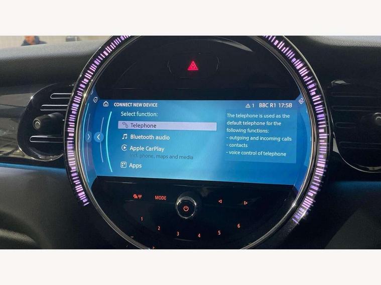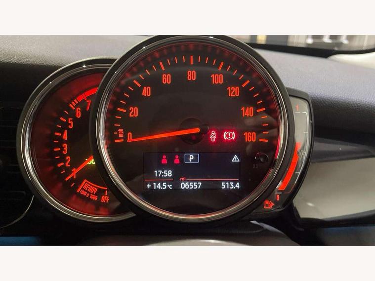 Apple CarPlay, Automatic start/stop function with brake energy recuperation, Compatible mobile phone bluetooth with audio streaming, Cruise control with brake assist, Electro-mechanical speed dependant steering assistance, Flexible car sharing preparation, Instrument cluster, Mini E-call, MINI TeleServices, On board computer, Service interval indicator, Double Vanos system, Fully variable valve control, High precision injection, Performance Control, Steptronic transmission with double clutch, 8.8" touchscreen with LED ring, FM tuner and DAB digital radio, 3rd brake light, Automatic headlight activation switch, Body colour fuel filler cap, Chrome border high gloss black slats radiator grille, Dynamic brake lights, Electric front windows, Exhaust tailpipe on left with chrome finisher, Heated rear window, Heated windscreen washer jets, LED headlight with closed ring and daytime driving lights, Metal door sill strips with MINI imprint, Model logo Cooper on right of tailgate, Rain sensor window wipers, Rear fog lights, Rear LED lights with union jack design, Rear window wiper, Side scuttle panel with integrated indicator, Sun/heat protection glass, White indicator lenses, 12V Accessory socket in centre console, 2 seat bench in 2nd row, 4 lashing eyes in luggage compartment, 60/40 split folding rear seat, Ambient lighting, Carbon black colour line - Knee roll and door armrest, Chrome interior highlights, Cupholders, Front and rear head restraints, Front and rear isofix with front passenger airbag deactivation, Front floor mats in velour, Glove compartment, Height and length steering column adjustment, Interior lighting with 12 different colours across the dashboard, underneath door bezel with illuminated laser-engraved design on central display, Leatherette gearshift lever and handbrake gaiters, LED reading lights, vanity mirror lights, front foot well light and spotlight on front seats, Manual air conditioning, Mechanical seat adjustment - forward/back & backrest for front seats and driver seat height adjust, Multifunction steering wheel, Passenger seat height adjuster, Satellite grey headlining including grab handles and clothes hooks, Single front passenger seat, Sport leather steering wheel with speed limiter and audio/communication controls, Storage compartments in doors, Sunvisors with vanity mirrors, 3 point seatbelts on all four seats, 6 Airbags - front, side, head and seat belt tensioners, Anti-lock braking system (ABS), DSC - Dynamic Stability Control, Front and rear disc brakes, Single tone fanfare horn, Tyre pressure monitoring system, Alarm system with tilt sensor, monitoring doors, bonnet interior and tailgate, Electronic vehicle immobiliser, Start/stop toggle with keyless go, Piano black interior trim, Tool kit, Tyre repair kit,