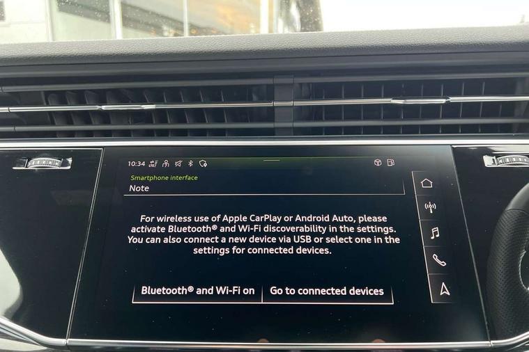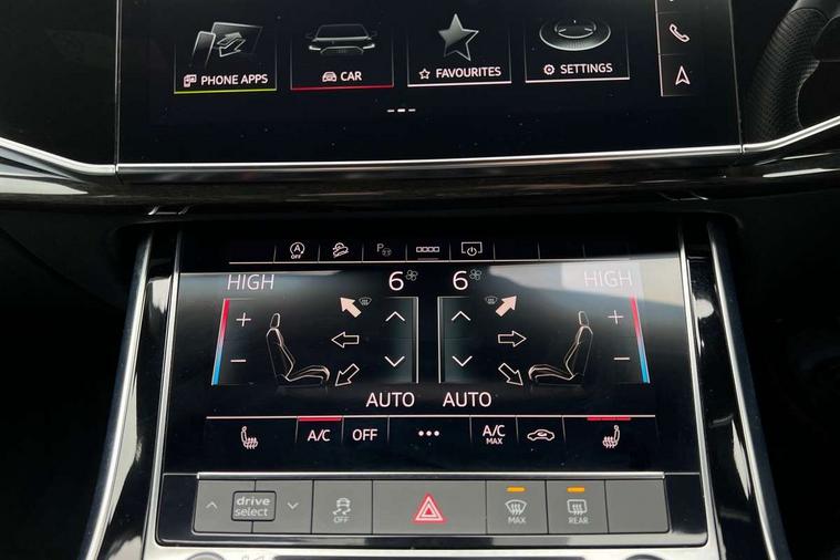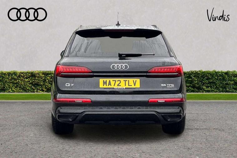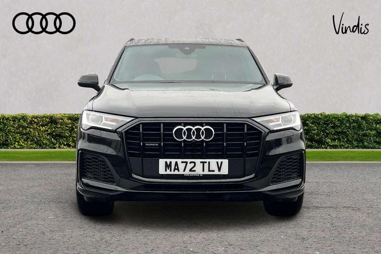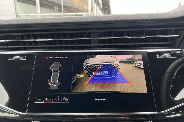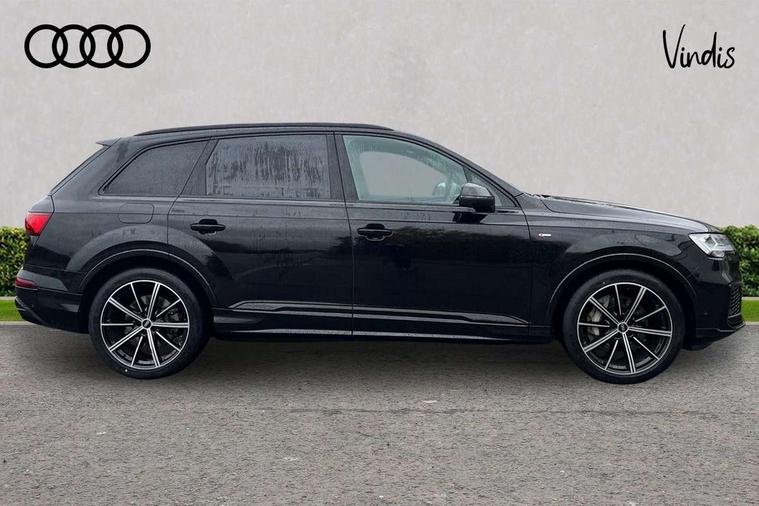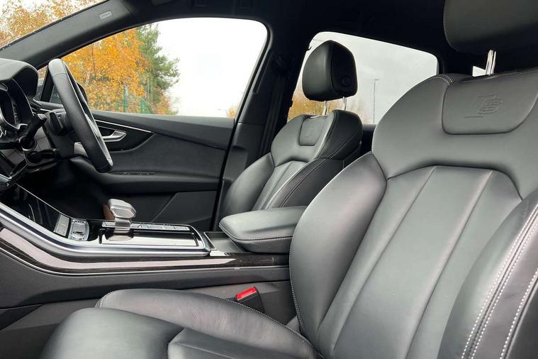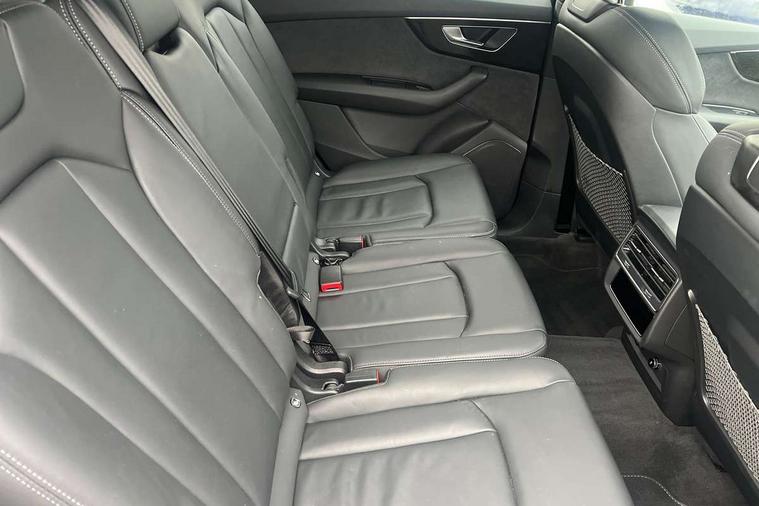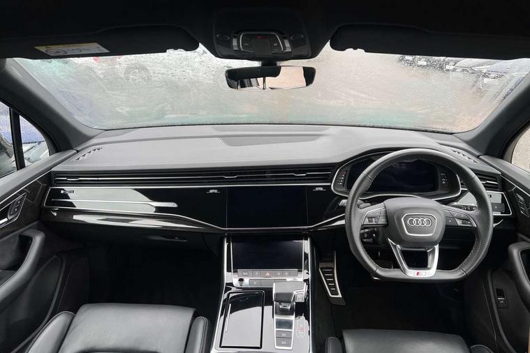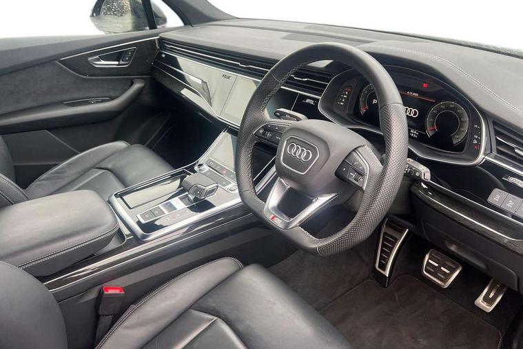Audi connect safety and service (e-call), Audi connect with Amazon Alexa Integration, Audi drive select (Auto, Comfort, Dynamic, Efficiency, Individual, Off-road and All road), Bluetooth interface, Camera based traffic sign recognition, Electromechanical steering, MMI navigation plus with MMI touch screens includes 10.1" and 8.6" screens with haptic feedback, Natural voice recognition, Parking system plus with 360 degree display (front, rear and side sensors) - acoustic and visual park assist system, Power operated tailgate, Rear view camera, Smartphone interface includes wireless Apple carplay/Android Auto, Start/stop system, 48V Mild hybrid technology, 85 litre fuel tank, Adaptive air sports suspension, Quattro all wheel drive with self locking centre differential, Audi music interface - front 2 USB-C ports with charger and data functions, Audi sound system with 6 channel amplifier, 180 watt amplifying capacity and 10 loudspeakers including subwoofer, DAB digital radio module, 3rd brake light, Audi matrix LED headlights with dynamic front and rear indicators, Auto dimming frameless rear view mirror, Black roof rails, Bumpers in contrast paint scandium grey finish includes door trim and wheel arch trim strips, inlays in door strip contain quattro embossing, Electrically adj heated/folding + automatically dimming exterior mirrors with memory + automatic kerb side function for passenger side exterior mirror, Heat insulating glass in windshield, Integrated LED indications in door mirrors, LED daytime running lights, LED rear tail lights, Privacy glass - dark tinted rear and rear side windows from B-pillar backwards, Rear side wing doors, Rear wiper, 2 seat bench in 3rd row, 3 seat bench in 2nd row, 4 zone deluxe automatic climate control, 7 seat layout with ISOFIX points for the front passenger seat and rear passenger seat, Black cloth headlining, Comfort front centre armrest, Electric adjustable front seat with 4 way lumbar support, driver memory functionality, Folding rear seats, Front head restraints, Front/rear floor mats, Heated front seats, Illuminated door sill trims with S logo, LED interior ambient lighting, Luggage compartment cover, Luggage compartment sill protection in stainless steel, Rear head restraints, Single front passenger seat, Stainless steel pedals, Sunvisors with illuminated vanity mirrors, Titanium black styling pack - Q7/SQ7, 3 point seatbelts on all rear seats, Audi pre sense front, Child locks on rear doors, Driver and front passenger, front side and curtain airbags, Electromechanical parking brake, Electronic Stabilisation Control (ESC) including ABS, ASR and EDL, Extended pedestrian protection measures, Hill hold assist, Seatbelt monitoring, Tyre pressure loss indicator, Warning triangle and first aid kit, Anti theft alarm, Anti-theft wheel bolts and wheel loosening detection, Keyless Go, Remote central locking, Polished oak trim with grey finish inlay, Tool kit, Tyre repair kit,
