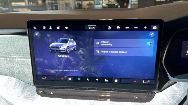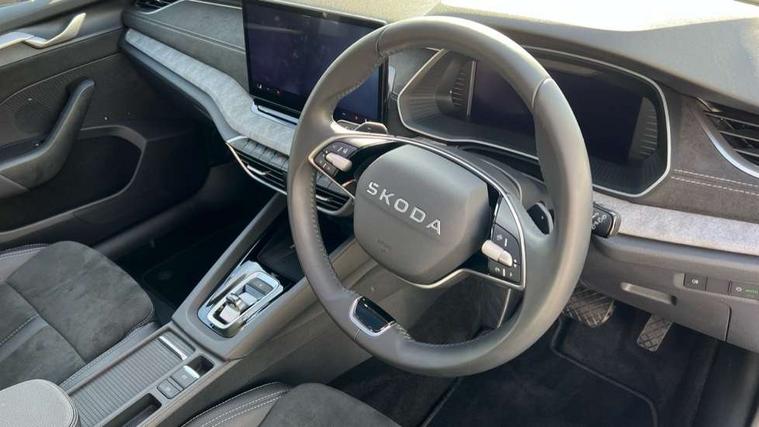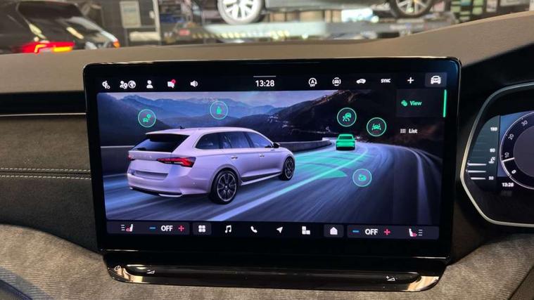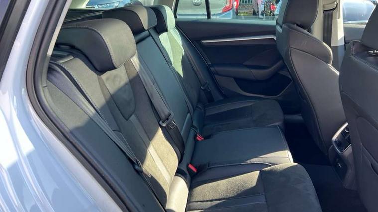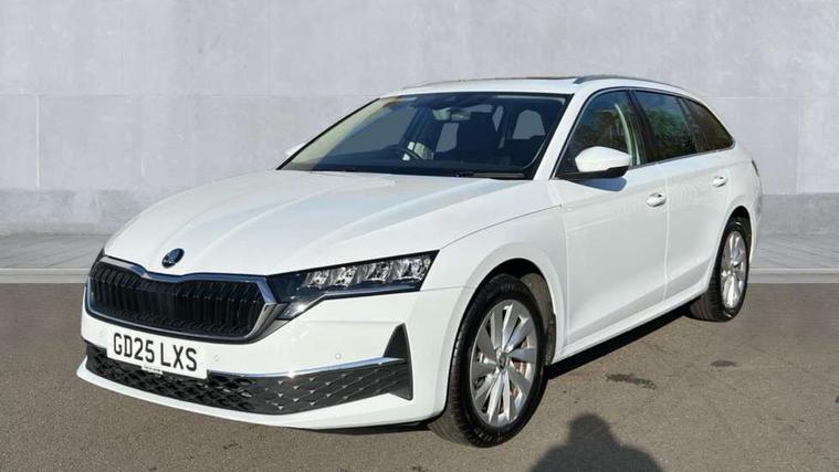 1x USB Typc C port in rear view mirror, 4x USB Type C ports - 2x in front centre console and 2x in rear (45W), Drive mode selection, Driver fatigue sensor, eCall emergency system, Electro-mechanical power steering, Front assist system, Traffic sign recognition, Turn Assist, Virtual Cockpit - 10.25" digital display, Voice control system, Wireless charging (15W) with cooling function, Wireless SmartLink for Apple CarPlay and Android Auto, 13" touchscreen display with navigation, DAB Digital radio, Aero front windscreen wipers with intermittent function, Auto dimming rear view mirror, Body colour bumpers, Body colour door mirrors and handles, Chrome grille surround, Chrome roof rails, Chrome strip in lower front bumper, Chrome window surrounds, Electric front and rear windows, Electrically adjustable, heated, folding and driver side auto-dimming door mirrors, Heated rear windscreen, High level third brake light, Ice scraper in fuel cap, LED daytime running lights, LED Headlights, Logo projection in front doors, Rain and light sensors, Rear fog light on one side and reversing lights on both sides, Rear privacy glass, Rear side wing doors, Rear spoiler, Rear window wiper, 12 volt socket in boot, 3 rear headrests, 3 seat bench in 2nd row, 4 foldable roof handles, Front head restraints, Heated front seats, Illuminated glovebox, Interior door handles in dark chrome, Jumbo Box storage, Luggage compartment lighting x2 lights, Mechanical rear seat release from boot, Single front passenger seat, Steering wheel in black leather with black stitching, Storage compartments in left and right of boot, Sun visors with mirrors, Sunglasses storage, Ticket holder, Two-spoke leather multi function steering wheel with paddles, Umbrella in door panel, Unsplit rear bench seat, split folding backrest with centre armrest with cupholder, Comfort package - Octavia Estate, Simply clever package premium - Octavia, 3x3 point rear seat belts, Alarm with interior monitoring, tilt sensor and back up horn, Curtain airbags and front side airbags, Driver and front passenger airbags, Drivers knee airbag, Electronic parking brake, ESC including ABS, EBV, MSR, ASR, EDS, HBA, DSR, Front central airbag, Hill hold assist, ISOFIX on front passenger seat and outer rear seats, Passenger airbag deactivate switch, Three point seat belts in front and rear, Two tone horn, Tyre pressure monitor, Visual and acoustic seat belt reminder, Warning reflectors in front door, Anti-theft wheel bolts, Keyless entry and start/stop, Remote central locking, Chrome air vent surrounds,