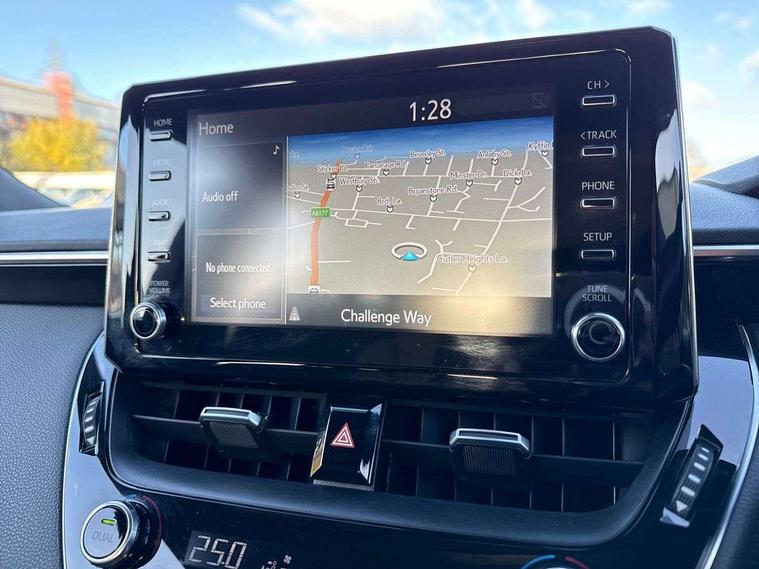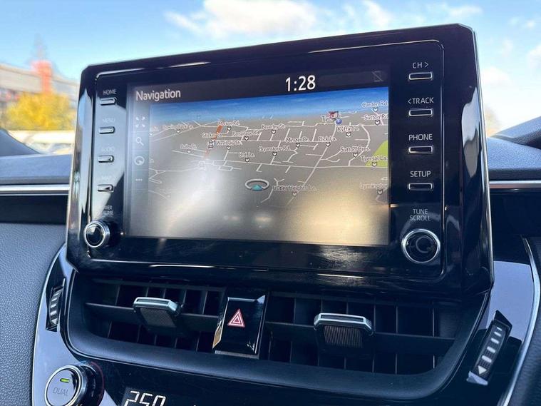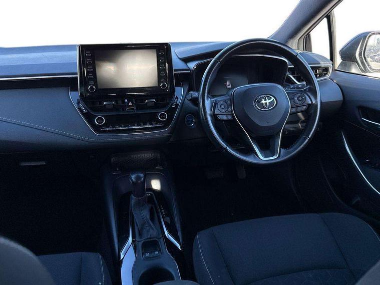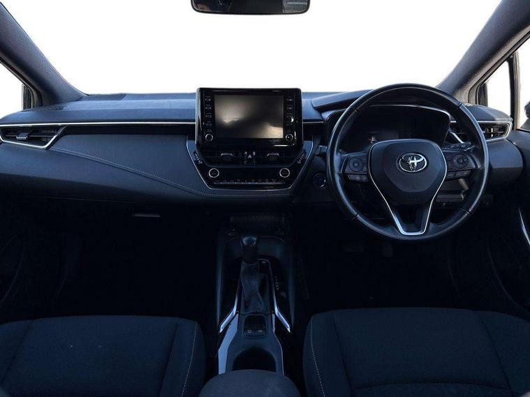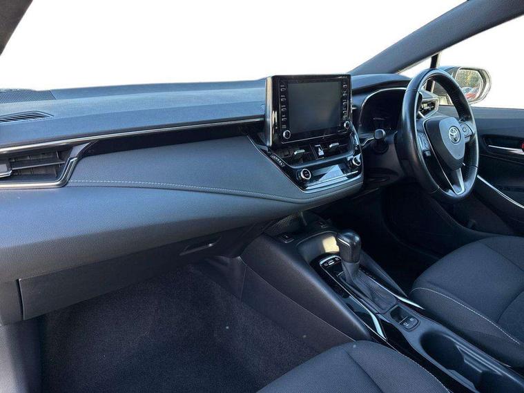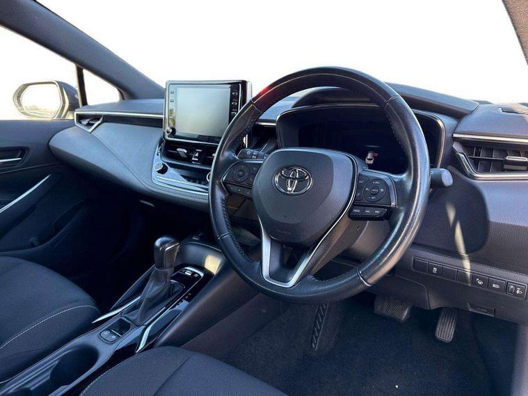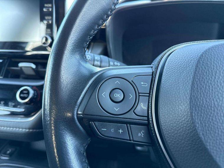 7" Multi information display screen, Bluetooth telephone connectivity, Connected car functionality upgrade, tracker, remote status and e-care, Dynamic radar cruise control (with RSA) including switch on steering wheel, E-call, Electrically assisted power steering, EV drive indicator, Intelligent park assist, Lane Departure Alert (LDA) switch on steering wheel, Memory on adjustable speed limiter, Push button start, Reversing camera, Smartphone integration with Apple CarPlay and Android auto, Gasoline particulate filter, Vehicle Stability Control (VSC), 6 speakers, 8" Touchscreen with MM19 Multimedia system and voice recognition, AM/FM radio, DAB Digital radio, Toyota touch 2 with go navigation system, USB and Aux in connectors + 12V front outlet, USB charging port in centre storage box, Aluminium roof rails, Anti-jam protection on power windows, Auto up and down function on all power windows, Automatic headlights with high beam assist, Black metallic surround on lower front grille, Black toyota logo in front, Body colour rear spoiler, Body coloured bumpers, Body coloured door mirrors, Body coloured outside door handles, Follow me home headlights, LED daytime running lights, LED front fog lights, LED Headlights, LED High mounted stop light, Manual day/night rear view mirror, Noise reduction layer on front windows, Power adjustable heated door mirrors, Power front windows, Power rear windows, Rear window defogger, Rear window wiper, Shark fin antenna, Time adjustment on intermittent wiper, Turning signal integrated indicators in door mirrors, Unique lower skirt, Unique side rocker with black insert, UV-filter on driver and passenger windows, 12v power outlet - luggage side, 3 rear headrests, 3 spoke leather steering wheel + gear knob, 60/40 split folding rear seat, Adjustable speed limiter switch on steering wheel, Audio, multimedia and telephone switches on steering wheel, Boot light, Boot underfloor storage, Clean air filter, Driver and front passenger personal light, Driver and passenger assist grip, Driver and passenger sun visor with mirror and light, Dual sided deck board in boot, Dual zone automatic air conditioning with ECO mode switch, Fabric armrests, Front and rear cup and bottle holders, Front and rear door pockets, Front head restraints, Heated driver and front passenger seats, Illuminated entry system in room lamp, ISOFIX seat fixing (2 fixings on rear outer seats), Leather gear shift with satin chrome on gear shift console, Manual height adjustable for driver and front passenger seat, Passenger seat back pocket, Pollen filter, Power adjustable lumbar support on driver seat, Power window switches with satin chrome inserts, Quilted fabric upholstery with grey stitches seats, Rear armrest with 2 cupholders, Rear passenger air vents, Rear passenger coat hooks (2), Rear passenger personal lights, Retractable tonneau cover with luggage partition net, Satin chrome inside door handles, Shopping bag hooks in luggage compartment, Side storage in boot, Sliding armrest on centre console box, Slow opening glovebox with lights, Tilt/telescopic steering column, Tonneau cover with under floor storage, Voice recognition switch on steering wheel, Whiplash Injury Lessening (WIL) feature (active headrest) for seats, Parking pack - Corolla, Toyota safety sense 2 pack - Corolla, 3x3 point rear seatbelts, Adjustable driver and front passenger seat belt extender to top anchor point, Anti lock braking system + Electronic brake force distribution, Brake assist function, Downhill Assist Control (DAC), Electronic parking brake, Emergency brake light signal (EBS), Front passenger airbag on/off switch, Front seatbelt reminder, HAC - Hill start assist control, Rear seat belt reminder, Seatbelt pretensioners and force limiters, Supplemental restraint system (SRS) 7 airbags - dual driver, dual side curtain, side impact and driver knee airbags, Traction control, Tyre pressure warning system, Acoustic vehicle alert system (AVAS), Alarm with motion sensor and immobilizer, Remote central locking + deadlocks, Smart entry, Satin chrome dash trim, Soft touch texture on upper dashboard, Stitching on lower dashboard, Space saver spare wheel, Unique wheel finish with red wheel cap,