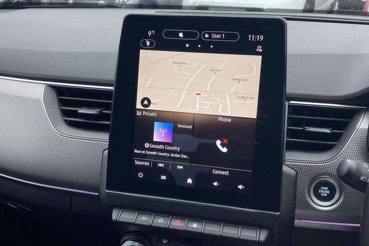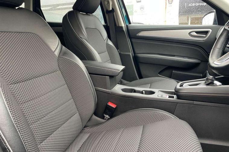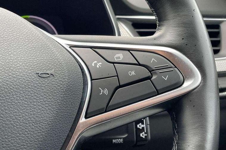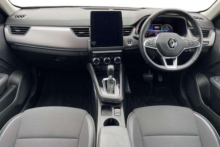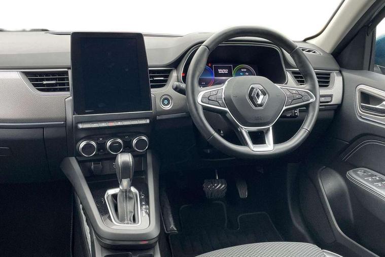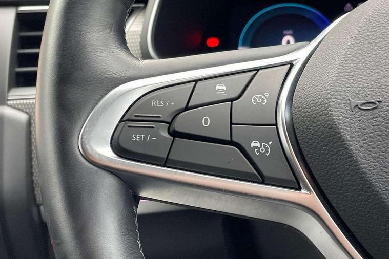 7" TFT Driver information display, Blind spot warning, Bluetooth system, EASY LINK 9.3" portrait touchscreen with navigation, Google search and traffic information, eCall emergency call system, Eco mode, EV button to activate pure mode, Front and rear parking sensors, Gear change indicator, Lane departure warning, Lane keep assist, Multi-sense - 3 driving modes and 8 ambient lighting, Rear cross traffic alert, Rear view camera, Renault automatic emergency assist, Smartphone integration compatible with Apple CarPlay and Android Auto, Traffic sign recognition with over speed prevention, Trip computer, Variable assistance electric power steering, Arkamys classic sound system with 6 speakers, DAB radio, USB port, 3rd brake light, Auto dimming rear view mirror, Automatic headlights, Automatic high / low beam, Automatic windscreen wipers with rain sensor, Black side door protection with chrome insert, Body coloured bumpers, C-shaped LED front signature lighting, Chrome decopart on wing (fender molding), Chrome window lower lining, Extra tinted rear windows and tailgate, Front and rear electric windows, Front driver window with one touch facility and anti-pinch function, Front grille with chrome on upper part, Full LED headlights, Grey front and rear skid plates, Heated rear window, Rain sensor, Rear windscreen wiper, Shiny black shark fin antenna, Side mirrors adjustable electrically, electrically foldable, with defrosting and temperature sensor, automatically foldable at vehicle closure, 3 seat bench in 2nd row, 60:40 split and fixed base rear seats, Automatic climate control with combined filter, humidity sensor and AQS, Central console with storage, Front and rear head restraints, Height and reach adjustable steering wheel, ISOFIX child seat fixing points on rear outermost seats, Leather steering wheel, LED front and rear roof lights, Rear air vents, Single front passenger seat, 3x3 point rear seat belts, ABS+EBA, Active emergency braking system, B Brake Mode - One pedal driving with increased regenerative braking, Distance warning alert, Driver airbag, Driver and passenger front and side airbag deactivation, Driver and passenger side airbags, Driver height adjustable seat belt, Electronic parking brake with auto hold, ESC (Electronic Stability Control), Front and rear no seatbelt warning sound, Front curtain airbags, Front head airbags, Hill start assist, Passenger airbag, Tyre pressure warning light, Anti drill door locks and locking fuel cap, Central door locking, Deadlocking system, Hands free keycard with Keyless access and start, RAID (Renault Anti-Intruder Device) automatic door locking, Rear side wing door and window child locking function (front driver door control panel), Superlocking, Thatcham alarm, 18" Pasadena diamond cut alloy wheels with grey inserts,