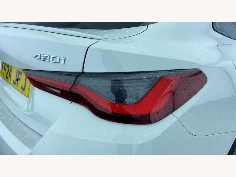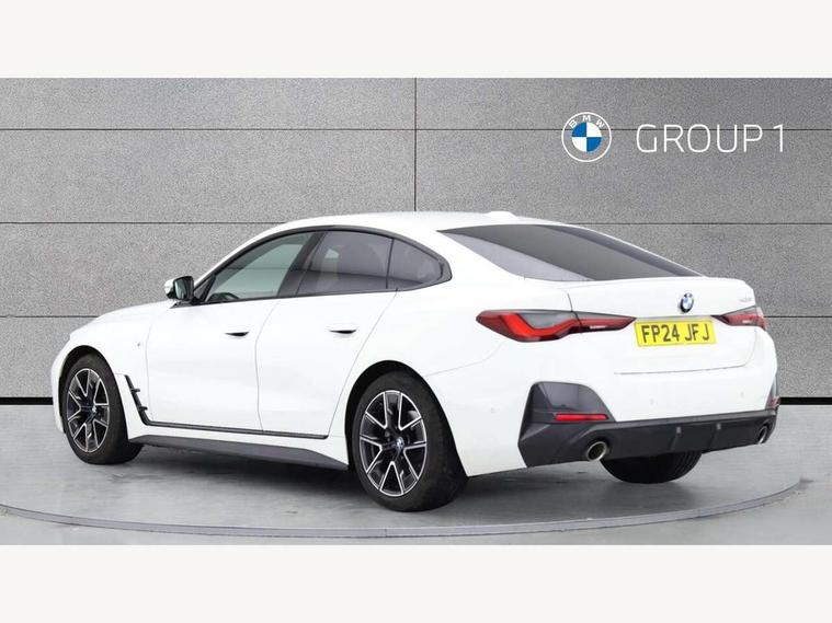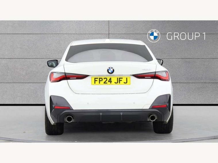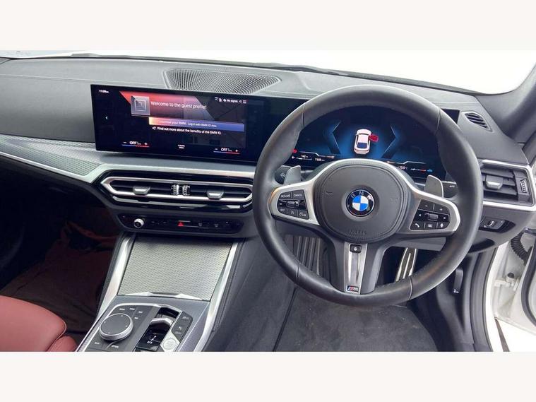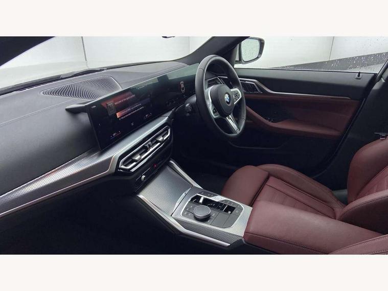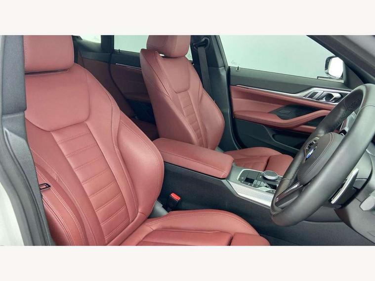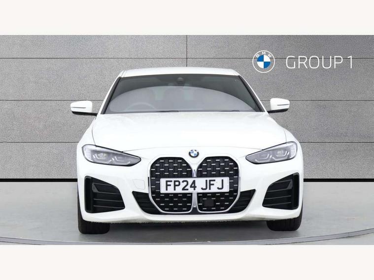Active guard plus, Auto start-stop, Bluetooth hands free facility with USB audio interface with audio streaming, BMW ConnectedDrive online services, BMW iDrive controller on centre console, BMW Live Cockpit Plus Nav-12.3" instrument&14.9" control Widescreen curved display/Intelligent Voice Assist/iDrive touch/Access 3rd party app/4G LTE, BMW service history, BMW Teleservices, Brake pad wear indicator in front and rear, Check Control warning system for monitoring of lights and door/luggage compartment open warning, Condition based service, Cruise control with speed limit function, Electric bootlid, Electric power steering with Servotronic steering optimised at all speed ranges, Fatigue detection system, Gearshift time display in manual mode, Instrument cluster with speedometer with mph readout, tachometer, fuel gauge and oil temperature gauge, Integrated owners handbook, Language version English, Oil sensor for level and grade, warning by check control system, On board computer - average speed, fuel consumption, outside temp display with acoustic warning, clock/date, service interval, odometer/trip meter, Optimum shift indicator, Shifting point display, Tailgate, Variable sport steering, 8 speed automatic steptronic transmission with gearshift paddles, Double joint spring strut front axle, Double VANOS, Drive performance control - ECO PRO, comfort and sport modes, High precision injection, Low centre of gravity, M sport suspension, Petrol Particulate Filter, Stroke dependent dampers, VALVETRONIC engine management, 2x USB Type C ports in front centre console for charging and data transfer, 2x USB Type C ports in rear centre console for charging, DAB tuner, Electronic service booklet, Acoustic glazing, Automatic headlight beam throw control with load dependent regulating reaction, dynamic compensation of braking dive and acceleration squat, Automatic windscreen wipers and automatic headlight, Automatically dimming electrochromatic rear view mirror, BMW emblem on engine compartment lid and tailgate, BMW kidney grille with mesh grille front side of the nuggets in matt aluminium and frame in chrome high gloss, Body colour fuel filler flap, Body colour roof fin, Brushed aluminium inserts in the front door sill finishers with BMW designation, Door sill strips, Dynamic brake lights, Electric windows - front and rear, with open/close fingertip control, anti trap facility and comfort closing function all round, Exterior mirrors - electrically folding with anti-dazzle, Fading support, Follow me home headlights, Front and rear bumper system, Front apron plastic in body colour, Green tinted heat protection glazing, High gloss shadow line exterior trim, Illuminated bow type door handles in body colour drivers side with door lock, Interior rear view electrochromatic mirror with automatic anti dazzle function, LED 3rd brake light, LED daytime running lights, LED front fog lights, LED front indicators, Licence plate panel integrated into front bumper and tailgate, Lightweight engineering, M designation on front side panels, left and right, M sport rear boot spoiler with body colour gurney, Model designation on right side of tailgate, One piece front bumper cover including towing eye cover in body colour, Preparation for high beam assistant, Rear side wing doors, Rear wiper, Reversing light, Side frame decorative moulding black matt, Two part LED tailights in L-shape with components in smoked glass, brake light, LED turn indicator and rear fog light, Visible exhaust tailpipe finisher, Visible VIN plate, Welcome lights in interior and door handle area, Widened track and increased camber values for max transverse dynamics, agility and steering precision, Window recess cover black high gloss, Windscreen wipers with integrated heated washing jets, 12V power socket in front centre console, 2 front cupholder in centre console with clamping elements and matt black inlay, 3 rear headrests, 3 seat bench in 2nd row, 3 spoke M sport leather multifunction steering wheel, 3 zone automatic air conditioning, 4 pieces lashing eyelets in luggage compartment, 40:20:40 split folding rear seat and rear centre armrest with two cupholders, Anthracite headlining, Armrest integrated in front and rear door trim + front centre console armrest, Battery in luggage compartment, BMW ID, Driver seat backrest width adjustment, Extended storage in Combination with sport seat net pocket on rear backrest, Four grab handles integrated in roof lining, Front and rear door pockets, Front and rear footwell lights, Front and rear reading lights, Front sport seats, Heated driver and front passenger seats, Height adjustable front headrests, Height adjustable mechanically and infinitely variable steering column, Illuminated armrest storage compartment, Illuminated glove compartment with separate small compartment, Luggage compartment lighting, Luggage compartment seprating net on side trim left/right, Bag hook, 12V socket, TTH button, USB C charging in rear, Folding compartment on driver side, Make-up mirror lights, Single front passenger seat, Storage compartment in rear centre console, Sunvisors with illuminated vanity mirrors and ticket pocket, Toolkit located in luggage compartment, Velour front floor mats, Vernasca leather upholstery, Ambient lighting pack - 4 Series, Connected professional package - 4 Series, M sport exterior styling pack - 4 Series, 3 point seatbelts on all seats, Battery safety cut-off, BMW emergency call, Brake energy regeneration, Braking pre-tensioning, Child proof locking system in rear door, Child seat ISOFIX attachment for the two outer rear seats, Coasting in idle in ECO PRO mode, Cornering brake control (CBC), Crash sensor activating of airbags, Unlocking doors, hazard warning lights, interior light, safety battery terminal, Driver and front passenger side airbags, integrated in the door side seat backrest bolsters for all seat variants, Driver/Front Passenger airbags, Dry braking, Dynamic brake control, Dynamic stab