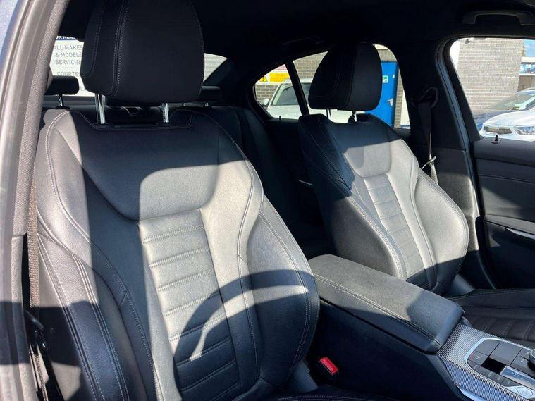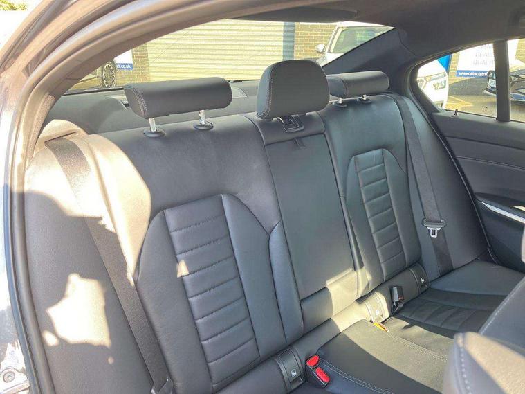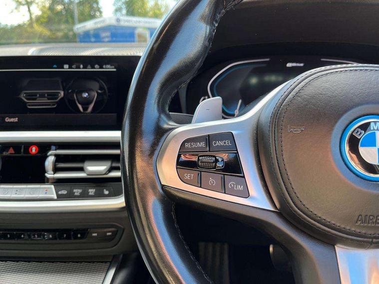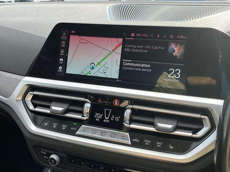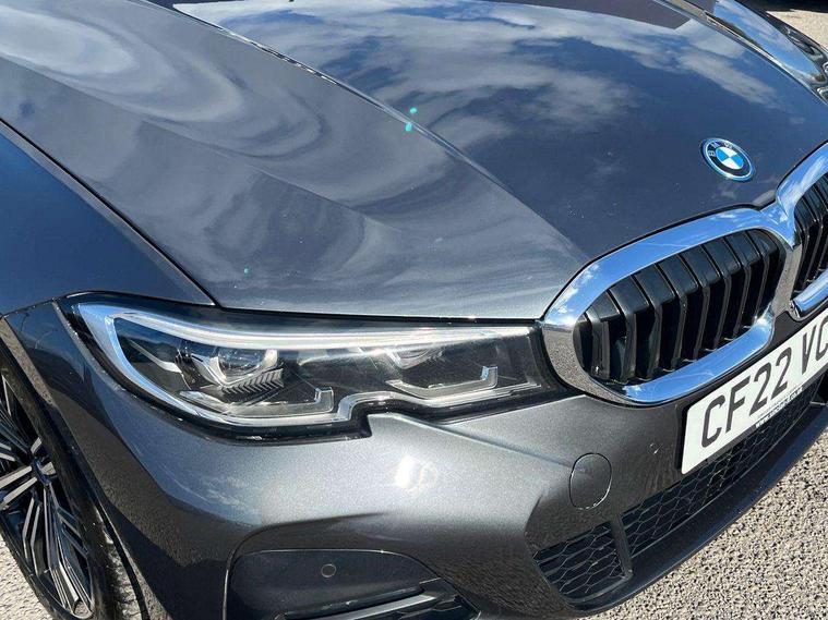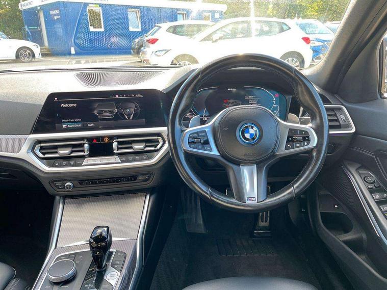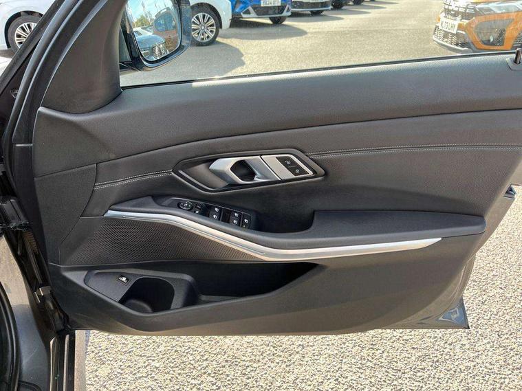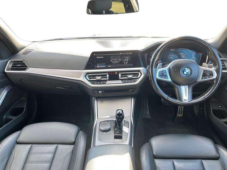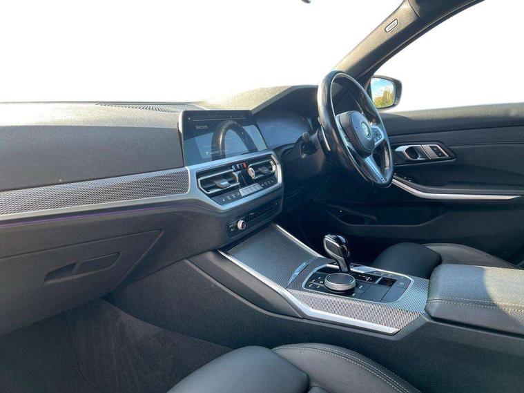 Active guard plus, Attentiveness assist, Auto start-stop, Bluetooth hands free facility with USB audio interface with audio streaming, BMW iDrive controller on centre console, BMW Live Cockpit Professional Nav with 12.3" instrument display + 10.25" display, Intelligent Voice Assist, BMW OS 7, HDD, 2USB, 4G LTE connect, BMW service history, BMW Teleservices, Brake pad wear indicator in front and rear, Check Control warning system for monitoring of lights and door/luggage compartment open warning, Condition based service, Cruise control with brake function + speed limiter, Electric power steering with Servotronic steering optimised at all speed ranges, Instrument cluster with speedometer with mph readout, tachometer, fuel gauge and oil temperature gauge, Integrated owners handbook, Oil sensor for level and grade, warning by check control system, On board computer - average speed+fuel consumption, service interval, clock/date, odometer/trip meter, outside temperature display and ice warning, Optimum shift indicator, Personal Profile - automatic lock when driving away selectable, Balanced 50/50 weight distribution, Battery cut-out switch, Charging cable - Mode 2, Drive performance control - ECO PRO, comfort and sport modes, Petrol Particulate Filter, Stroke dependent dampers, DAB tuner, Electronic service booklet, Acoustic glazing, Active airstream chrome frame kidney grille with 8 high gloss black vertical slats, Automatic headlight beam throw control with load dependent regulating reaction, dynamic compensation of braking dive and acceleration squat, Black roof mouldings, Body colour door handles, Body colour front and rear bumpers, Body colour fuel filler flap, Body colour mirror caps with bottom segment in matt black, Dynamic brake lights, Electric windows - front and rear, with open/close fingertip control, anti-trap facility and comfort closing, Exhaust tailpipe - split left and right, Exterior mirrors - electrically folding with anti-dazzle, Fading support, Front and rear bumper system with replaceable deformation elements, Front black door sill finishers with BMW designation, Green tinted heat protection glazing, High gloss shadow line exterior trim, Interior rear view electrochromatic mirror with automatic anti dazzle function, LED daytime running lights, LED front fog lights, LED third brake light, Lightweight engineering, M designation on front side panels, left and right, Matt black exterior B pillar, Model designation on right side of tailgate, Rain sensor with automatic headlight activation, Rear boot, Rear side wing doors, Shark fin antenna, Two part LED tailights in L-shape with components in smoked glass, brake light, LED turn indicator and rear fog light, Visible VIN plate, Welcome lights in interior and door handle area, Windscreen wipers with integrated washing jets, 12V power socket in front storage compartment, 2 front cupholder in centre console with clamping elements and matt black inlay, 3 rear seats with non folding headrests with 3 point seat belts, 3 seat bench in 2nd row, 3 zone automatic air conditioning, 4 pieces lashing eyelets in luggage compartment, 40:20:40 split folding rear seat with loading system, Ambient lighting with welcome carpet light, Anthracite headlining, Armrest integrated in front and rear door trim + front centre console armrest, Backrest width adjustment, Centred top Luggage compartment lights, Four grab handles integrated in roof lining, Front and rear door exit lighting (left / right), Front and rear door pockets, Front and rear reading lights, Front and rear velour floor mats, Front head restraints, Front sport seats, Heated front seats, Height adjustable mechanically and infinitely variable steering column, Illuminated armrest storage compartment, Illuminated glove compartment with separate small compartment, Interior lighting - front centre over interior mirror with soft light, rear centre and front and rear footwell lighting, M sport leather steering wheel, Make-up mirror lights, Rear centre armrest with 2 cupholders, Rear centre console with storage compartment and ventilation grille, Single front passenger seat, Sunvisors with vanity mirrors and ticket pocket, Toolkit located in luggage compartment, Connected pack professional - 3 Series Saloon/Touring, M sport exterior styling pack - 3 Series Saloon/Touring, 2 tone horn, BMW emergency call, Brake energy regeneration, Braking pre-tensioning, Child proof locking system in rear door, Child seat ISOFIX attachment rear outer seats, Coasting in idle in ECO PRO mode, Crash sensor activating of airbags, Unlocking doors, hazard warning lights, interior light, safety battery terminal, Driver and front passenger side airbags, integrated in the door side seat backrest bolsters for all seat variants, Driver/Front Passenger airbags, Dry braking, Dynamic brake control, Dynamic stability control + (DSC+) - Anti-lock Braking System (ABS) with brake assist and cornering brake control + Automatic Stability Control (ASC), Dynamic Traction Control - DTC, Electric parking brake including automatic hold function and automatic release of the parking brake when driving off, Electronic differential lock control (EDLC), Front passenger manual airbag deactivation, Head airbags for all 4 outer seats, Hill start assist, Seat belt security check for driver and front passenger, Side impact protection, Three 3 point seat belts on all seats including front belt stopper, pyrotechnic belt tensioners and belt force limiters, Tyre pressure monitoring with three level warning strategy, Ventilated front and rear disc brakes, Warning triangle and first aid kit, Alarm system (Thatcham 1) with remote control and electronic engine immobiliser, Central locking switch for all doors, fuel filler cap and luggage compartment, Remote control with integrated key one button open/close vehicle and windows, sole opening of the luggage compartment lid and panic mode, Start/stop button with Comfort Go keyless engine start and auto Start/