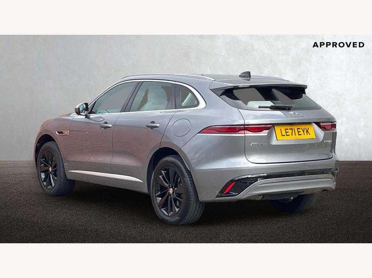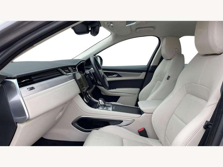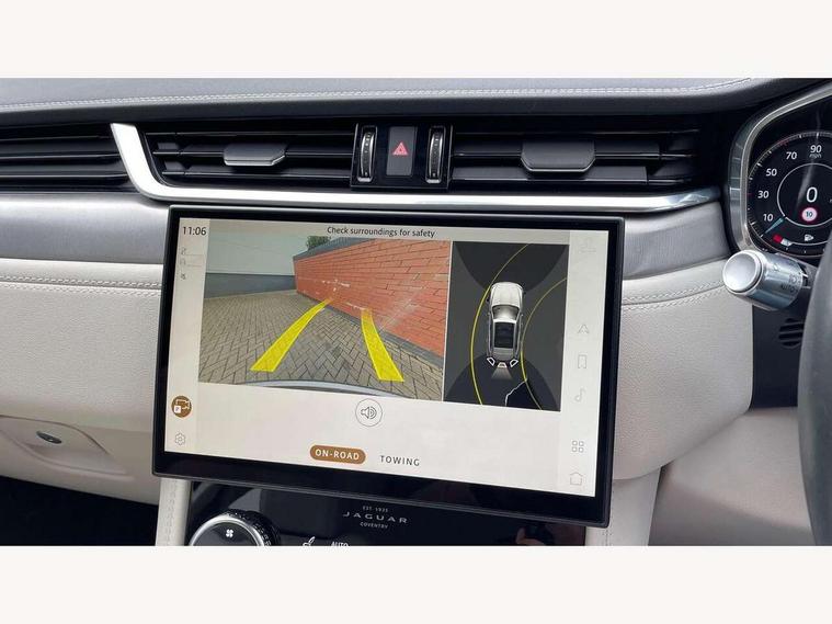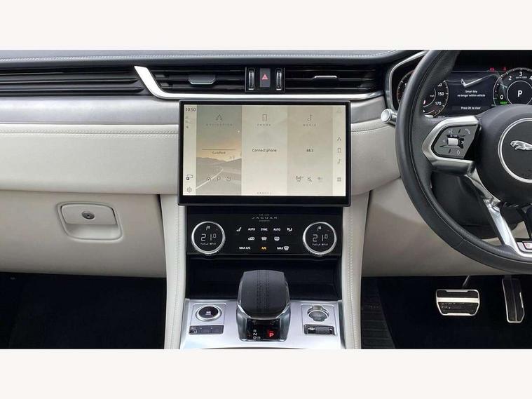 11.4" touchscreen, Android Auto, Apple car play, Blind spot assist, Bluetooth connectivity, Clear exit monitor, Driver alert system, Driver condition monitor, Eco driving style assistant, Electric power assisted steering, InControl remote, Interactive Driver display instrument cluster, Jaguar Toggle shift selector, Lane departure warning system, Lane keep assist, Outside temperature gauge, Personalisation profile management, Pivi pro connected navigation system with app interface and media storage, Pro services and wifi hotspot, Push button starter, Rear traffic monitor, Service interval indicator, Speed proportional steering, Start up sequence with movement in dials and lighting, Traffic sign recognition with adaptive speed limiter, Trip computer, Voice control system, 7 kW onboard charger, 8 speed automatic transmission, Adaptive dynamics, All terrain progress control, All Wheel Drive (AWD), Configurable dynamics, Open differential with torque vectoring by braking, Public charging cable, AM/FM radio, Bluetooth streaming, DAB Radio (Digital Audio Broadcasting), Dynamic volume control, InControl apps, InControl protect, iPod integration, 3 flash lane change indicators, Animated directional indicators, Approach Illumination, Auto dimming rear view mirror, Automatic headlights, Body colour door mirrors, Electric heated/power fold memory door mirrors with approach lights and auto dimming driver side, Electric windows with one touch open/close and anti trap, F-Pace badge, Green tinted glass, Heated front windscreen + heated washer jets, Heated rear window with timer, Illuminated metal tread plates with Jaguar script, Jaguar script and leaper, LED tail lights, Non acoustic front windscreen, P400e AWD badge, R Dynamic badge on side door, Rain sensor windscreen wipers, Rear fog lights, Rear metal tread plates, Rear wiper, Trailer stability assist, Variable front intermittent wipers, 12V power point front, 3 rear headrests, Air distribution speed, Bright metal foot pedals, Centre armrest console, Centre console with side storage, Deletion loadspace storage rails, Door sill tread plates, Electrically adjustable steering column, Fold flat front seats, Front centre armrest with storage compartment, Front door storage space, Glovebox finisher with jaguar script, Heated steering wheel, Hooks in loadspace, Illuminated glovebox, Interior front door handles with separate locking switches, ISOFIX on outer rear seats, Jaguar sense, Luggage tie downs in loadspace, Mist sensing, Multifunction steering wheel, Overhead lighting console, Overhead stowage for sunglasses, Passive front head restraints, Premium cabin lighting, Premium carpet mats, R-Dynamic branded leather steering wheel, Rear air vents, Rear armrest with twin cupholders, Rear centre headrest, Rear door storage space, Reversible boot floor, Satin chrome gearshift paddles, Shopping bag hook, Sunvisors with illuminated vanity mirrors, Twin front cupholders with cover, Online Pack with data plan - F-Pace, 380mm front brakes and 325mm rear brakes, 3x3 point rear seatbelts, ABS, All surface progress control (ASPC), Brake pad warning light, DSC - Dynamic Stability Control, Electric parking brake (EPB), Emergency brake assist, Front airbags with passenger seat occupant detector, Front and rear seatbelt reminder, Front side airbags, Full length side window curtain airbag, Hill launch assist, Power operated child locks, Torque vectoring brake, Traction control, Tyre pressure monitoring system, Immobiliser, Keyless entry, Keyless Start, Locking wheel nuts, Perimeter alarm, Remote central locking, Valet mode,