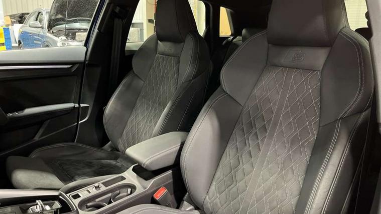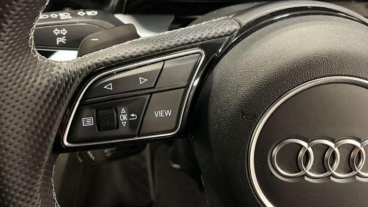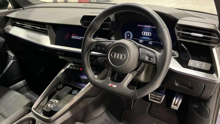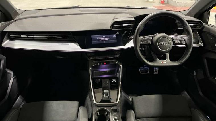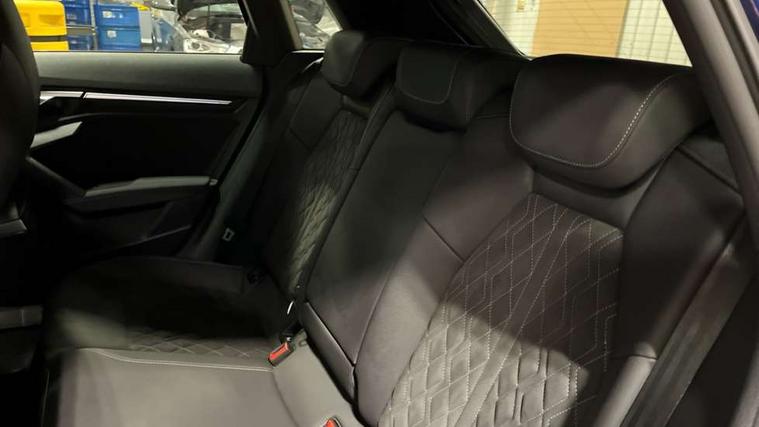 Audi connect emergency call and service, Audi drive select (Auto, Comfort, Dynamic, Efficiency and Individual), Audi smartphone interface, Audi virtual cockpit plus - 12.3" full HD resolution dynamic digital instrument cluster, Automatic start/stop system with recuperation, Bluetooth interface, Collision avoidance assistant, Electromechanical power speed sensitive steering, Lane departure warning system, MMI Navigation Plus with high resolution 10.1" colour touch screen display, Service indicator, Trip computer, Voice control system with natural language interaction, Sports suspension, 2xUSB-C connection with data and charging functions, 6 passive loudspeakers, DAB Digital radio, 3rd brake light, Acoustic glass windscreen, Audi matrix LED headlights with LED rear lights + dynamic front and rear indicators, Auto dimming frameless rear view mirror, Body colour front spoiler blade, Electrically adj heated/folding + automatically dimming exterior mirrors + automatic kerb side function for passenger side exterior mirror, Front electric windows, Headlight washers, Illuminated aluminium inserts front door sills with S logo, Integrated LED indicators in door mirrors, LED daytime running lights, Light and rain sensors, Privacy glass - dark tinted rear window, rear door and side windows, Rear diffuser in grained matt black, Rear electric windows, Rear side air outlets in grained matt black, Rear wiper, S roof spoiler, 12V socket and storage compartment in front centre console, 4 way electrically adjustable lumbar support for driver and front passenger, 40/20/40 split folding rear seat bench with cupholder, Black cloth headlining, Dual zone electronic climate control, Electrically adjustable front seats for driver's side, Front and rear centre armrest in leather, Front and rear headrests, Front/rear floor mats, Heated front seats, Height and reach adjustable steering wheel, Interior lighting - glove compartment light and right hand side, Luggage compartment floor covering, Seat side bolsters, Stainless steel pedals and front footrest in black, Aluminium interior elements pack - A3 Sportback, Black styling pack - A3 Sportback, Dinamica microfibre/mono.pur 550 artificial leather pack - A3 Sportback, Extended ambient lighting pack - A3 Sportback, LED interior lighting pack - A3 Sportback Edition 1/Vorsprung, 3x3 point rear seat belts, Driver and front passenger airbag with passenger airbag deactivation, Electronic Stabilisation Control (ESC) including ABS, ASR and EDL, First aid kit with warning triangle and 2 safety vests, Front side airbags with head airbags and interaction airbag, Hill hold assist, Pre-sense front with pedestrian and cyclist detection, Seatbelt monitoring, Tyre pressure loss indicator, Anti theft alarm, Anti-theft wheel bolts, Electronically operated child lock, Immobiliser, Remote control central locking, Accent surfaces in the dashboard and centre console in platinum grey silk effect paint finish, Dark spectrum aluminium inlays, 19" 5 arm trapezoid design alloy wheels in titanium matt grey with diamond cut finish,