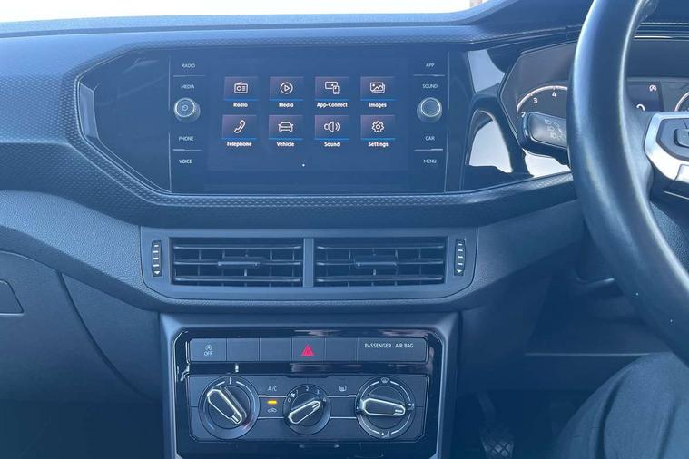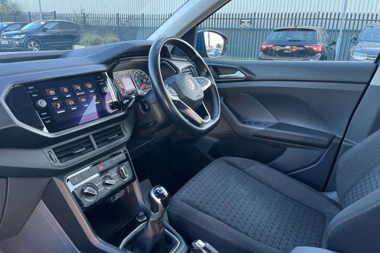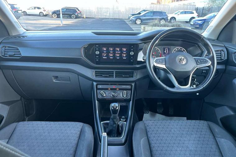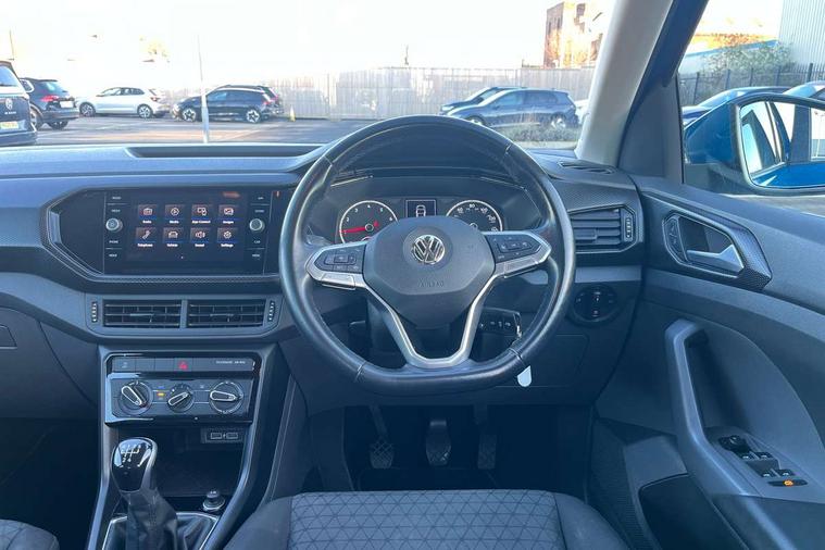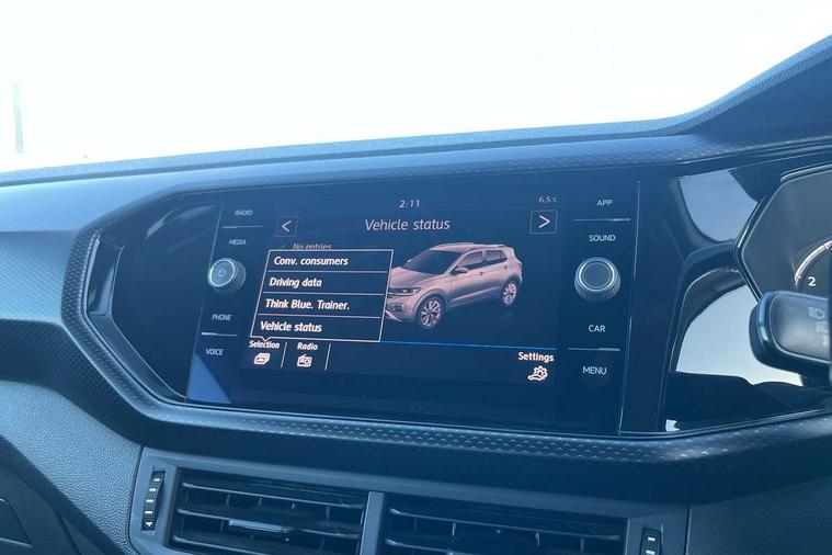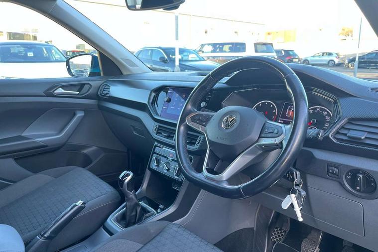 'Lights On' Reminder warning buzzer, Adaptive cruise control including front assist, forward collision warning, autonomous emergency braking, speed limiter, Driver alert system, eCall emergency call system, Lane assist, Multifunction computer with visual gear change recommendation for fuel consumption, Power assisted speed sensitive steering, Speedo, rev counter, electronic odometer, trip, service interval display, exterior temperature and fuel gauge, Stop/start system, Warning sound and light for doors and tailgate open, Warning sound and light for front seatbelts unfastened, We Connect Go Dongle, Wireless Car net app connect with Apple CarPlay, combined functionality of Apple CarPlay/Android Auto and MirrorLink, Battery regeneration during braking, Misfuel prevention device, 2x USB connection with USB charging sockets and in rear centre console, Diversity antenna for FM reception, Premium USB cable for Apple or Android smartphone compatibility, Automatic dimming interior rear view mirror, Automatic hazard lights activation under emergency braking, Black roof rails, Body colour door handles, Body coloured bumpers, Dusk sensor + automatic driving lights, Front and rear electric windows, Front fog lights with static cornering function, Galvanised body, Heated rear window, High level 3rd brake light, Lower door sills and door pillars in black, Manual coming/automatic leaving home lighting function, Radiator grille with high gloss surface and chrome strip, Rain sensor, Rear lights incorporating LED technology, Rear window aerial, Rear windscreen washer and wiper with interval delay, Reflectors in all doors, Tailgate with integrated roof spoiler, Windscreen wipers/ intermittent wipe + 4 position delay, 12V Accessory socket in centre console, 3 rear head restraints and 3 rear three point seat belts with ECE label, 60/40 split folding rear seat backrest, Drawer under drivers seat, Driver and front passenger sunvisor with vanity mirror, Driver's sunvisor with ticket holder, Dust and pollen filter, Front and rear reading lights X 2, Front centre armrest with storage compartment, Front seat back storage pockets, Glovebox, Heating and fresh air system with 4 stage blower, Height/reach adjust steering wheel, Instrument lighting white adjustable panel illumination, Interior light with delay, Isofix child seat preparation for 2 rear child seats, Luggage compartment cover, Luggage compartment lighting, Manual front seats with height adjustment, Moveable and foldable Rear bench seat, Storage compartment in drivers and front passengers door, Variable boot floor, Composition Media infotainment system pack - T cross, Anti-lock Braking System (ABS) with Hydraulic Brake Assist (HBA), Automatic post collision braking system, Driver and front passenger safety-optimised head restraints, Drivers and Front Passengers airbags with front passengers airbag deactivation switch, ESC with EDL, ASR, EDTC and trailer stabilisation function, Extended and proactive pedestrian protection, Front and rear curtain airbags, Front disc brakes and rear drum brakes, Front seat side impact airbags, Height adjustable 3 point automatic front seatbelts with pretensioners, Hill start assist, Pre crash preventive occupant protection, Rigid safety cell with front and rear crumple zones, Tyre pressure loss indicator, Volkswagen roadside assistance, Alarm with interior protection and deactivation via infotainment system, Child security locks in rear doors, Remote tailgate unlocking using key fob,