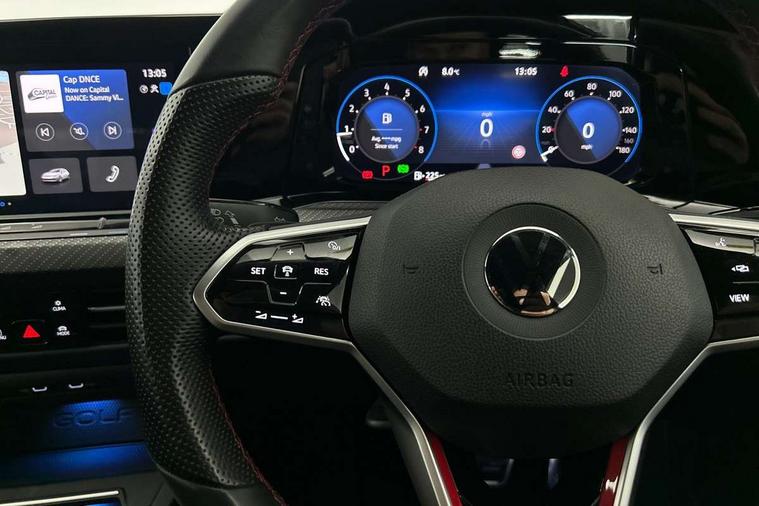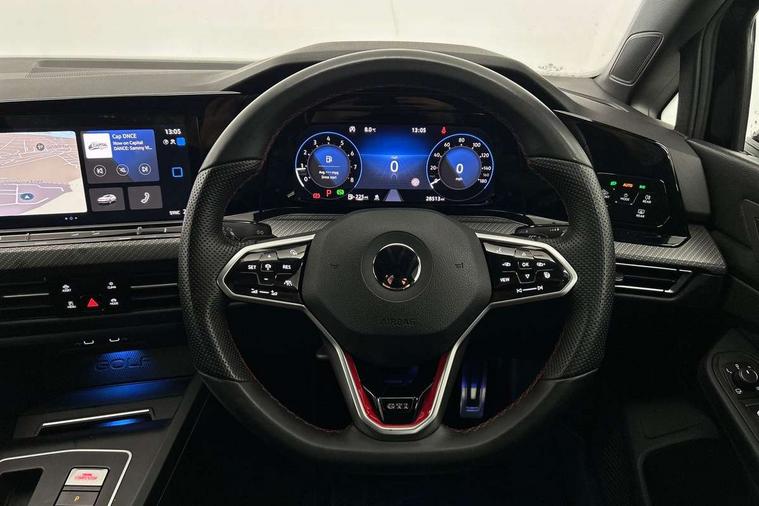 Adaptive cruise control (ACC) with speed limiter and front assist (reacting to vehicles pedestrians and cyclists), Car2X communication, Digital cockpit pro - 10.25" high resolution TFT dash display screen with customizable menus and information, Driver alert system, Driver profile selection, Dynamic road sign display, eCall - Emergency call service for SOS calls to emergency response, Lane assist, Lane change assistant, Mobile phone interface with wireless inductive charging function, Progressive steering, Speedo, rev counter, electronic odometer, trip, service interval display, exterior temperature and fuel gauge, Start/Stop function, Travel assist with emergency side assist with electrically foldable door mirrors, Warning buzzer and light for front seatbelts unfastened, Wireless app connect, Front differential lock, Petrol Particulate Filter, XDS electronic differential lock for improved traction and handling, Premium USB cable in choice of either Apple or Android smartphone compatibility, Advanced high beam control dynamic light assist for LED matrix headlamps, Auto dimming rear view mirror, Automatic headlamp activation with Coming home and Leaving home feature, Body colour bumpers, Body colour door handles, Body colour door mirrors with integrated indicators, Body colour rear roof spoiler, Chrome plated tailpipes (1 either side), Front and rear electric windows, GTI Clubsport styled bumpers, Heat insulating glass windscreen, Heated rear windscreen, High level 3rd brake light, Highway light, Illuminated front grille, IQ.Light - LED Matrix headlights, dynamic headlight control with advanced high beam control matrix dipped main beam + LED DRL + 22 LED lights, LED front fog lights with 5 honeycomb design, LED License plate illumination, LED rear combination lamp inlcuding dynamic turn signal, Performance rear spoiler, Rain sensor, Rear fog light on one side and reversing lights on both sides, Rear tinted glass 65% light absorbing from B pillar backwards, Rear windscreen washer and wiper with interval delay, Remote electrically heated, adjustable and foldable door mirrors, including door mirror puddle lights and reverse activated kerb-view adjustment on pa, Welcome light, 12V socket in front centre console, 12V socket in luggage compartment, 3 rear head restraints, 3 zone climate with controls in the rear, Aluminium gear knob, Ambient lighting - Customisable 30 colour ambient lighting, Ambient lighting, exterior illuminated styling elements at the sides, Black roof lining, Brushed stainless steel pedals, Centre console, Chrome plated surround to electric mirror button, window switch and air vent surrounds, Drivers and front passengers sun visors with vanity mirrors, Front + rear carpet mats, Front centre armrest with storage compartment, Front cupholders x 2, Front reading lights x 2 incorporating LED technology, Front seat lumbar support adjuster, Front sports seats, Glovebox, Height adjustable front seats, Height and reach adjustable steering wheel, Isofix child seat preparation for 2 rear child seats and front passenger seat, Leather wrapped multifunction sports heated steering wheel with paddle shift, Luggage compartment lighting, Removable luggage compartment cover, Split folding backrest with centre armrest and unsplit rear seat bench, Woven fabric storage compartments in front and rear doors, 3 point height adj front seatbelts + pretensioners, 3 rear three point seatbelts, ABS, Driver and front passenger airbag with front passenger airbag deactivation, Drivers and front passengers safety optimised head restraints, Electronic parking brake with auto hold, ESC (Electronic Stability Control), Extended pedestrian protection measures, Front and rear passengers curtain airbag system including front side airbags, Front disc brakes, Rear disc brakes, Two tone horn, Tyre pressure monitoring system, Alarm with interior protection and deactivation via infotainment system, Electronic engine immobiliser, Keyless entry with start/stop button on centre console, Black metal chrome decorative inserts in dash and front door trim panels, Soul dashboard, Tyre mobility kit Includes 12V compressor and tyre sealant,