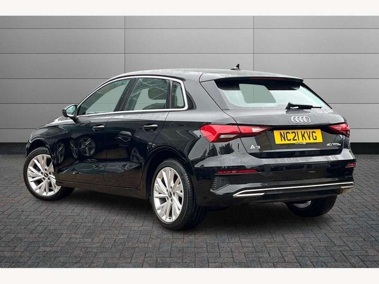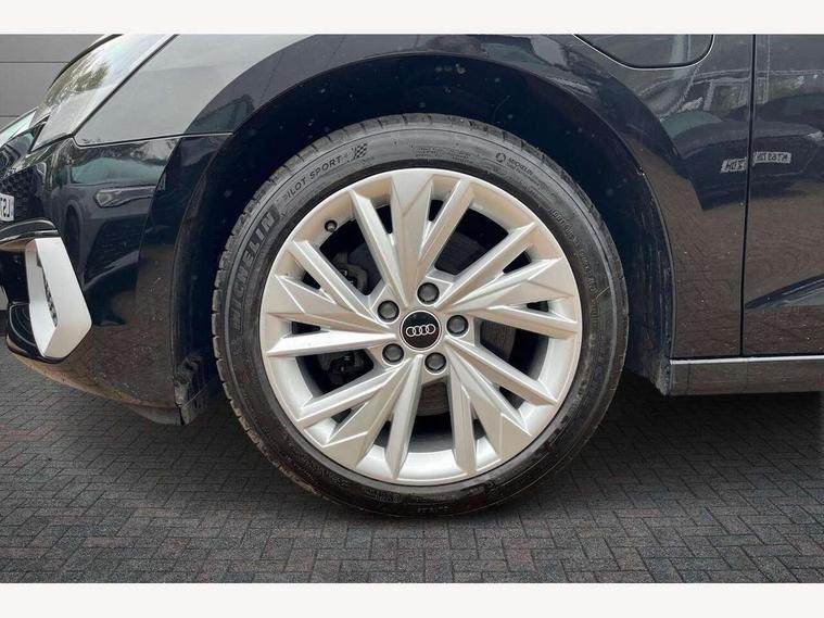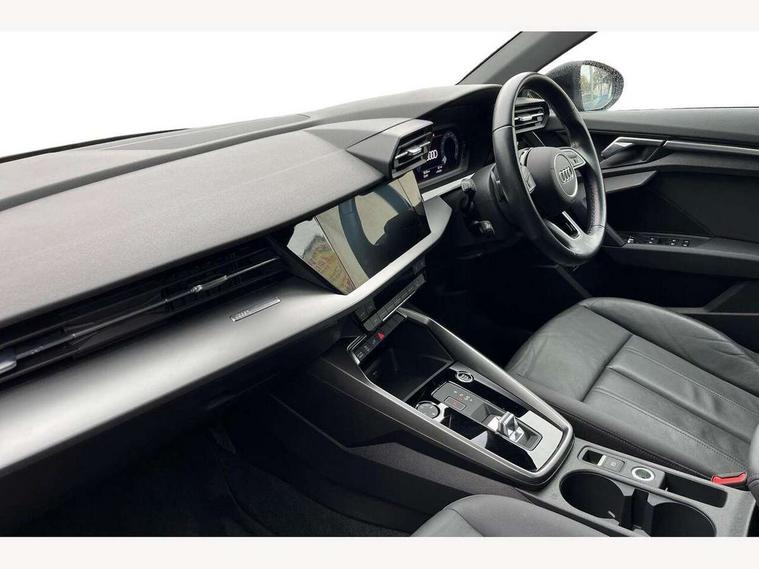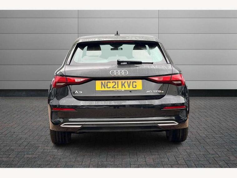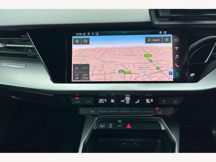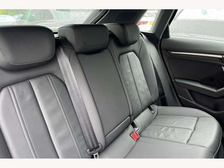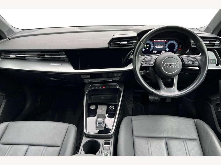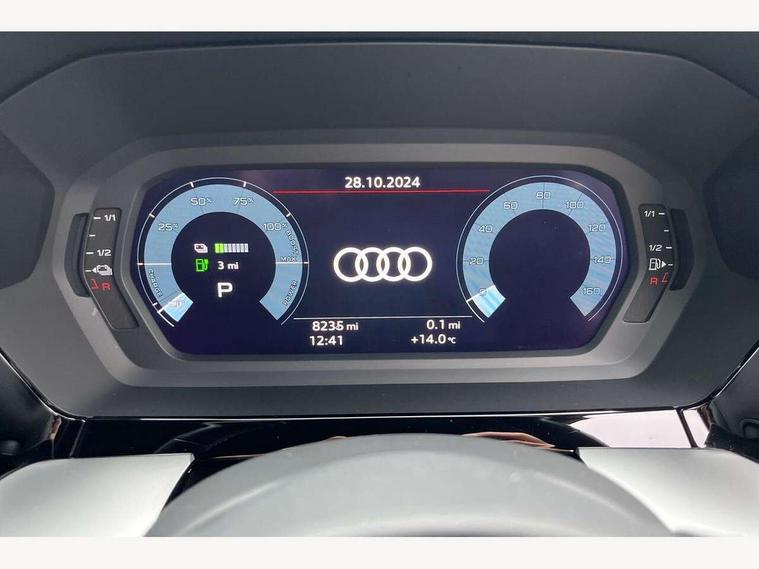 Audi connect emergency call and service, Audi drive select (Auto, Comfort, Dynamic, Efficiency and Individual), Audi smartphone interface, Audi Virtual Cockpit - 10.25" digital and colour instrument cluster, Automatic start/stop system with recuperation, Bluetooth interface, Collision avoidance assistant, Electromechanical power speed sensitive steering, Lane departure warning system, MMI Navigation Plus with high resolution 10.1" colour touch screen display, Service indicator, Trip computer, Voice control system with natural language interaction, 3 pin 10 amp domestic charging cable, Standard suspension, Type 2 mode 3 32 amp charging cable, Type 2 socket for AC charging, 2xUSB-C connection with data and charging functions, 6 passive loudspeakers, DAB Digital radio, Acoustic glass windscreen, Aluminium window trim, Auto dimming frameless rear view mirror, Body colour exterior mirrors, Body colour roof spoiler, Electrically adjustable/heated/folding/dimming door mirrors with kerb view includes integrated LED indications + kerb view function for passenger side, Front electric windows, LED daytime running lights, LED headlights and halogen rear lights, Light and rain sensors, Rear electric windows, Rear window, rear door windows and rear side windows in clear glass, Rear wiper, 12V socket and storage compartment in front centre console, 40/20/40 split folding rear seat bench with cupholder, Dual zone electronic climate control, Front and rear centre armrest, Front and rear headrests, Front door sill trims with aluminium inlay, Front/rear floor mats, Height and reach adjustable steering wheel, Interior lighting - Front and rear roof module including reading lights, glove compartment light and right hand side, Luggage compartment floor covering, Manual boot compartment lid, Manually adjustable front seats, Seat side bolsters, Steel grey cloth headlining, Tool kit, Twin leather upholstery, Aluminium interior elements pack - A3 Sportback, Sport styling pack - A3 Sportback, 3x3 point rear seat belts, Driver and front passenger airbag with passenger airbag deactivation, Electronic Stabilisation Control (ESC) including ABS, ASR and EDL, First aid kit with warning triangle and 2 safety vests, Front side airbags with head airbags and interaction airbag, Hill hold assist, Pre-sense front with pedestrian and cyclist detection, Seatbelt monitoring, Tyre pressure loss indicator, Anti theft alarm, Anti-theft wheel bolts, Electronically operated child lock, Immobiliser, Remote control central locking, Inlays with silk effect paint in platinum grey, Tyre repair kit,