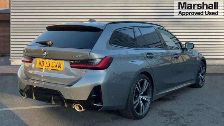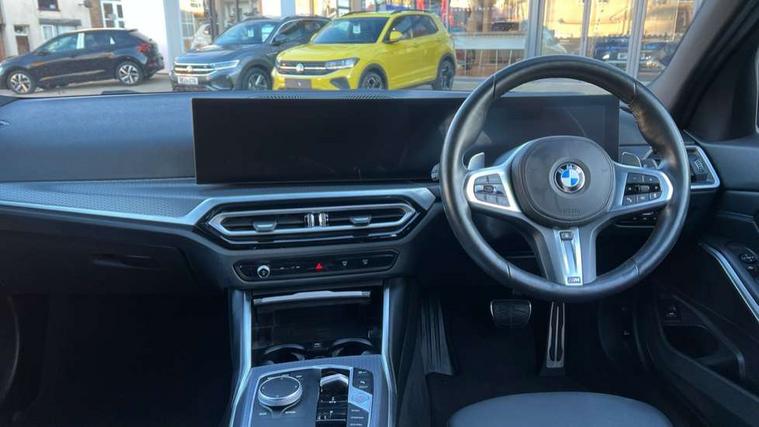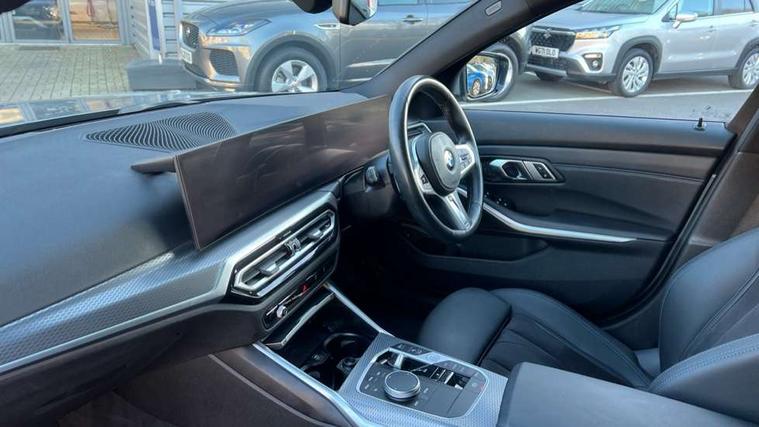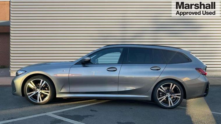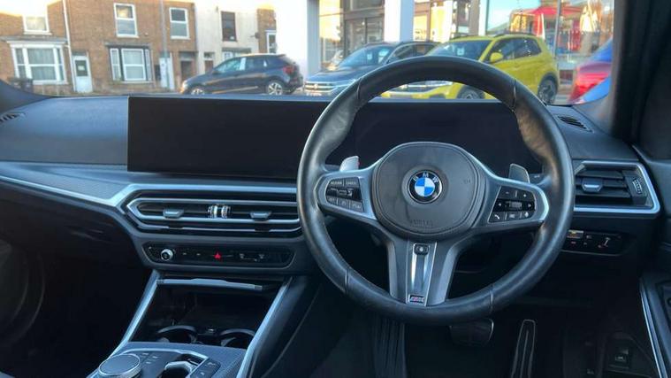 Active guard plus, Attentiveness assist, Automatic Start/stop button, BMW iDrive, BMW Teleservices, Condition based service, ConnectedDrive Services, Driving experience switch, Live cockpit plus with Navigation + 12.3" instrument display + 14.9" display, Intelligent voice assist, 2 USB, 4G LTE connect, Oil sensor for level and grade, Preparation for driver assistance, Shifting point display, Variable sport steering, Double joint spring strut front axle, Fuel tank breather system, M sport suspension, Sport automatic transmission with steering-wheel mounted gearshift paddles and launch control, DAB tuner, 3rd brake light, Acoustic glazing, Automatic headlight beam throw control with load dependent regulating reaction, dynamic compensation of braking dive and acceleration squat, BMW emblem, engine compartment lid and tailgate, Body colour roof fin, Door sill strips, Electric windows - front and rear, with open/close fingertip control, anti-trap facility and comfort closing, Follow me home headlight function, Front and rear bumper system with replaceable deformation elements, Front apron plastic in body colour, Fuel filler flap - right rear in body colour, Heated washer jets, High gloss shadow line exterior trim, High gloss shadow line roof rails, Illuminated bow type door handles in body colour drivers side with door lock, Interior rear view electrochromatic mirror with automatic anti dazzle function, LED headlights with LED daytime running lights and LED turn indicator, LED rear lights, Licence plate panel integrated into front bumper and tailgate, Matt black B-pillar finsher, Matt black window recess cover, Model designation on right side of tailgate, One piece front bumper cover including towing eye cover in body colour, Rain sensor with automatic headlight activation, Rear side wing doors, Rear wiper, Reversing lights, Side frame decorative moulding black matt, Visible exhaust tailpipe finisher, Welcome lights in interior and door handle area, 12V power socket in front storage compartment, 2 front cupholder in centre console with clamping elements and matt black inlay, 3 seat bench in 2nd row, 3 zone automatic air conditioning, 40:20:40 split folding rear seat with loading system, Ambient inside door handle light, Ambient light design projected onto the left and right entering and exiting area, Ambient lighting front and rear with 9 selectable colours, Ambient storage compartment lighting in the centre console, Anthracite headlining, Armrest integrated in front and rear door trim + front centre console armrest, BMW ID, Contour lighting in instrument panel and door trim panel, Cruise control operation in steering wheel, Driver backrest width adjustment, Folding rear centre armrest with 2 cupholders, Front and rear ambient footwell lighting, Front and rear door exit lighting (left / right), Front and rear headrests, Front and rear reading lights, Front and rear velour floor mats, Front sport seats, Heated front seats, Height adjustable mechanically and infinitely variable steering column, Illuminated armrest storage compartment, Illuminated glove compartment, Illuminated luggage compartment, Lashing eyelets in luggage compartment, M Sport multifunction leather steering wheel, Make-up mirror lights, Single front passenger seat, Standard seat for driver and passenger with manual adjustment, Sunvisors with vanity mirrors and ticket pocket, Toolkit located in luggage compartment, Connected pack professional - 3 Series Saloon/Touring, Interior and exterior mirror pack - 3 Series Touring/Saloon, M Aerodynamics package - 3 Series Saloon/Touring, M sport exterior styling pack - 3 Series Saloon/Touring, Storage compartment pack - 3 Series Saloon/Touring, 3x3 point rear seatbelts, BMW emergency call, Child locks on rear doors, Crash sensor activating of airbags, Unlocking doors, hazard warning lights, interior light, safety battery terminal, Driver and front passenger with seat occupancy detection for driver's and passenger side, Driver and passenger side airbags, body protection at side and airbags deploy from seat backrests, Dynamic brake control, Dynamic stability control + (DSC+) - Anti-lock Braking System (ABS) with brake assist and cornering brake control + Automatic Stability Control (ASC), Dynamic Traction Control - DTC, Electric parking brake including automatic hold function and automatic release of the parking brake when driving off, Electronic differential lock control (EDLC), Head airbags in 1st and 2nd row, head protection at side, curtain airbags open from headliner above 1st and 2nd row, Plastic fuel tank, Side impact protection, Tyre pressure monitoring with three level warning strategy, Ventilated front and rear disc brakes, Warning triangle and first aid kit, Alarm system, Centre lock switch, Closing system with central locking, Electronic vehicle immobiliser,