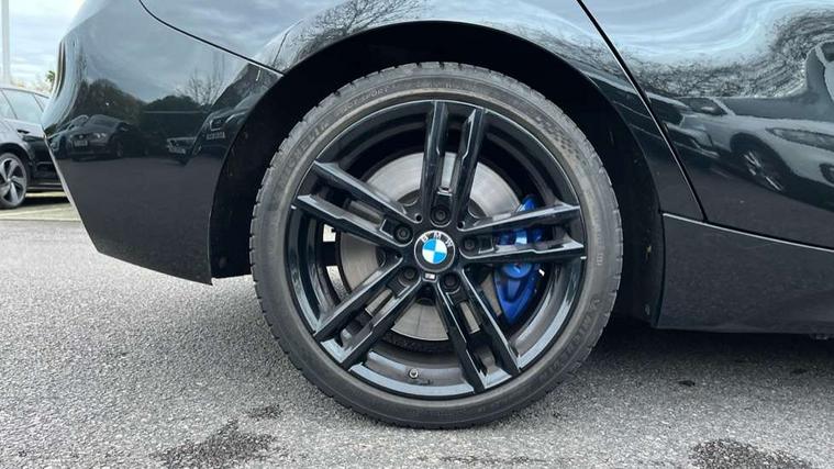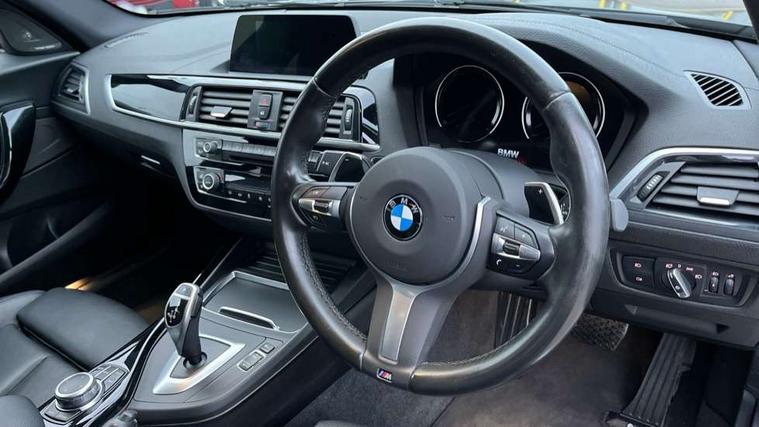 Automatic start/stop system, BMW Online services, BMW remote services, BMW Teleservices, Brake force display, Brake pad wear indicator in front and rear, Check Control warning system for monitoring of lights and door/luggage compartment open warning, Eco pro mode, Instrument cluster with speedometer with miles per hour read out, tachometer and fuel gauge, Lights on warning by audio warning signal when ignition is switched off, Oil temperature display via on board computer in instrument cluster, On board computer - average speed+fuel consumption, service interval, clock/date, odometer/trip meter, outside temperature display and ice warning, On board diagnostics, Optimum shift indicator, Personal Profile, Real time traffic information, Servotronic PAS, Speed limiter, Battery age recognition function, Drive Performance Control, Sport automatic transmission with Launch Control, Sports function on gearbox with steering wheel mounted gearshift paddles, BMW professional radio with CD player, DAB Digital radio, Harman/Kardon loudspeaker system, Body colour door handles, Body colour front and rear bumpers, Body colour mirror caps, Body colour roof mouldings, Clear lenses direction indicator lights, Dark chrome exhaust tailpipe, Darkened rear lights with LED light bars, Daytime driving lights, Direction indicator side lights in exterior mirrors, Dynamic brake lights, Electrically adjustable heated door mirrors and washer jets, Follow me home headlights, Front and rear bumper system with replaceable deformation elements, Front and rear electric windows with open and close fingertip control, anti trap facility and comfort closing, Green tinted heat protection glazing, Headlight beam throw control, Heated windscreen washer jets, High gloss black kidney grille with black slats, High level third brake light, Lightweight engineering, M aerodynamic bodystyling, Nearside reverse light in rear light cluster, Offside rear fog lights, Rain sensor including auto headlights activation, Rear window aerial, Rear window wiper, Shark fin antenna, Sun protection glass, Visible VIN plate, Welcome lighting, 12V power socket in centre console, 12V power socket in passenger footwell, 60/40 split folding rear seat, Ambient lighting - switchable BMW classic orange/ cold white LED, Anthracite headlining, Anthracite Velour front and rear floor mats, Conditioned based service, Door sill finishers with illuminated M designation, Four grab handles integrated in roof lining, Front and rear side armrest integrated into door trim, Front folding sliding armrest with storage compartment, Front head restraints, Front sports seats with electric side bolster adjustment, Front storage compartment in centre console and in door trim, Front/rear courtesy lights with soft on/off dimming, Glove box handle with chrome surround, Glovebox, Interior light in front centre interior mirrors and rear centre auto interior light activation when door is opened when ignition switched off, Isofix child seat for two outer rear seats, Leather gear knob and handbrake grip, Luggage compartment access via BMW roundel, Luggage compartment lighting, M sports multi function leather steering wheel, Manually adjustable steering column, Multi-function controls for steering wheel, Rear folding head restraints, Sunvisors with vanity mirrors and ticket pocket, Two cupholders with sliding cover and inlay mat, Two sills lashing eyes in the luggage compartment, 3 point seatbelts on all seats, front pyrotechnic belt tensioners, stopper and belt force limiters, rear coded belt buckles, Active differential brake (ADB), electronic differential lock in DSC-OFF mode, Airbags - Front driver and passenger, front and rear head, front side, curtain head protection, Anti lock braking system (ABS) with brake assist, Automatic Stability Control (ASC), Battery safety cut-off, BMW emergency call, Brake drying, Brake energy regeneration, Braking readiness, CBC - (Cornering brake control), Crash sensor activating central locking release, hazard warning lights, Driver and front passenger seat belt security check, DSC+, Dynamic brake control, Dynamic Traction Control - DTC, Front passenger manual airbag deactivation, Front ventilated brake disc, Hill start assist, M Sport braking system, Rear brake discs, Rear child proof door locks, Side impact protection, Twin horns, Tyre pressure monitoring system, Warning triangle and first aid kit, Automatic drive away locking facility, Central locking switch for all doors, fuel filler cap and luggage compartment, Locking wheel bolts, Remote central locking with two Integrate key, one button for opening and closing all lock, open and close window, button for open luggage compartment, Remote control integrated key with blue inset, Start/stop button with comfort go keyless engine start and auto start stop deactivation button, Thatcham Cat.1 alarm and immobiliser, Reduced rolling resistance tyres, Run flat tyres,