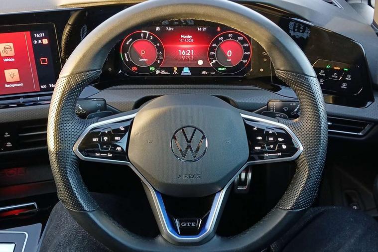 Adaptive cruise control (ACC) with speed limiter and front assist (reacting to vehicles pedestrians and cyclists), Car2X communication, Digital cockpit pro - 10.25" high resolution TFT dash display screen with customizable menus and information, Driver alert system, Dynamic road sign display, eCall - Emergency call service for SOS calls to emergency response, Electronic engine sound, Lane assist, Lane change assistant, Mobile phone interface with wireless inductive charging function, Multifunction camera for distance control, PAS, Speedo, rev counter, electronic odometer, trip, service interval display, exterior temperature and fuel gauge, Start/Stop function, Travel assist with emergency side assist with electrically foldable door mirrors, USB-C ports in the front and rear centre console with increased charging performance, Warning buzzer and light for front seatbelts unfastened, Wireless app connect, 6 metre charging cables of Type 2 mode 2/G (10A) charging cable, Petrol Particulate Filter, Type 2 mode 3 (16A) AC Cable for wallbox/chargepoints, XDS electronic differential lock for improved traction and handling, Premium USB cable in choice of either Apple or Android smartphone compatibility, Ambient lighting, exterior illuminated styling elements at the sides, Auto dimming rear view mirror, Automatic headlamp activation with Coming home and Leaving home feature, Automatic headlights, Body colour bumpers, Body colour door handles, Body colour door mirrors with integrated indicators, Body colour rear roof spoiler, Front and rear electric windows, GTE style bumpers, Heat insulating glass windscreen, Heated rear windscreen, High level 3rd brake light, Highway light, Illuminated front grille, IQ.Light - LED Matrix headlights, dynamic headlight control with advanced high beam control matrix dipped main beam + LED DRL + 22 LED lights, LED front fog lights with 5 honeycomb design, LED License plate illumination, LED rear combination lamp inlcuding dynamic turn signal, Rain sensor, Rear fog light on one side and reversing lights on both sides, Rear side wing doors, Rear tinted glass 65% light absorbing from B pillar backwards, Rear windscreen washer and wiper with interval delay, Remote electrically heated, adjustable and foldable door mirrors, including door mirror puddle lights and reverse activated kerb-view adjustment on pa, Welcome light, 12V socket in front centre console, 12V socket in luggage compartment, 3 rear head restraints, 3 seat bench in 2nd row, 3 zone climate with controls in the rear, Aluminium gear knob, Ambient lighting - Customisable 30 colour ambient lighting, Brushed stainless steel pedals, Chrome plated surround to electric mirror button, window switch and air vent surrounds, Drivers and front passengers sun visors with vanity mirrors, Front + rear carpet mats, Front centre armrest with storage compartment, Front cupholders x 2, Front passenger seat, Front reading lights x 2 incorporating LED technology, Front seat lumbar support adjuster, Front sports seats, Glovebox, Height adjustable front seats, Height and reach adjustable steering wheel, Isofix child seat preparation for 2 rear child seats and front passenger seat, Leather wrapped multifunction sports heated steering wheel with paddle shift, Leatherette door armrests and centre armrest, Luggage compartment lighting, Removable luggage compartment cover, Soul black instrument panel, Soul black roof lining, Split folding backrest with centre armrest and unsplit rear seat bench, Woven fabric storage compartments in front and rear doors, 3 point height adj front seatbelts + pretensioners, 3 rear three point seatbelts, ABS, Child locks on rear doors, Driver and front passenger airbag with front passenger airbag deactivation, Drivers and front passengers safety optimised head restraints, Electronic parking brake with auto hold, ESC (Electronic Stability Control), Extended pedestrian protection measures, Front and rear passengers curtain airbag system including front side airbags, Front centre airbag, Front disc brakes, Front side airbags with curtain airbags, Rear disc brakes, Two tone horn, Tyre pressure monitoring system, Alarm with interior protection and deactivation via infotainment system, Electronic engine immobiliser, Keyless entry with start/stop button on centre console, Black metal chrome decorative inserts in dash and front door trim panels, High gloss black centre console, Tyre mobility kit Includes 12V compressor and tyre sealant,