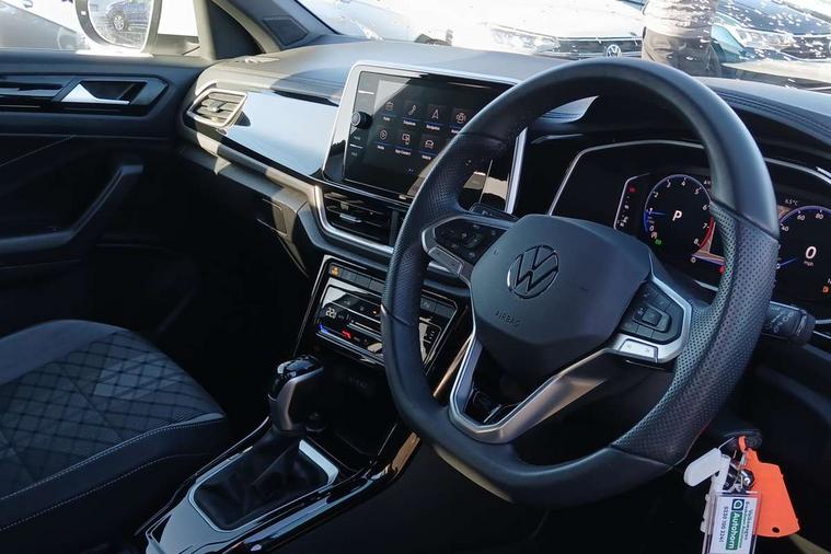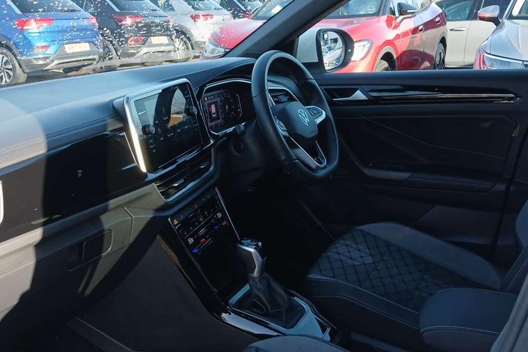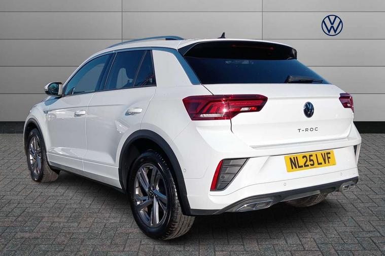 10.25" Digital cockpit pro, Advanced driver attention and drowsiness monitor, Emergency call service, Lane keeping system Lane Assist, Mobile phone interface, Modified key software - reduce switch off time for key status change to Long no motion, Online services, Park assist including front and rear parking sensors, Service interval indicator, Tailgate/trunk lid release from outside, Think blue trainer driver tips and journey analysis, Warning sound and light for front seatbelts unfastened, Wireless app connect, Battery regeneration during braking, Start/stop function with battery regeneration, DAB Digital radio, Diversity antenna for FM reception, Front and rear 6 speakers, Music playback - MP3, WMA and AAC files, Premium USB cable in choice of either Apple or Android smartphone compatibility, SD card slot, Simultaneous pairing of 2 compatible mobile devices, Title and cover art display, We Connect and We Connect Plus functionality, Auto dimming interior rear view mirror, Automatic hazard lights activation under emergency braking, Automatic headlight control with LED separate daytime running lights with coming/leaving home function, Body coloured exterior mirror housings and door handles, Electrically adjustable and heated door mirrors, Extended roof spoiler, Exterior mirrors aspherical on driver side, convex on front passenger side, External USB type C socket and charging sockets, Front windscreen wiper with intermittent wipe and 4 position delay, Heated rear window, LED 3rd brake light, LED rear combination lamps, LED rear number plate lights, Power windows with comfort operation and circuit breaker, Privacy glass for rear side windows and rear window, R-Line design body coloured bumpers, Rain sensor, Rear exhaust tailpipe, Rear fog light on one side and reversing lights on both sides, Rear side wing doors, Rear wash/wipe with intermittent wipe setting, Remote electrically foldable door mirrors, puddle lights and reverse activated passenger's door mirror, 12V power socket in centre console, 3 rear head restraints, 3 seat bench in 2nd row, 4 load lashing points in luggage compartment, Air care climatronic air conditoning system with active combination filter and 2-zone temperature control, Black roof lining, Chrome plated decorative trims, Chrome plated radiator grille inserts, air vent surrounds and light switch surrounds, Door and side trim panel with leatherette insert, Front + rear carpet mats, Front centre armrest, Front cupholders x 2, Front footwell illumination, Front reading light, Front scuff plates with R Line logo, Front seat back storage pockets, Glove compartment door with light, Instrument lighting, white adjustable panel illumination, Interior ambient lighting and surround lighting, Interior light delay, Isofix child seat preparation, Leather gearshift handle, Load-through provision with cup holder when folded down ('Unsplit rear seat bench, split folding backrest, with centre armrest), Luggage compartment lighting, Single front passenger seat, Stainless steel pedals, Storage compartment in left and right luggage area, Storage compartment in rear doors, Storage compartments in driver and front passenger doors, Sunvisors with illuminated vanity mirrors, Variable boot floor, height adjustable and removable, Driver assistance pack without proactive passenger protection - T-Roc, 3 point height adj front seatbelts + pretensioners, 3 point seatbelts in outer rear with ECE label, ABS, Child locks on rear doors, City emergency braking and pedestrian monitoring, Driver and front passenger airbag with front passenger airbag deactivation, Driver and front passenger safety-optimised head restraints, Drivers seatbelt reminder, Electronic parking brake, Electronic Stability Control (ESC) inc EDL (Electronic Differential Lock) and ASR (Traction Control), Front and rear passengers curtain airbag system including front side airbags, Hill start assist, Predictive pedestrian protection, Rear disc brakes, Two tone horn, Tyre pressure loss indicator, Volkswagen roadside assistance, Piano black decorative inserts in dashboard and front door trim panels, Trims for alloy wheels,