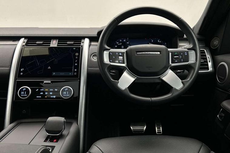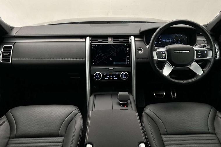 11.4" touchscreen, 3D surround camera, Adaptive cruise control, Android Auto, Apple car play, Blind spot assist, Driver condition monitor, Electric power assisted steering (EPAS), Emergency services call system, Front and rear parking aid, Interactive driver display, Lane keep assist, Power inner tailgate, Power tailgate/boot lid, Push button start, Rear collision monitor, Rear traffic monitor, Remote, Remote boot release, Service interval indicator, Speed proportional steering, Sportshift selector, Stop/start system, Traffic sign recognition with adaptive speed limiter, Trip computer, Wade Sensing, Adaptive dynamics, Dynamic stability control, Electronic air suspension, Front axle open differential, Digital Audio Broadcast radio-DAB, Dynamic volume control, Pivi pro connected, USB/aux input socket, Acoustic laminated windscreen, Animated directional indicators, Auto dimming interior rear view mirror, Auto high beam assist, Automatic headlight levelling, Automatic headlights, Body colour bumpers, Body colour door handles, Centre high mounted stop light, D300 badge, Electric heated/power fold memory door mirrors with approach lights and auto dimming driver side, Electric windows with one touch open/close and anti-trap, Heated rear window, Heated windscreen, LED darkend tail lights, LED headlights with signature DRL, Narvik black Discovery script, Privacy glass, Puddle lights, Rain sensing windscreen wipers, Rear fog lights, Rear side wing doors, Rear wash/wipe, Trailer stability assist, Variable intermittent wiper, 12V power sockets, 12V USB charging socket in loadspace, 18 way heated electric memory driver seats with captains armrest + manual height adjust headrest + 4way power lumbar support, 2 seat bench in 3rd row, 3 seat bench in 2nd row, Central hinged twin lidded storage, Ebony morzine headlining, Electric adjustable steering column, First and second row door bins, Footwell lights, Front and rear 12V with front USB, Front passenger seat isofix location point, In-facia storage, Isofix child seat preparation for front passenger seat, Loadspace cover, Loadspace Hook, Loadspace light, Lockable glovebox, Lower centre console storage, Luggage tie downs in loadspace, Multi function steering wheel, Overhead lighting console, Premium carpet mats, Premium non-leather steering wheel, Rear ISOFIX, Shopping bag hook, Single front passenger seat, Storage glovebox, Sunvisors with illuminated vanity mirrors, Third row storage, Treadplates with metal inserts, Twin front cupholders with cover, USB with 12V socket in centre console, Black exterior pack - Discovery Dynamic SE/HSE, Online pack with data plan - Discovery, 3x3 point rear seatbelts, Anti-lock braking system (ABS), Brake pre-fill technology, Cornering brake control, Curtain airbags, Customer configurable autolock, Driver and passenger airbags, EBD - Electronic brakeforce distribution, Electronic traction control, Emergency brake assist, Emergency braking, ESP, Front side airbags, Gradient acceleration control, Hill descent control, Hill launch assist, Power operated child locks, Rear airbags, Roll stability control, Seat belt reminder, Torque vectoring brake, Tyre pressure monitoring system, Immobiliser, Intrusion sensor, Keyless entry, Locking wheel nuts, Remote central locking, All terrain tyres,