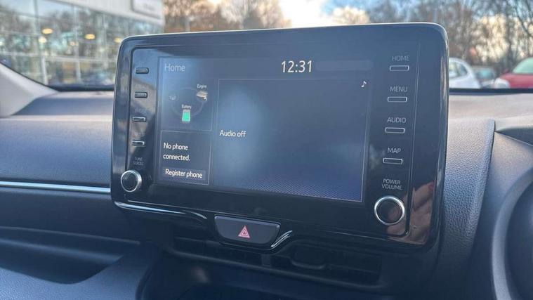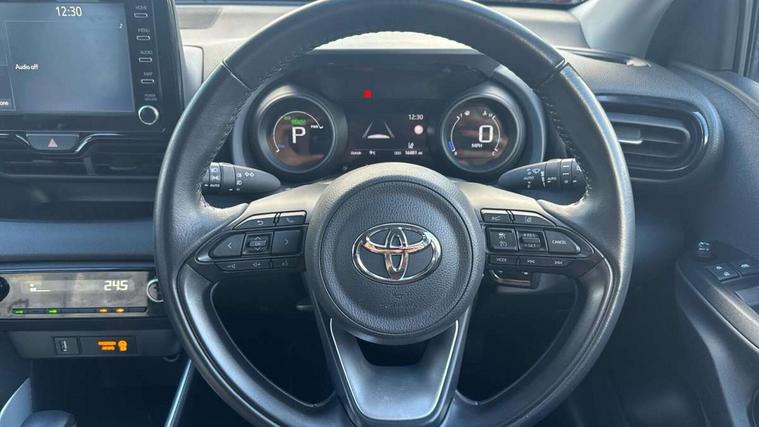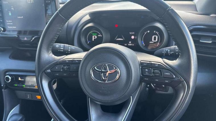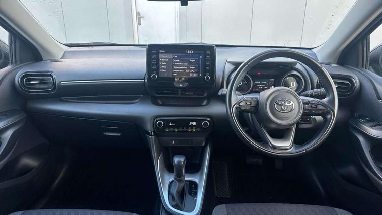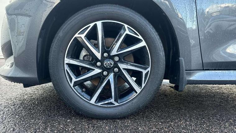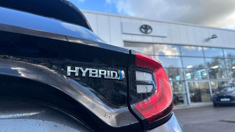 Adaptive cruise control, Adjustable speed limit with speed warning, Bluetooth connectivity, Colour binocular inspired displays with digital speedometer, E-call, Electric power steering, Hybrid energy display, Multi information display switches on steering wheel, Reversing camera, Smartphone integration with Apple CarPlay and Android auto, Tailgate, Voice recognition, Vehicle Stability Control (VSC), 4 speakers, 8" Multimedia display touch screen, USB connection, Acoustic windscreen glass, Auto windscreen wipers, Automatic headlights, Body coloured door mirrors, Electric adjustable heated door mirrors, Follow me home headlights, Front auto power windows with anti jam protection, Full LED rear lights, LED daytime running lights, LED front fog lights, LED front light guide, LED Headlights, LED High mounted stop lamp, LED Indicators, LED rear light guide, Manual headlight levelling, Painted chequered front grille, Rain sensor, Rear auto power windows with anti jam protection, Rear privacy glass, Rear side wing doors, Rear spoiler, Rear wiper, Shark fin antenna, Turning signal integrated indicators in door mirrors, Variable front intermittent wipers, 3 adjustable rear headrests, 3 spoke leather steering wheel, 60/40 split folding rear seat, Active headrests, Adjustable boot height, Auto air conditioning, Coat hooks in rear grab handles, Cup holders (2 front & door), Data Communication Module (DCM) connected services, Fabric upholstery, Front armrest, Glovebox, Grey roof lining, Height adjustable driver's seat, Isofix seat fixing, Leather gearshift, Pollen filter, Shopping bag hooks, Single front passenger seat, Tilt/telescopic steering column, 3 point seatbelts on all rear seats, ABS+EBD+Brake assist, Electronic parking brake, Emergency brake light system (EBS), Front passenger airbag on/off switch, Front seatbelt reminder, Hill start assist control (HAC), Rear child proof door locks, Rear seat belt reminder, Supplemental Restraint System (SRS) 8 airbags: Driver & passenger's airbags, dual side curtain airbags, side impact airbags, front centre airbag, Toyota Safety Sense 2, Precollison + Night time Pedestrian & Cyclist Detection, Lane Trace Assist, Auto High Beam, Intelligent ACC & Road Sign Assist, Tyre pressure warning system, 2x Master key, Alarm/immobiliser, Remote powered central double locking doors, Soft touch instrument panel, Space saver spare wheel,